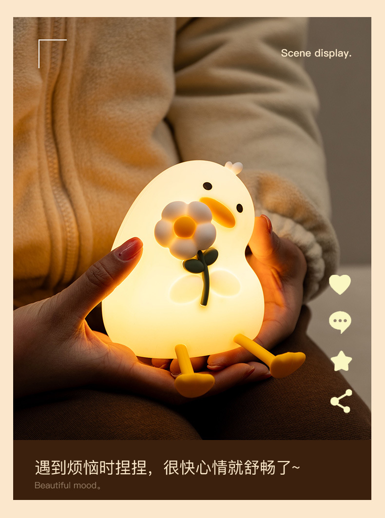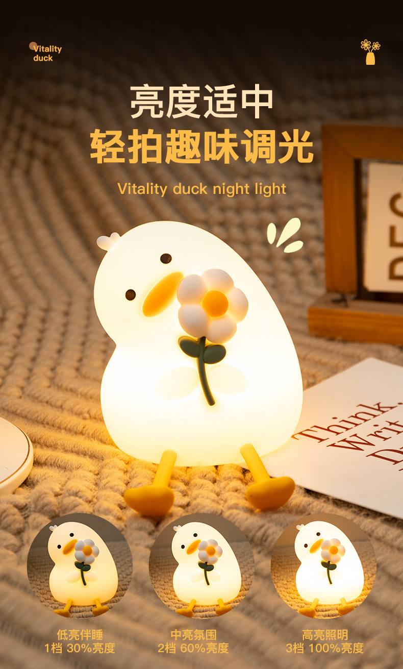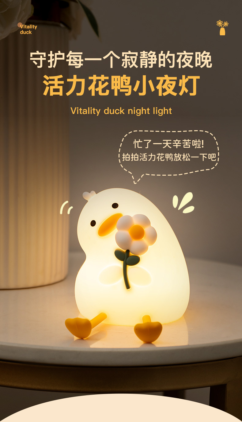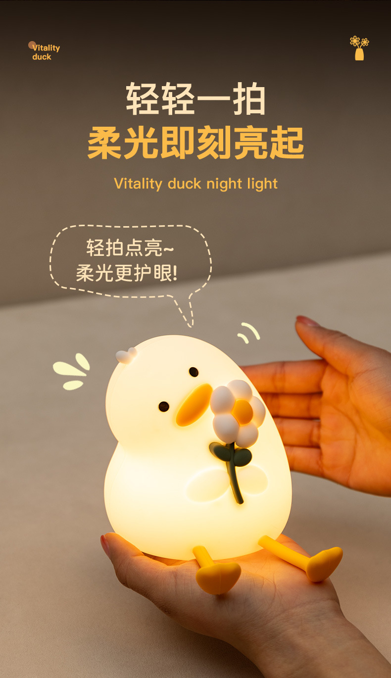花鸭小夜灯、硅胶小夜灯、拍拍灯