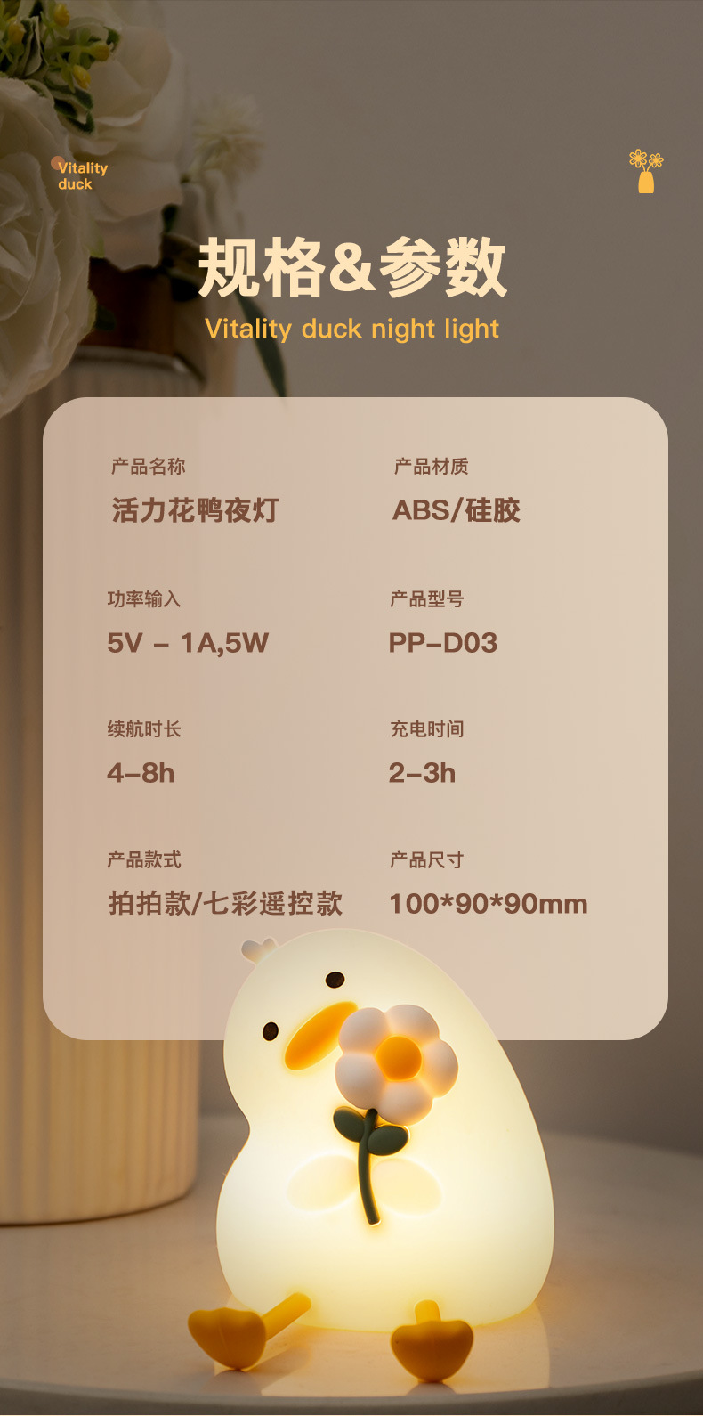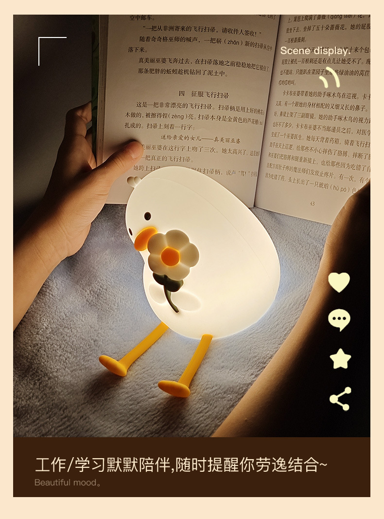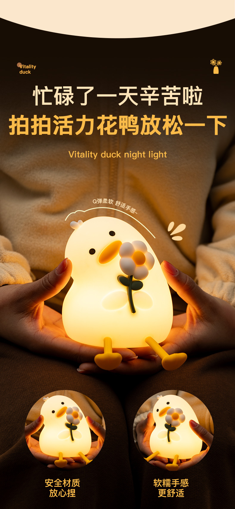 花鸭小夜灯、硅胶小夜灯、拍拍灯