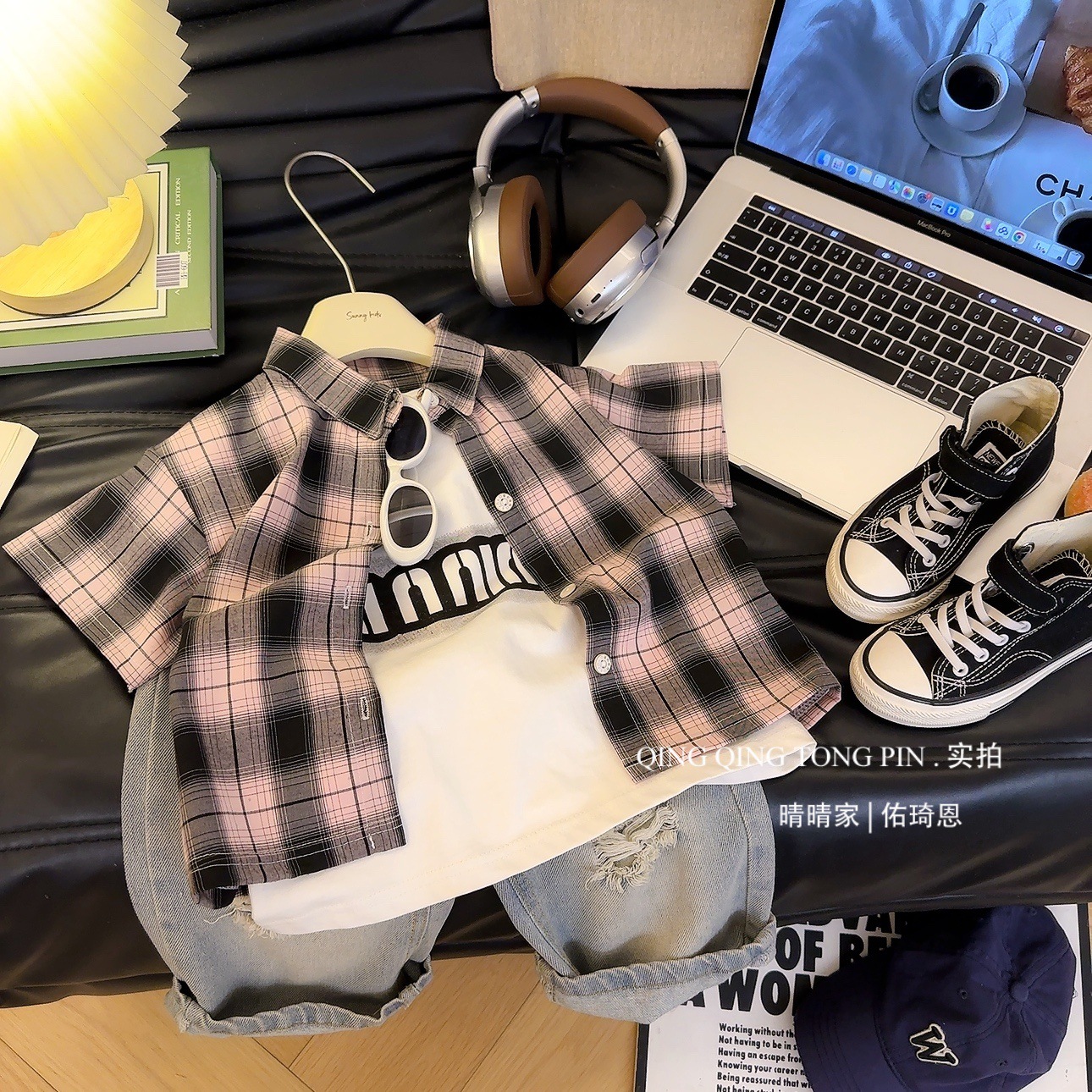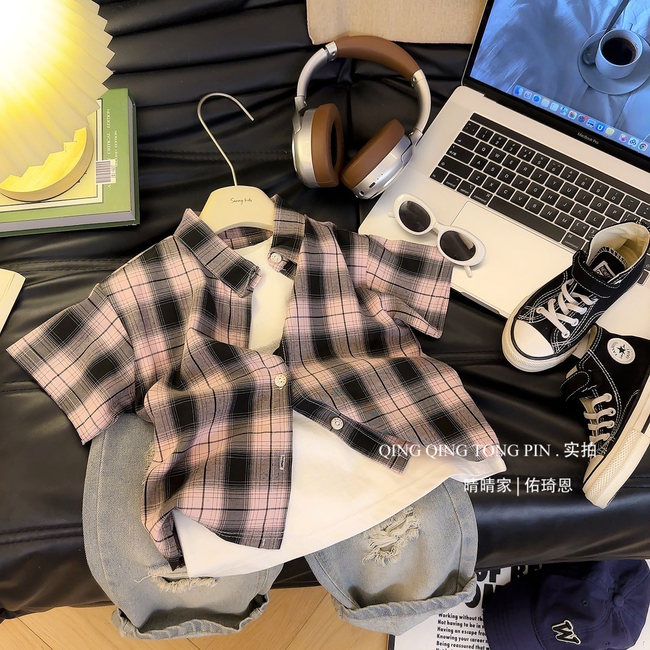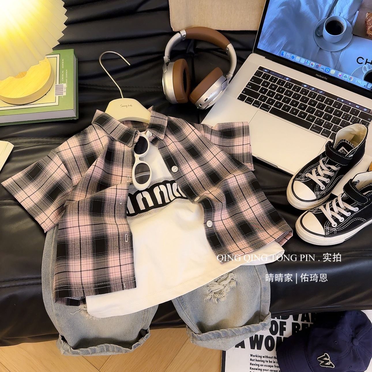 어린이 여름 새로운 반팔 소년과 소녀 아기 격자 무늬 셔츠 캐주얼 탑 한국 스타일 셔츠 아동 의류 탑 유행스토어 가기