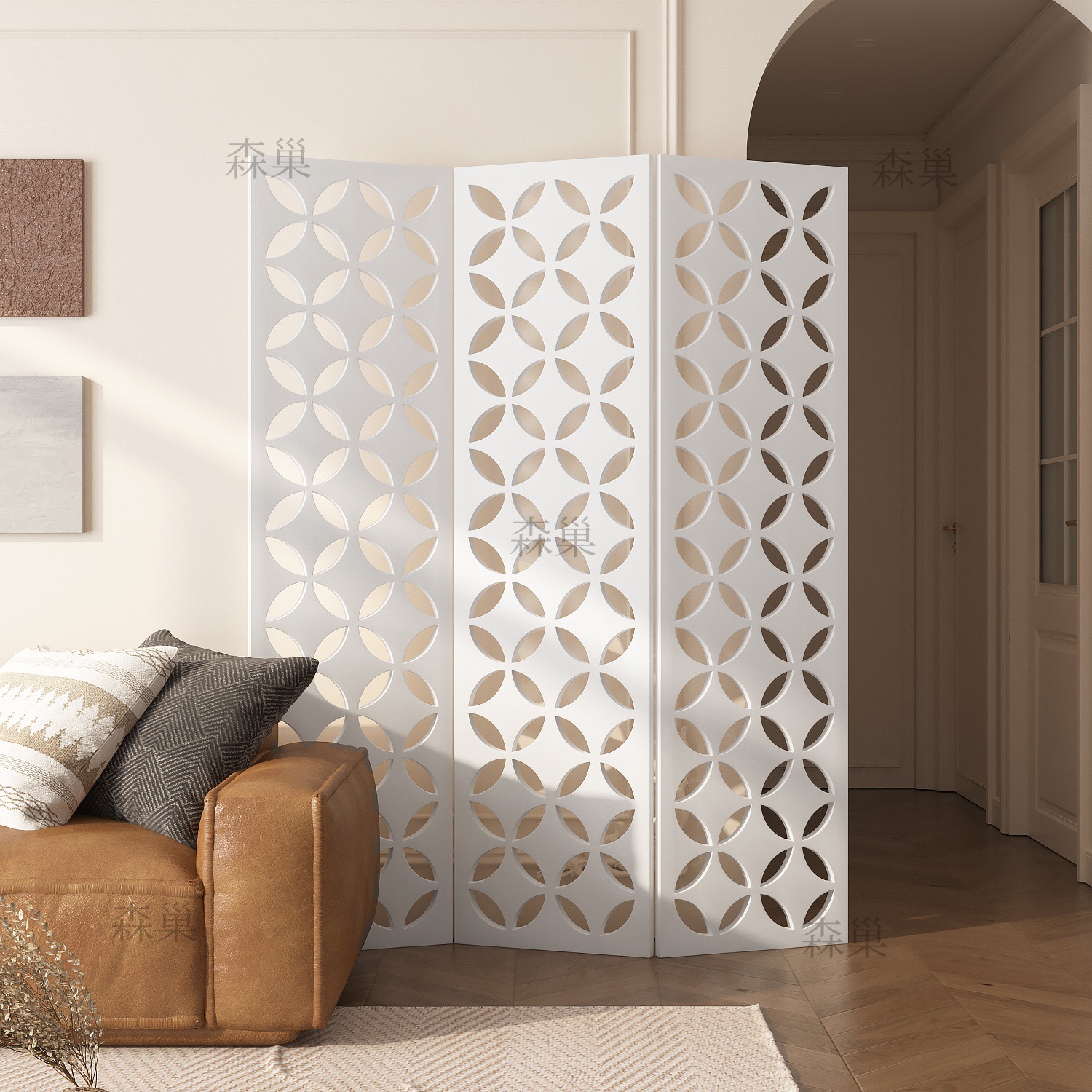 프랑스 레트로 스크린 파티션 거실 접이식 모바일 간단한 현대 입구 음영 중간 아트 솔리드 우드 레스토랑
