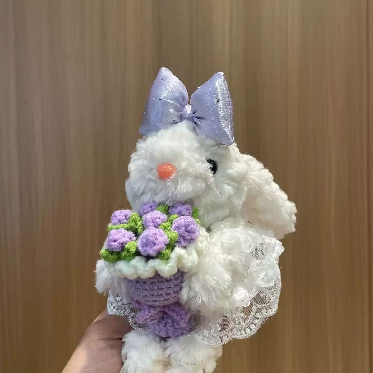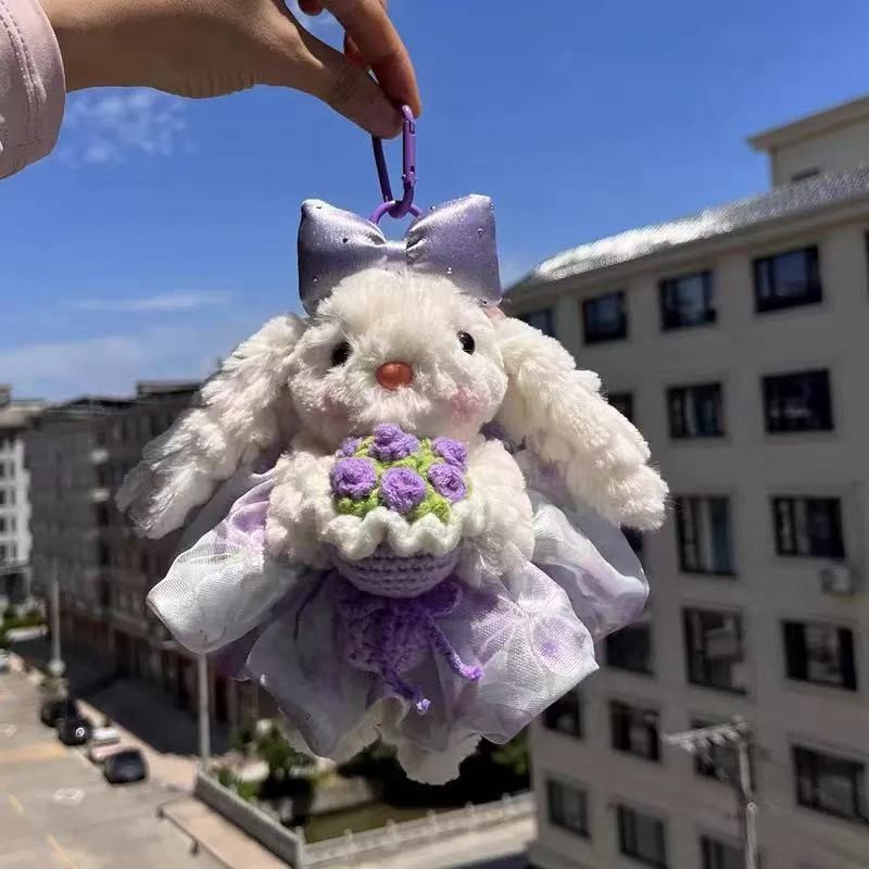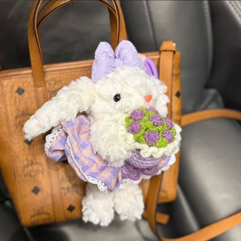• 봉제 귀가 늘어진 토끼—보라색 꽃다발 + 보라색 팔찌 열쇠고리