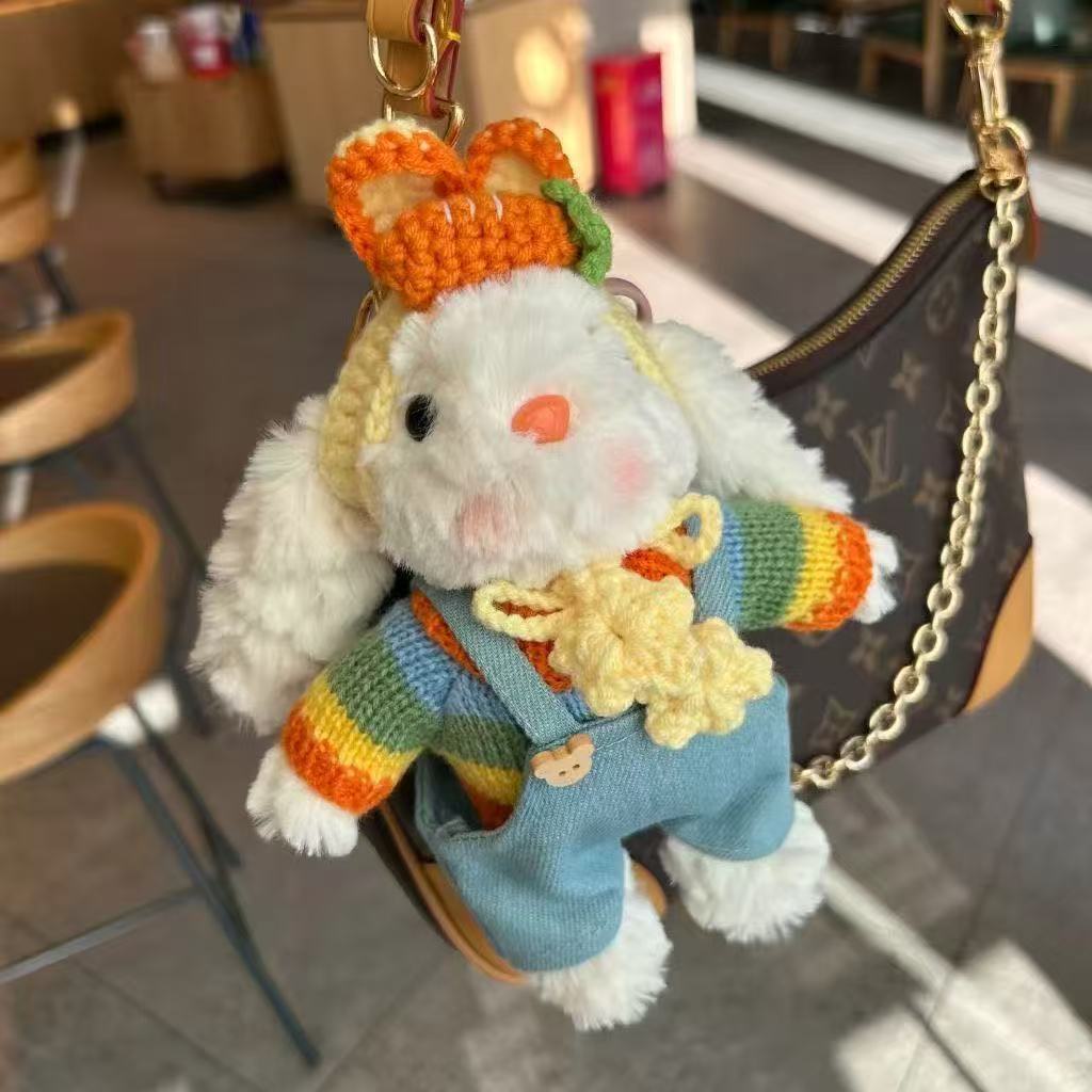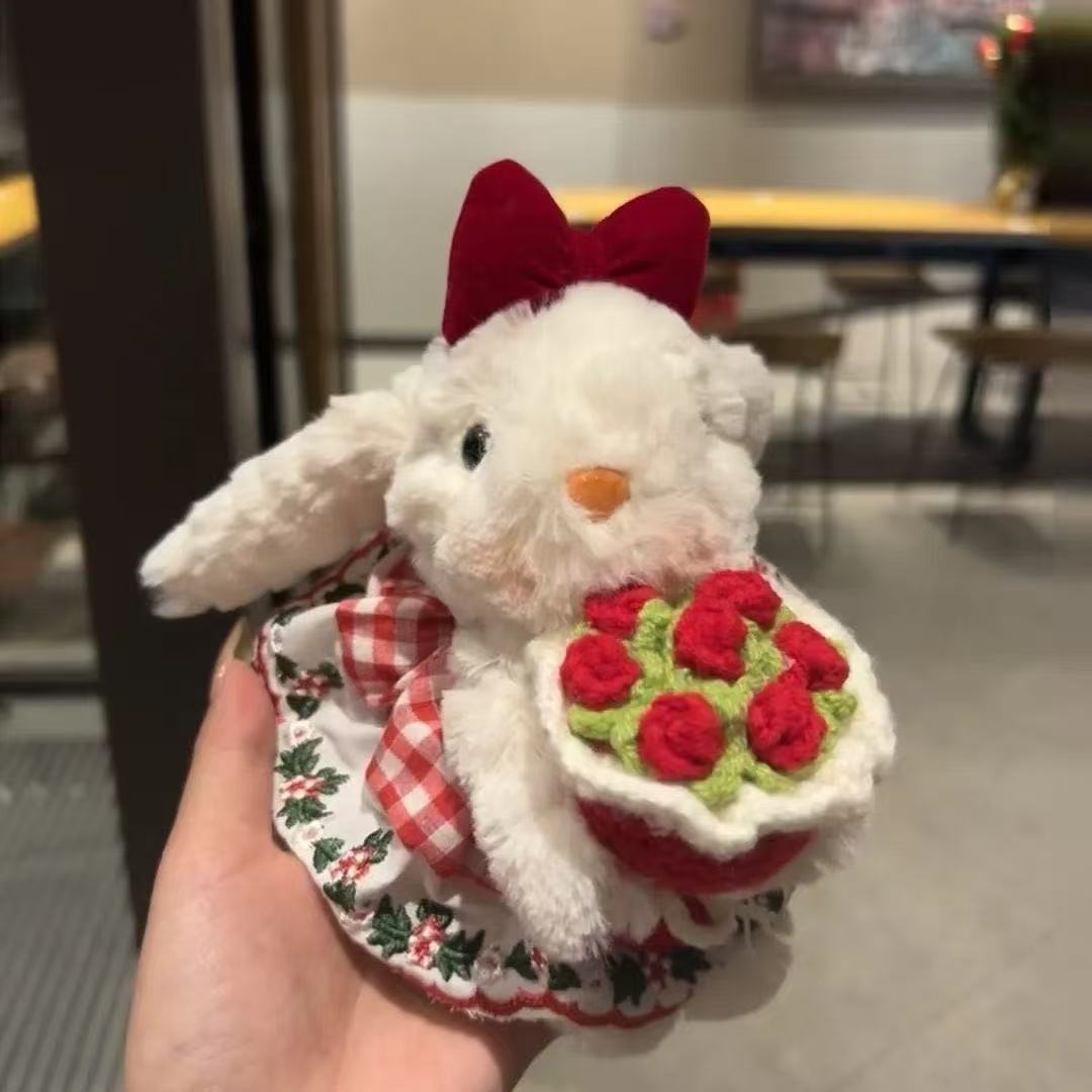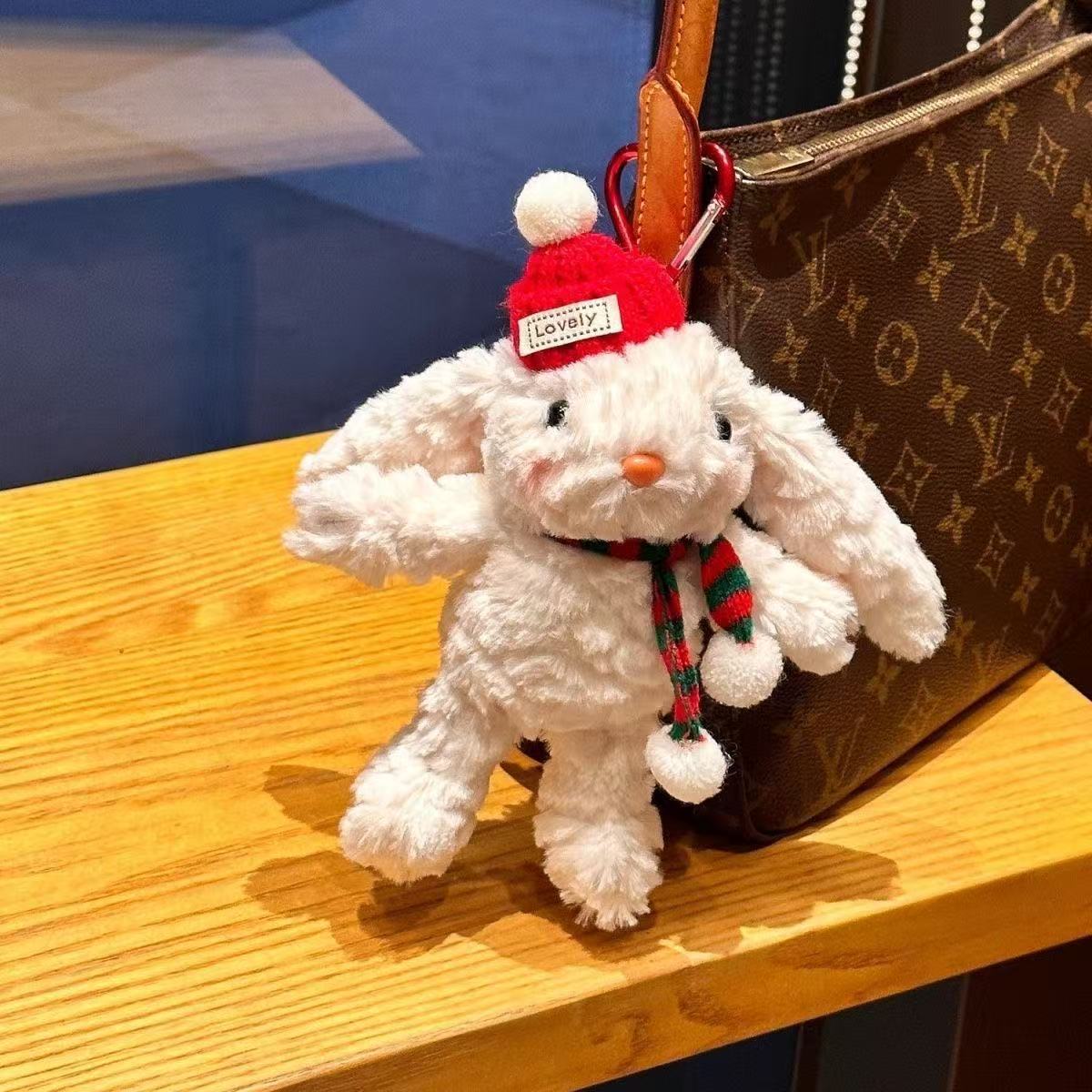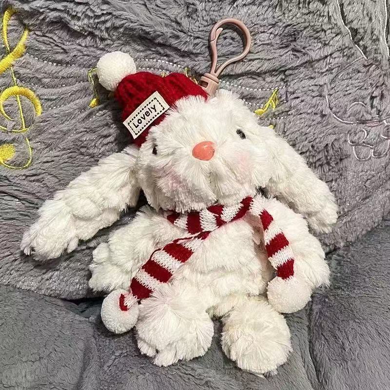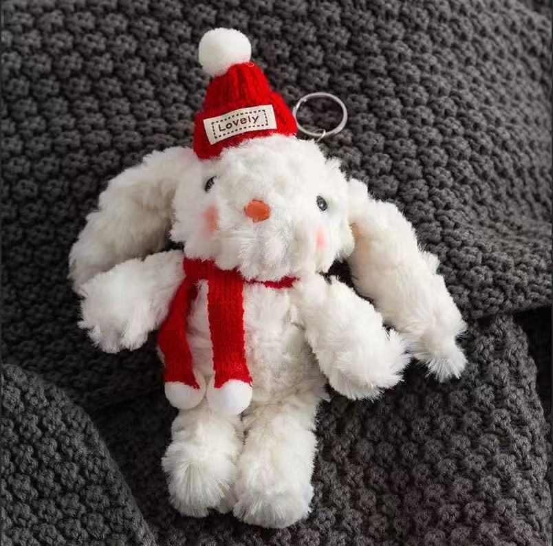 귀여운 귀 토끼 봉제 맛있는 토끼 장난감 크리스마스 인형 키 체인 가방 교수형 선물