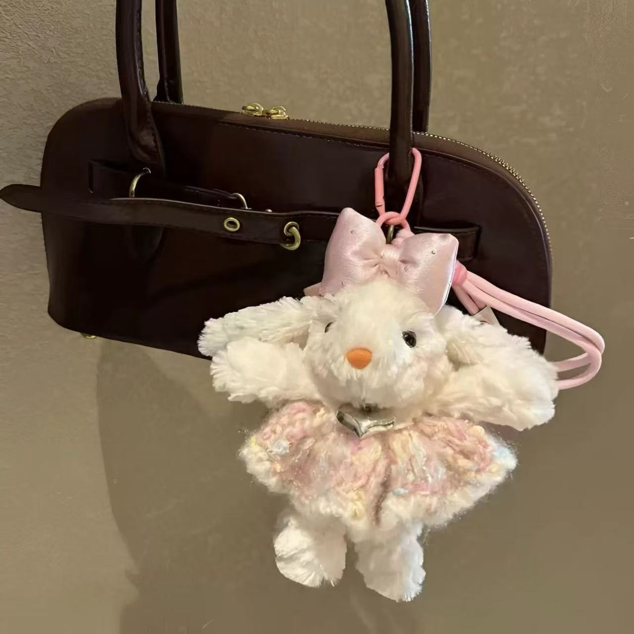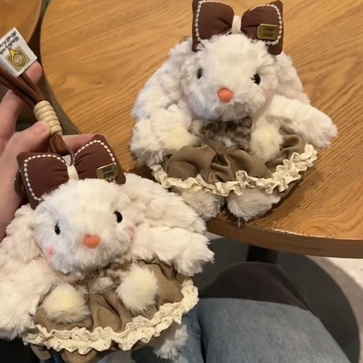 • 봉제 귀가 늘어진 토끼 - 레이스 스커트 + 커피색 팔찌 열쇠고리