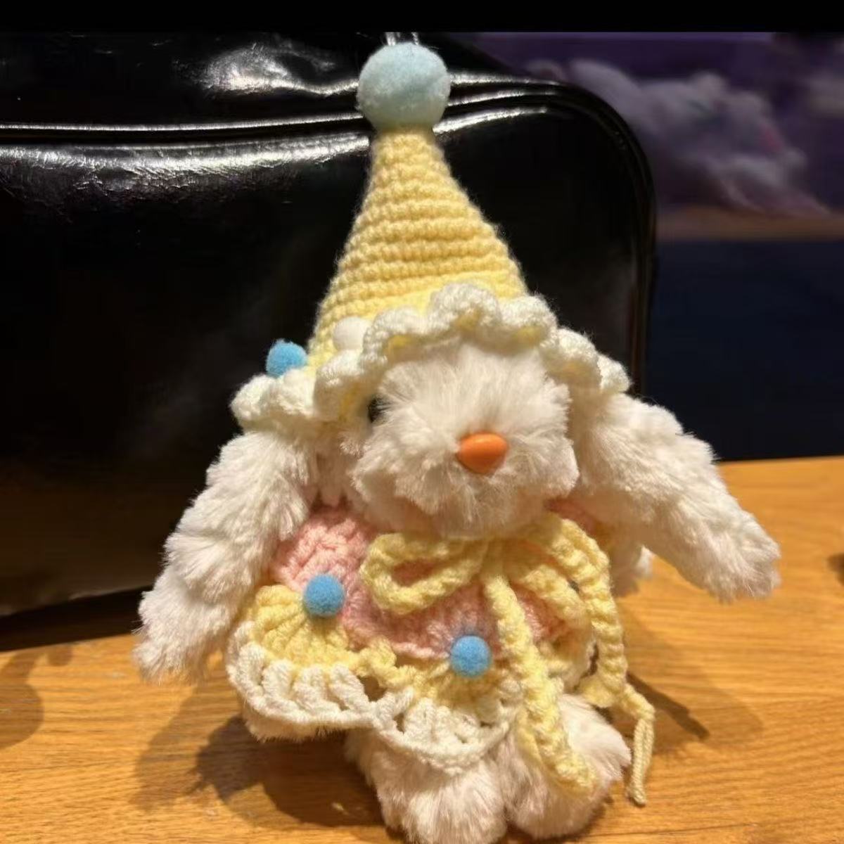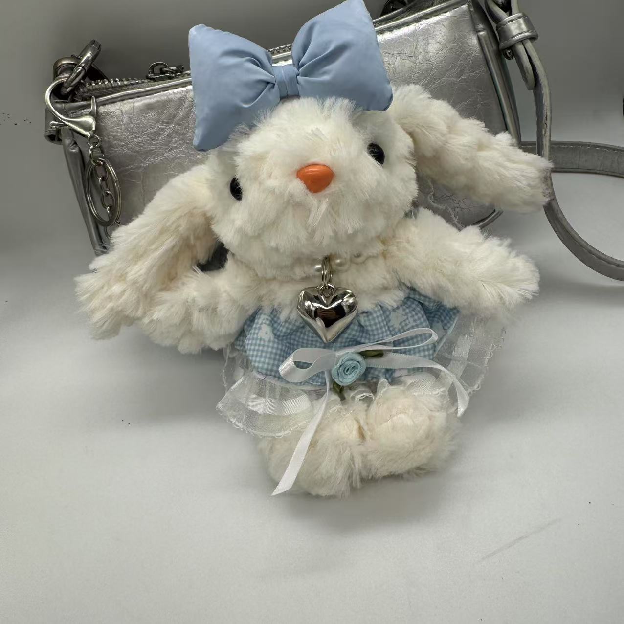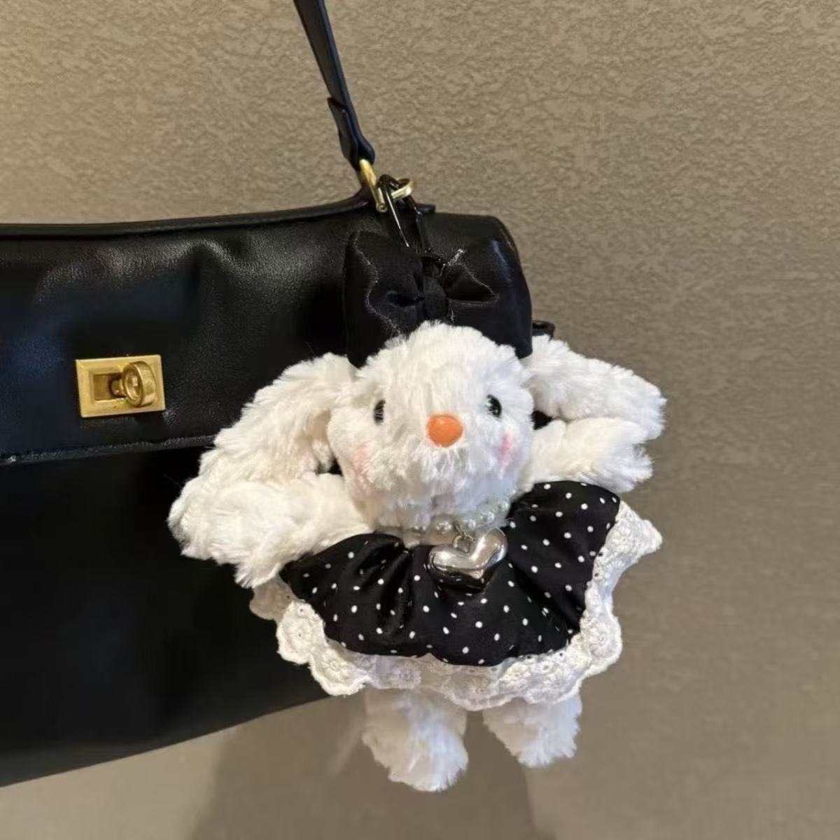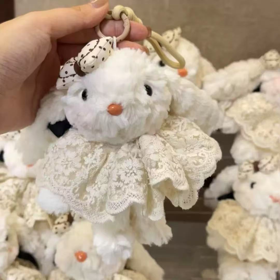 • 봉제 귀가 늘어진 토끼 - 레이스 턱받이 스커트 + 열쇠고리