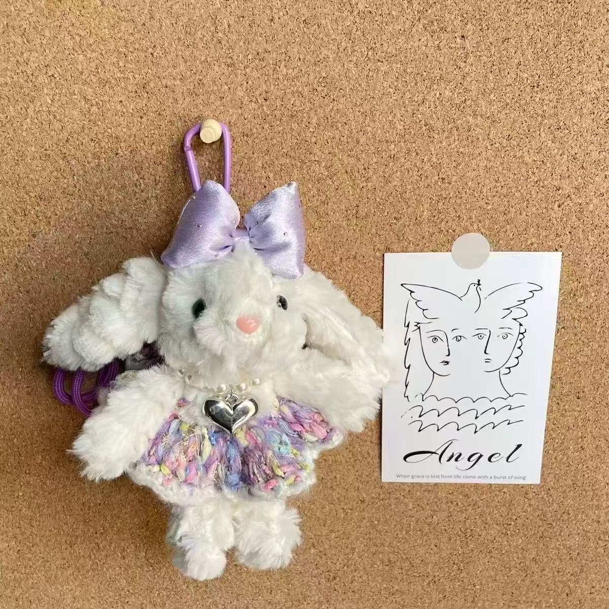 • 봉제 귀가 늘어진 토끼—보라색 케이크 스커트 + 보라색 팔찌 열쇠고리