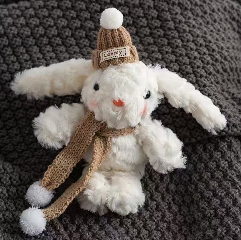 • 봉제 귀가 늘어진 토끼 - 갈색 스카프 모자