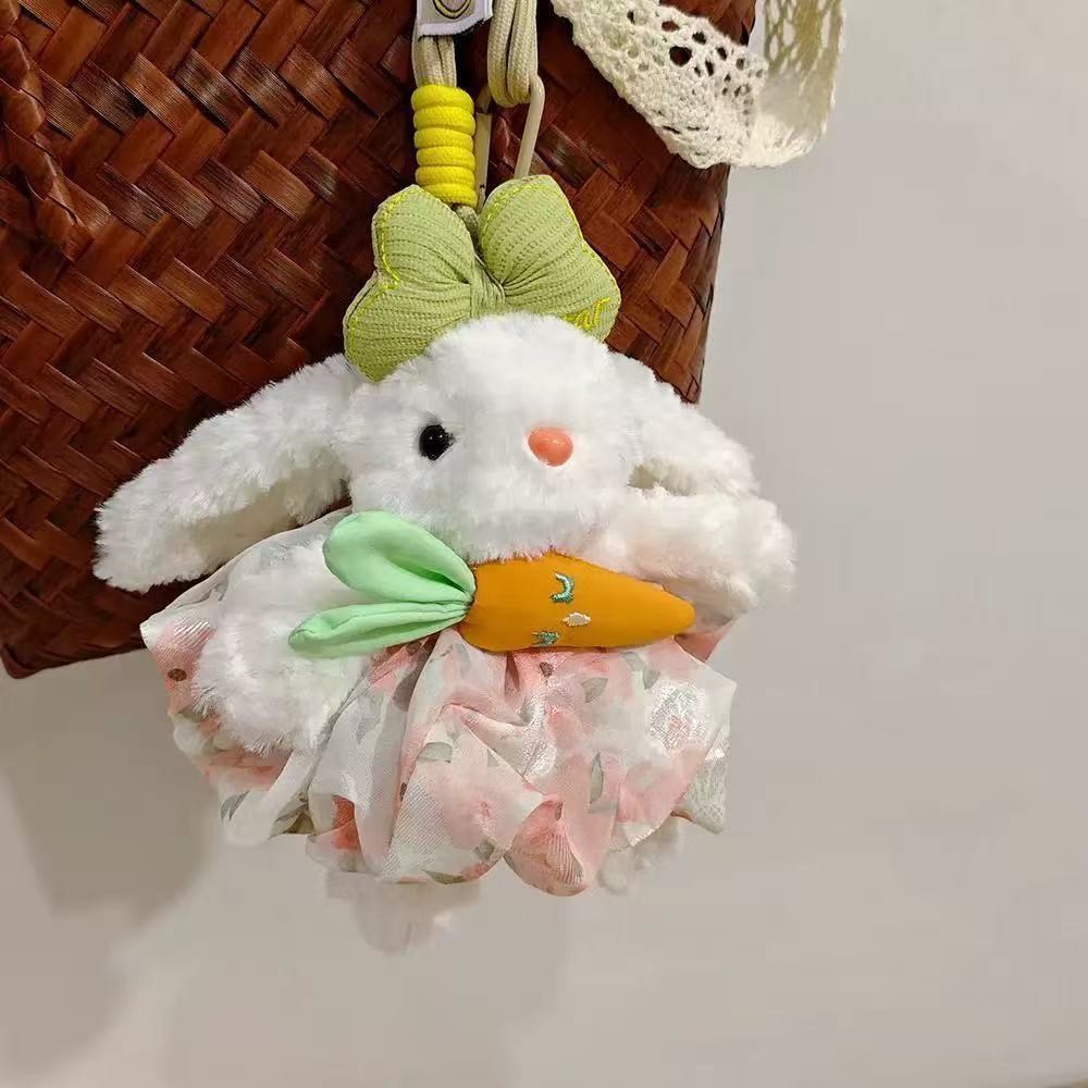 • 봉제 귀가 늘어진 토끼—핑크색 케이크 스커트 + 핑크색 팔찌 열쇠고리