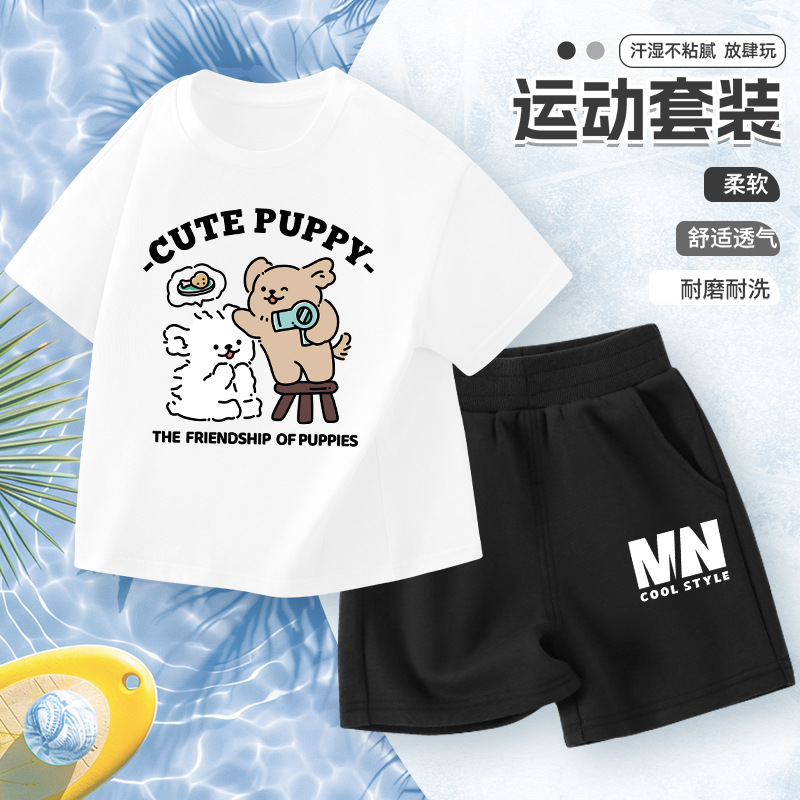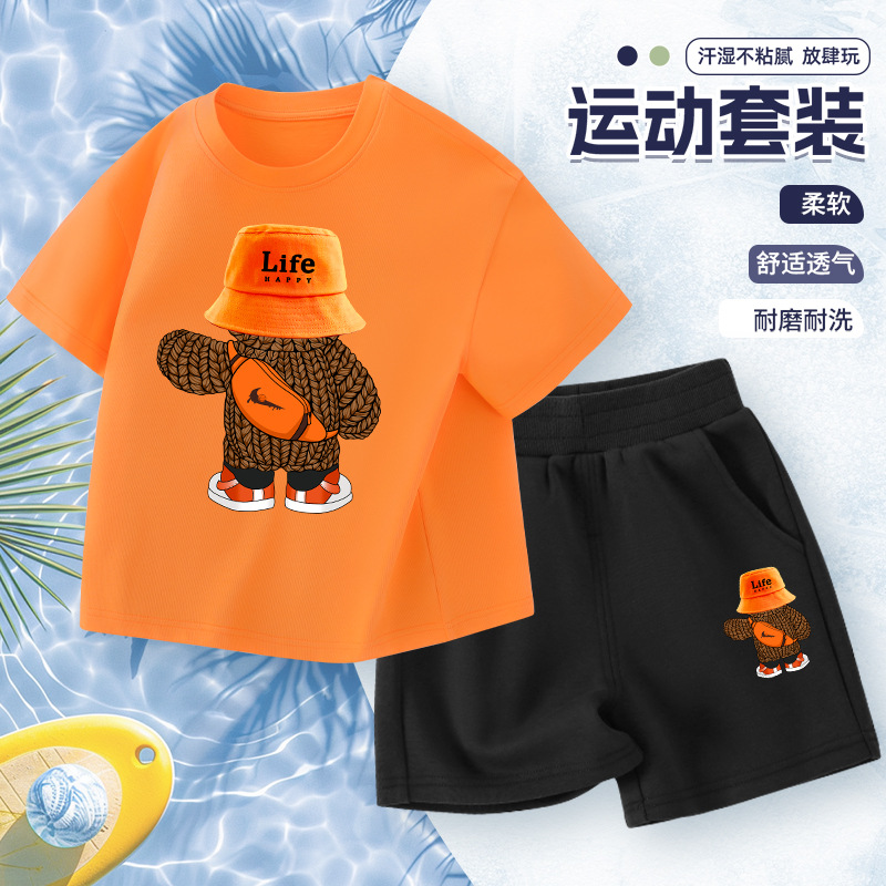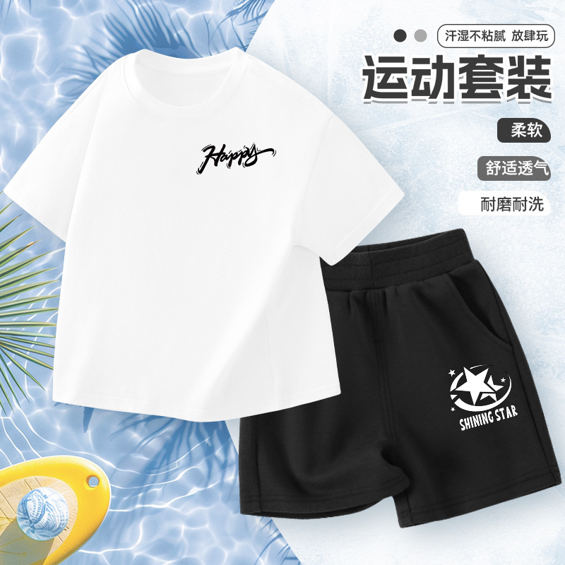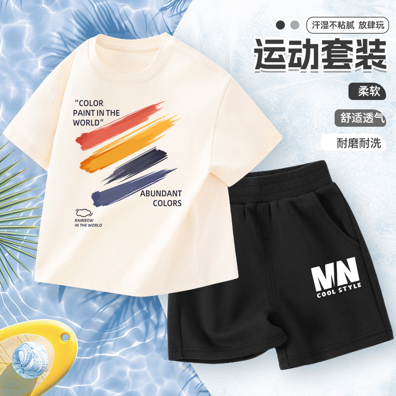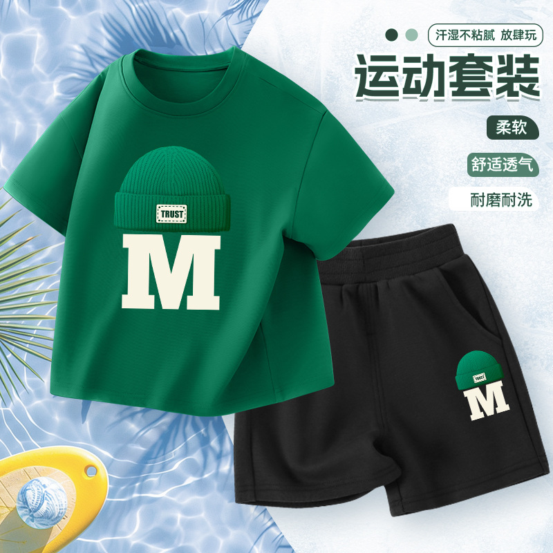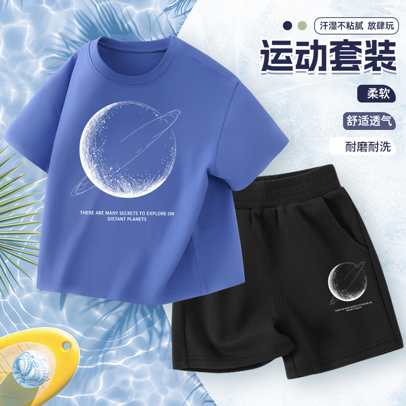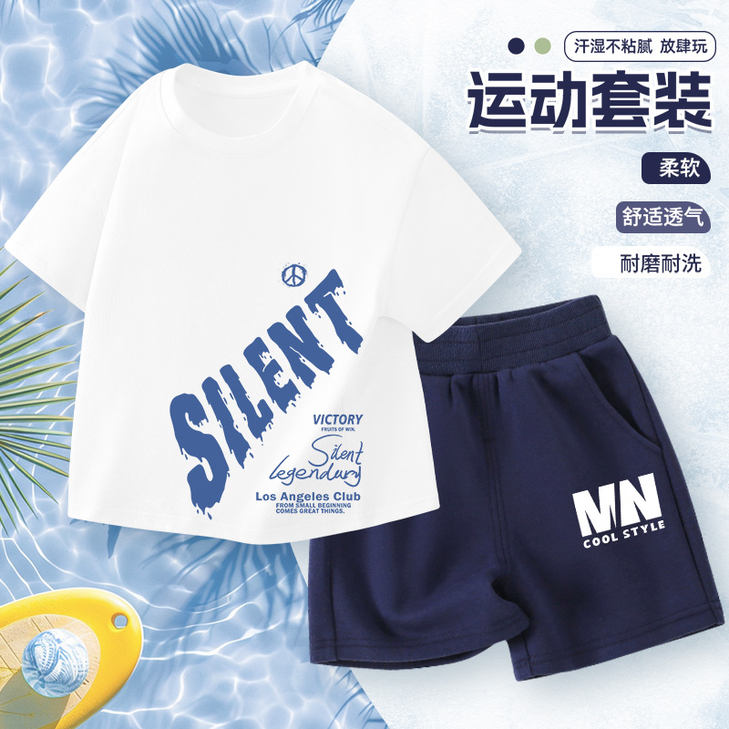 어린이 반팔 세트 소년면 2025 새로운 소년 여름 얇은 스포츠 옷 여름 투피스 유행 세트