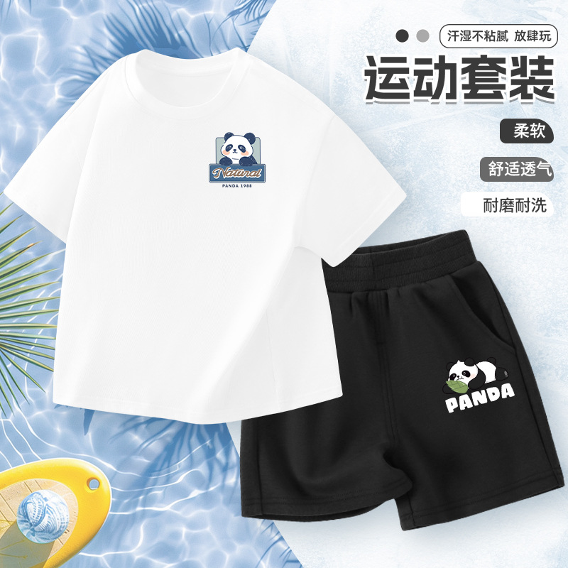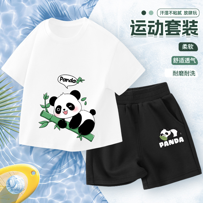 • [여름 순면 반팔 슈트] 화이트 레트로 팬더 X + 블랙 죽순을 먹는 팬더 X