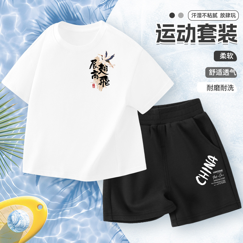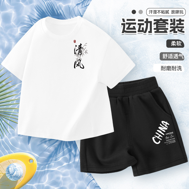 어린이 반팔 세트 소년면 2025 새로운 소년 여름 얇은 스포츠 옷 여름 투피스 유행 세트스토어 가기