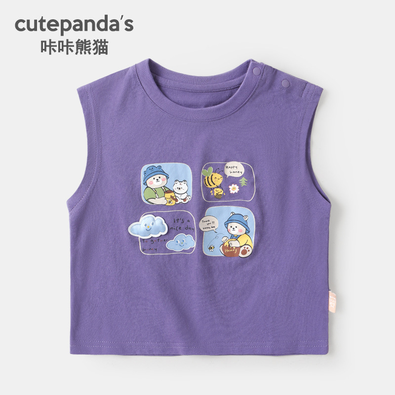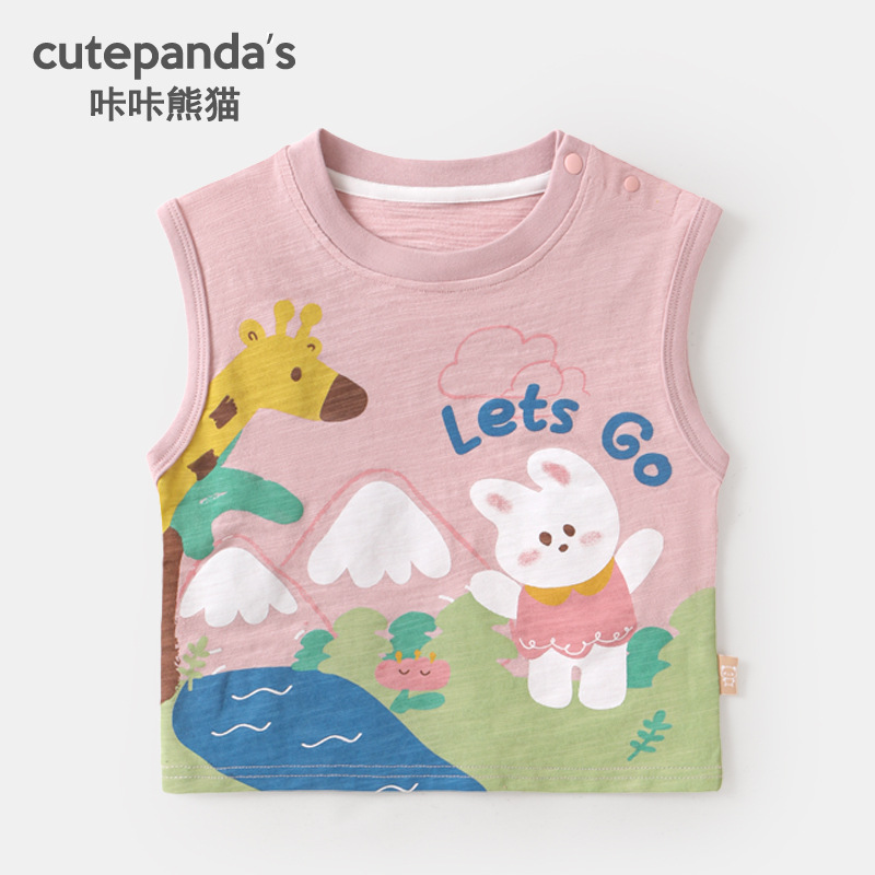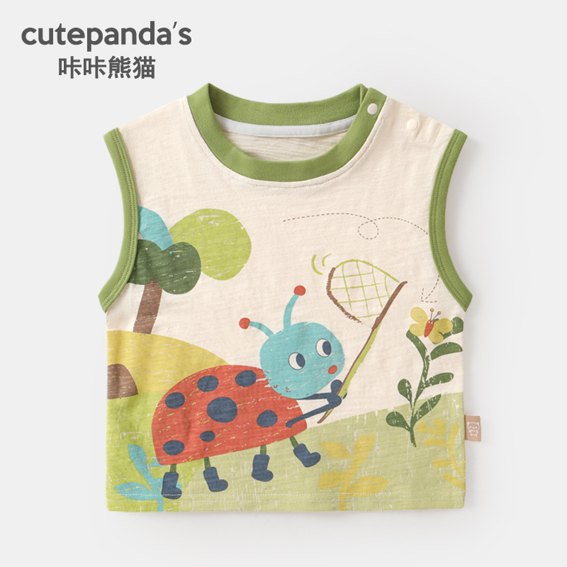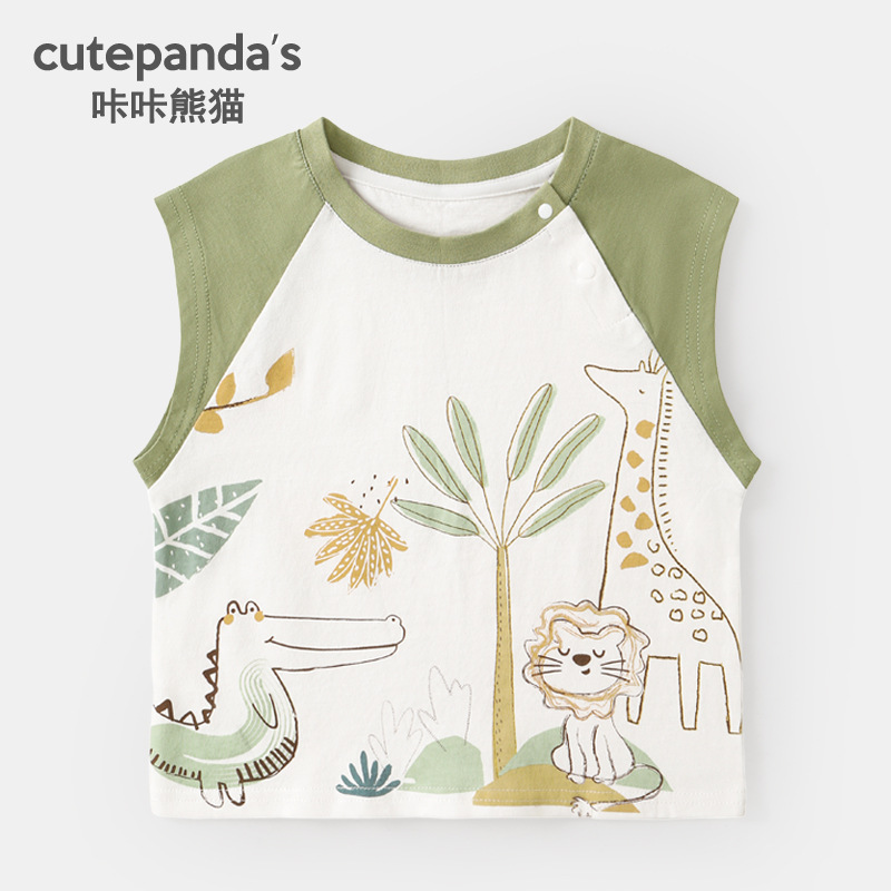 카카 팬더 소년 조끼 아기 옷 여아 민소매 티셔츠 여름 옷 어린이 아기 여름 재킷 어린이 의류스토어 가기
