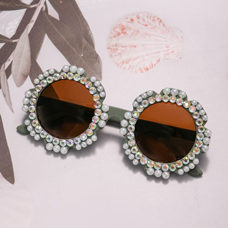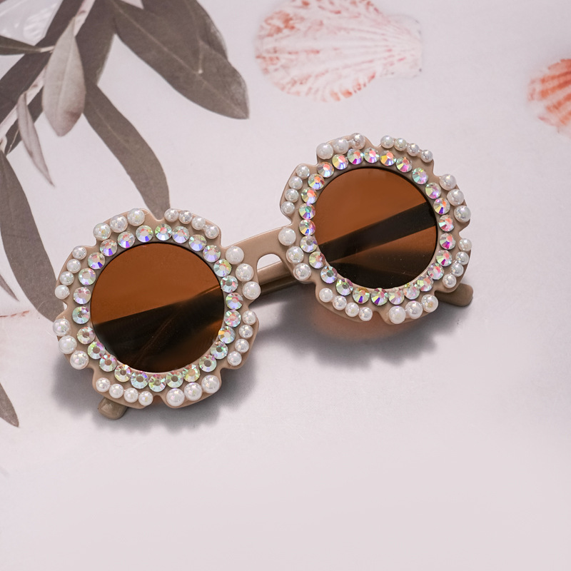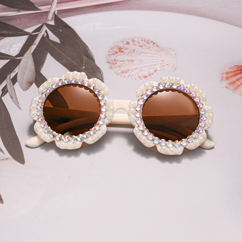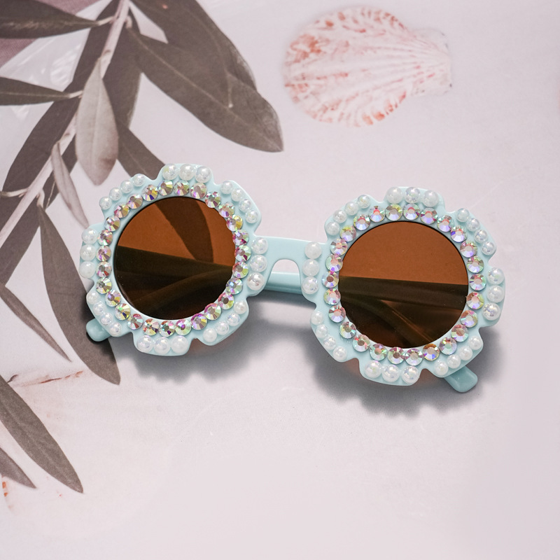 새로운 패션 어린이 안경 다이아몬드 트렌디 한 모조 다이아몬드 선글라스 꽃 귀여운 아기 선글라스 UV 보호