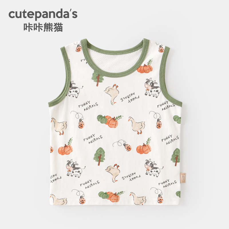 카카 팬더 어린이 조끼 아기 아동복 소년 캐주얼 민소매 티셔츠 소녀 여름 착용 아기의 최고 여름스토어 가기