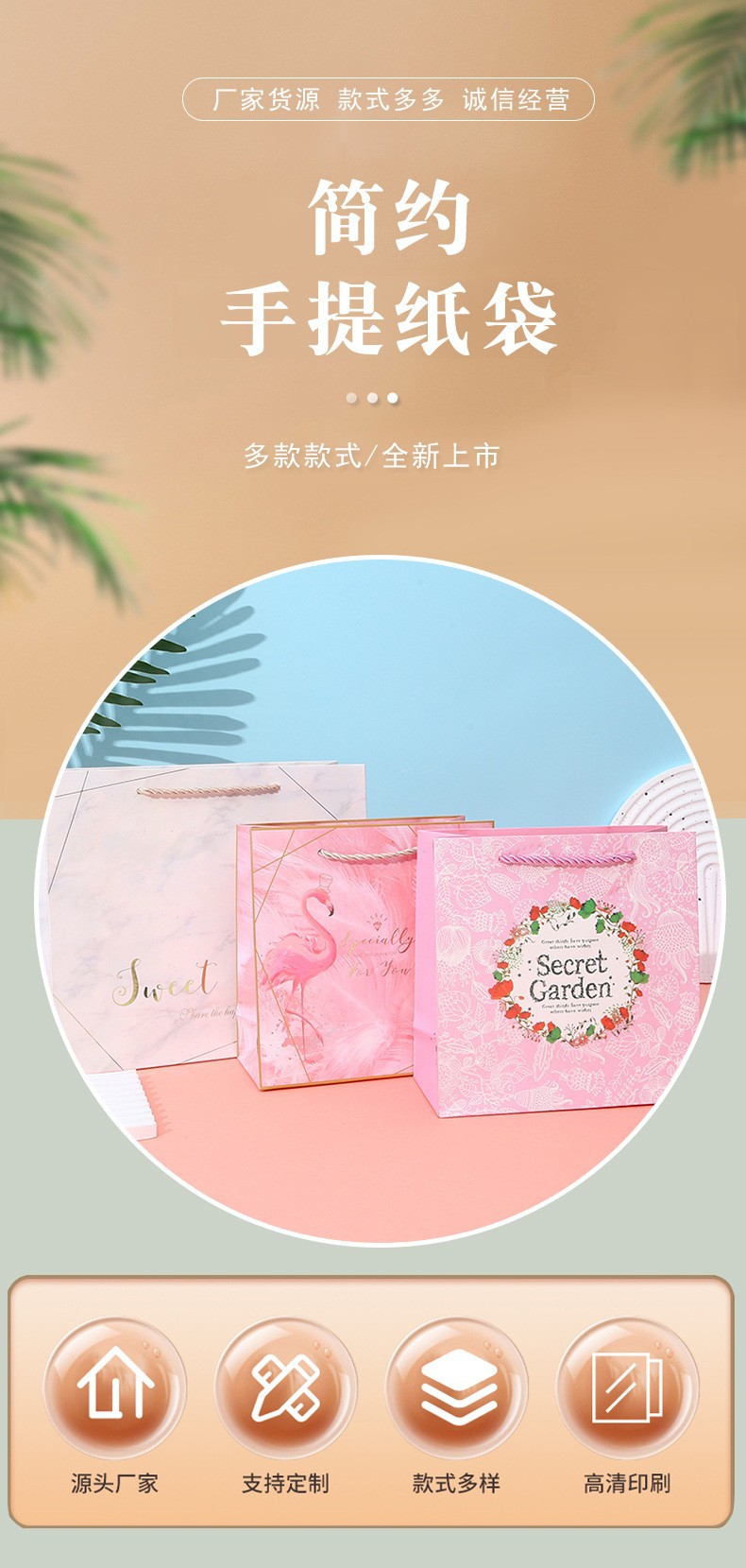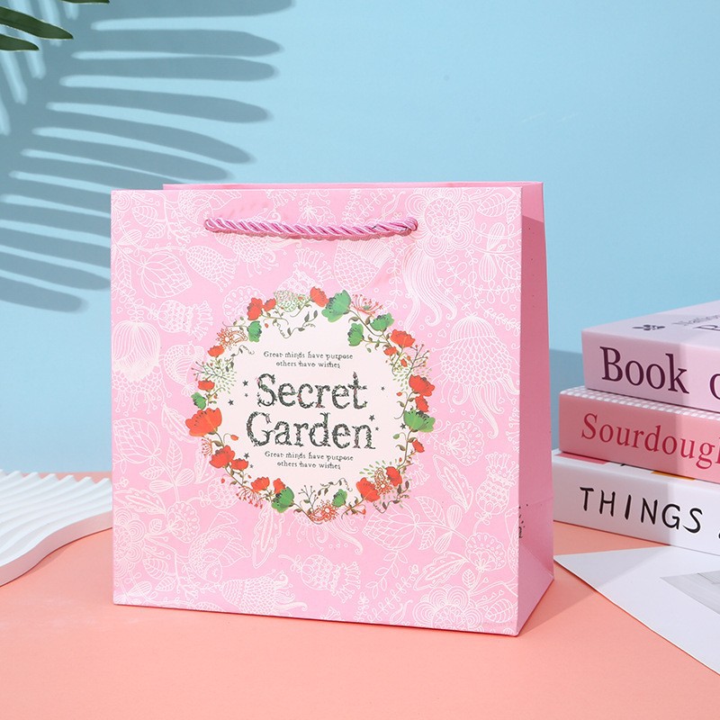무료 배송 재고 브론징 신선한 인쇄 선물 가방 선물 흰색 판지 종이 가방 절묘한 화장품 포장 선물 가방
