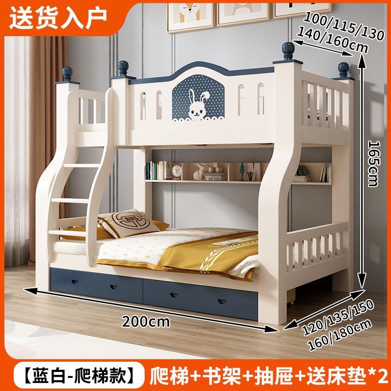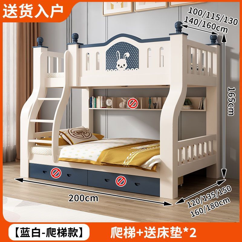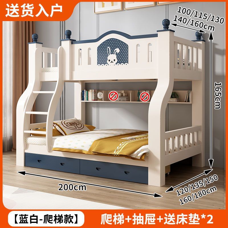 • 토끼 파란색과 흰색 사다리 모델 + 책장 + 2cm 코코넛 야자 매트리스 * 2