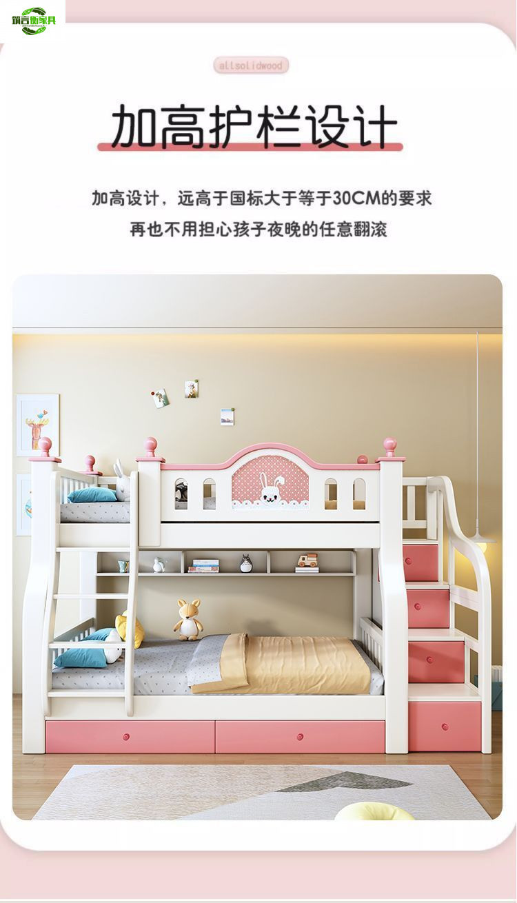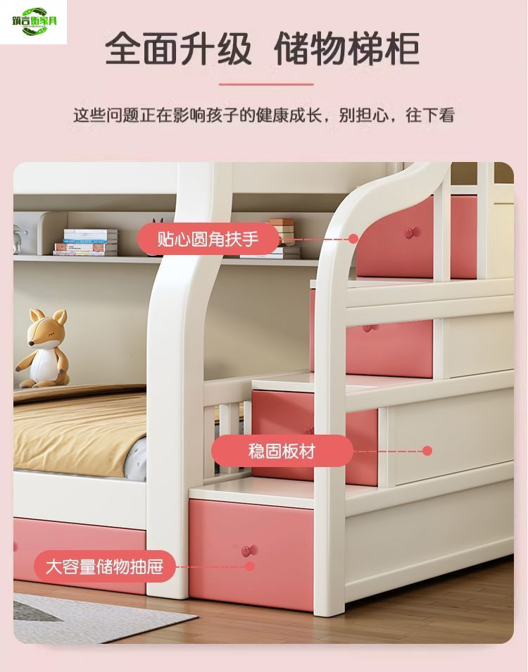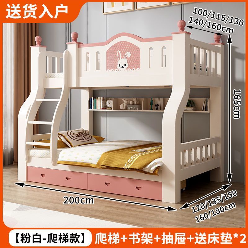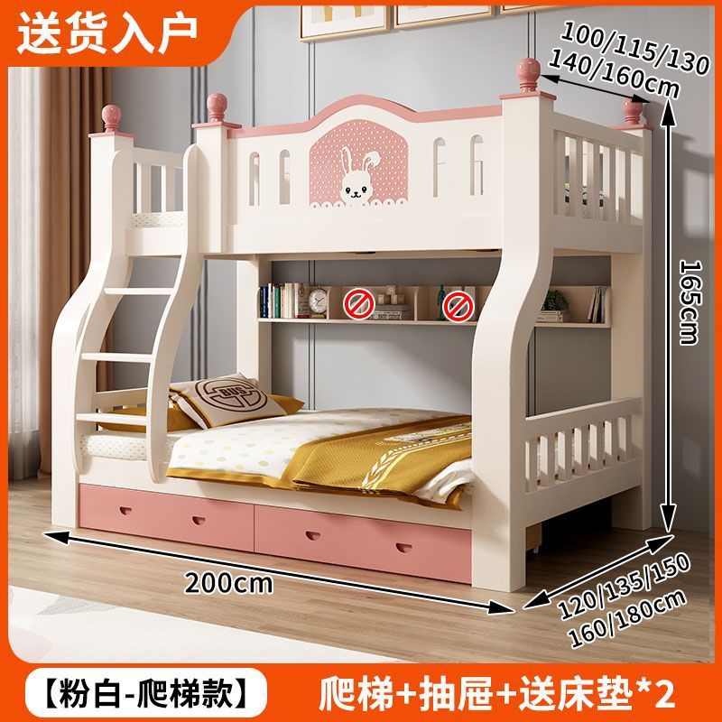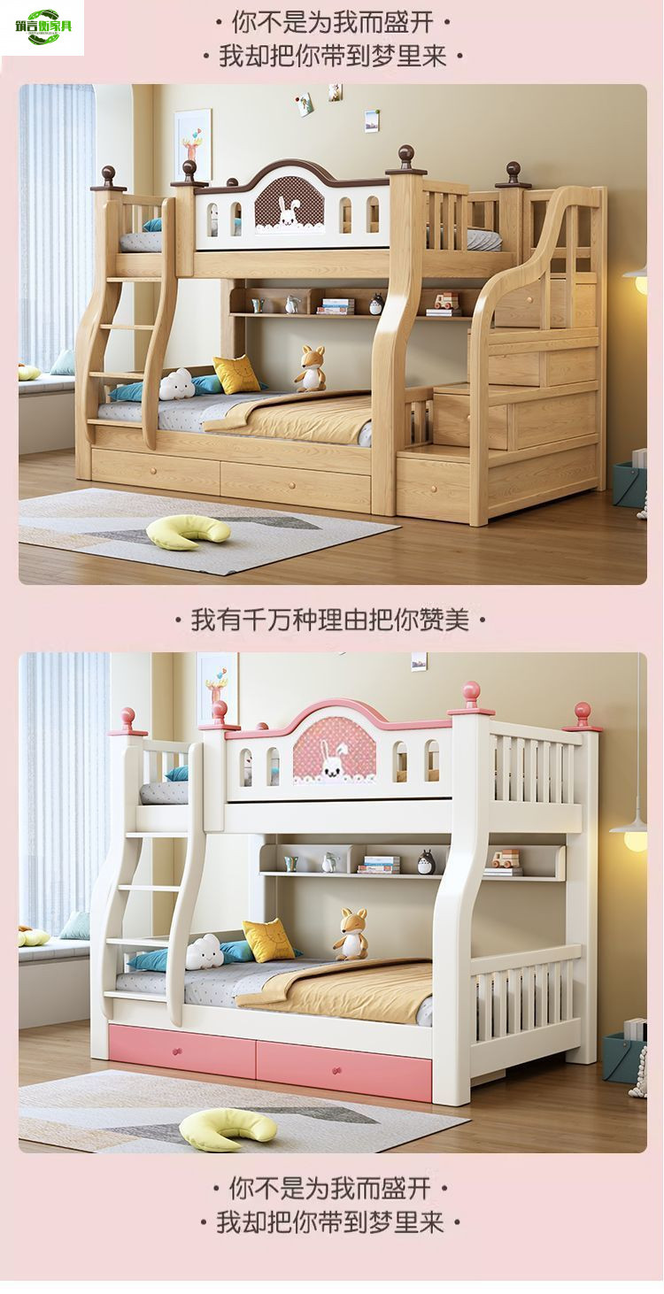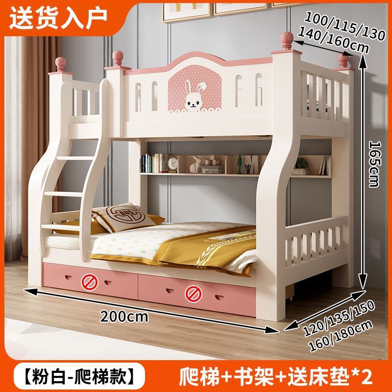 • 토끼 핑크와 화이트 사다리 스타일 + 책장 서랍 2cm 코코넛 야자 매트리스*2