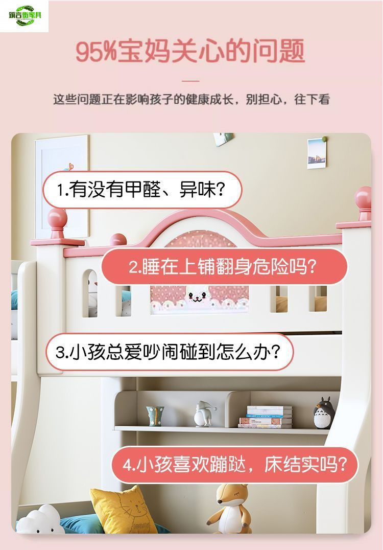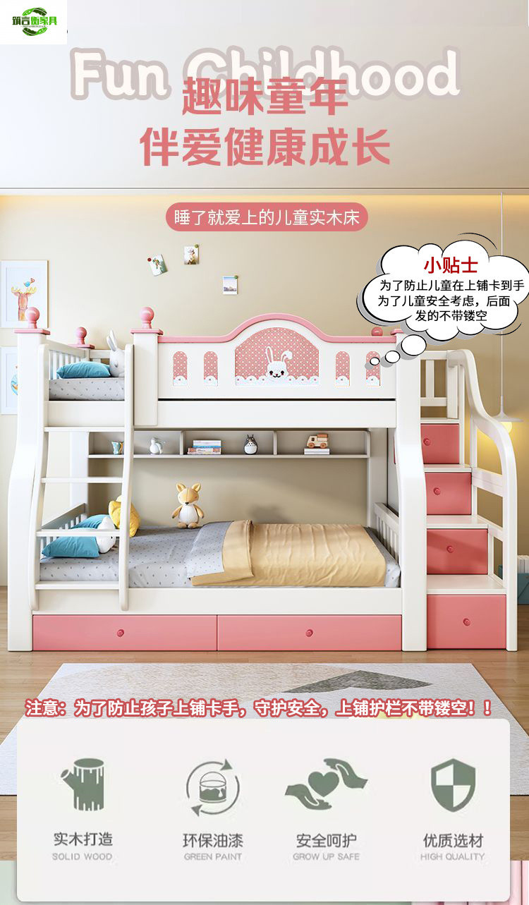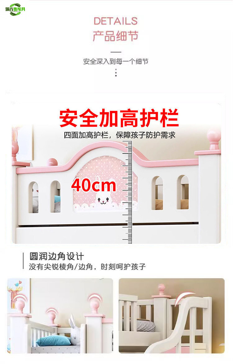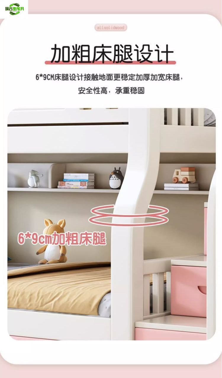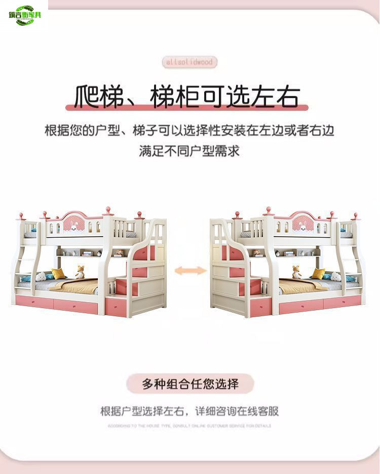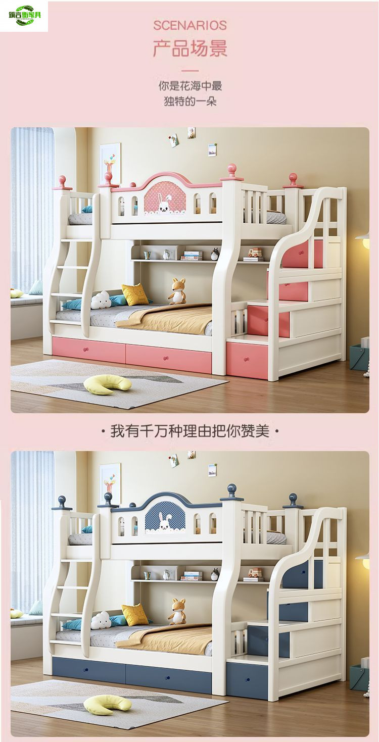 • 토끼 핑크와 화이트 사다리 스타일 + 책장 서랍 2cm 코코넛 야자 매트리스*2