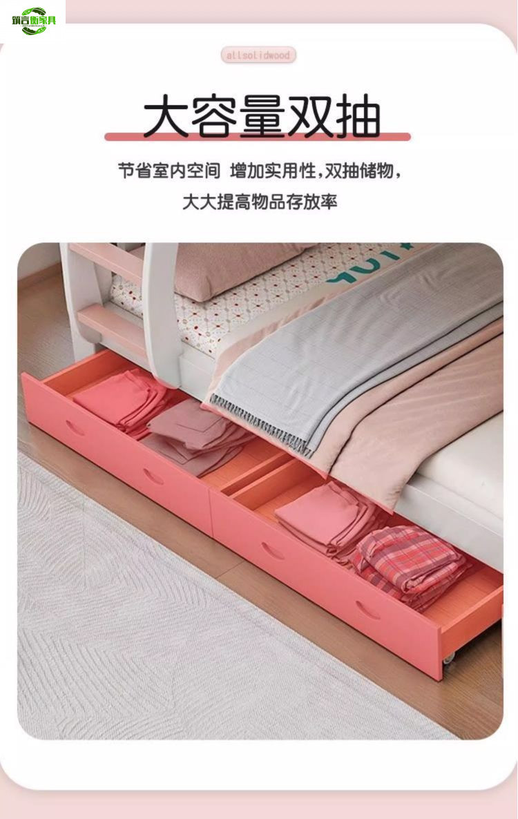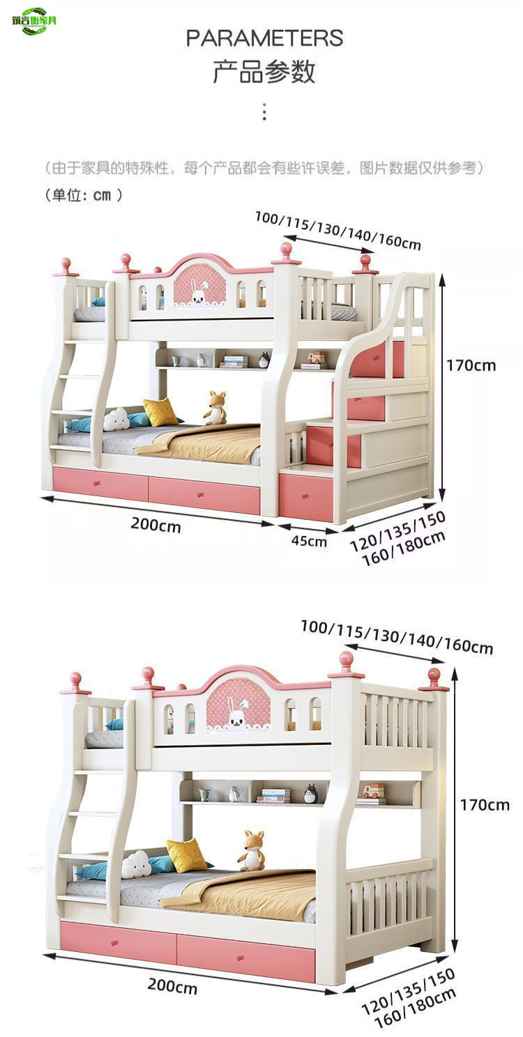 • 토끼 핑크색과 흰색 사다리 스타일 + 서랍 + 2cm 코코넛 야자 매트리스*2