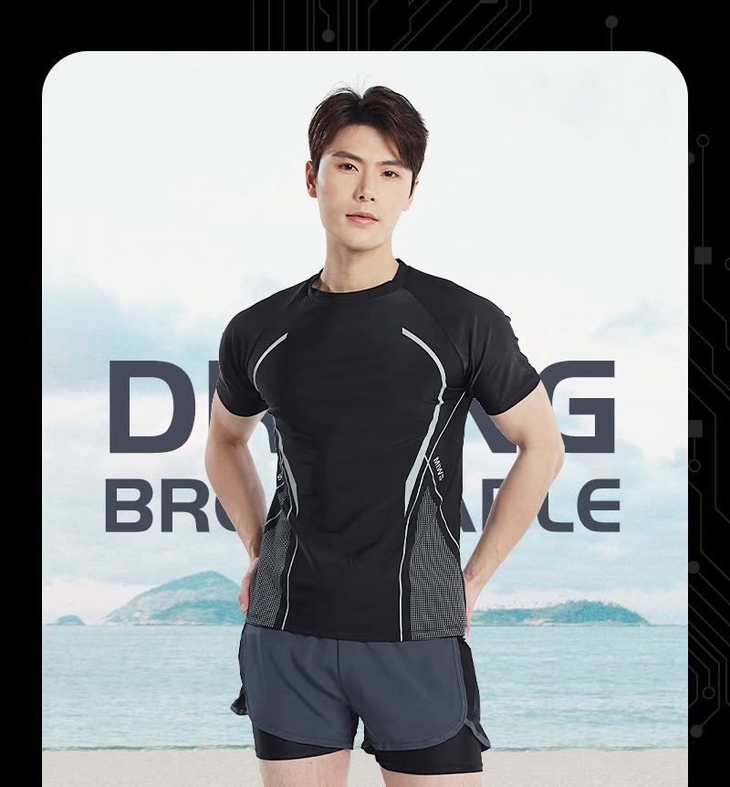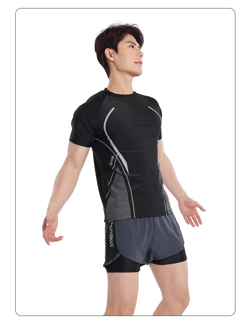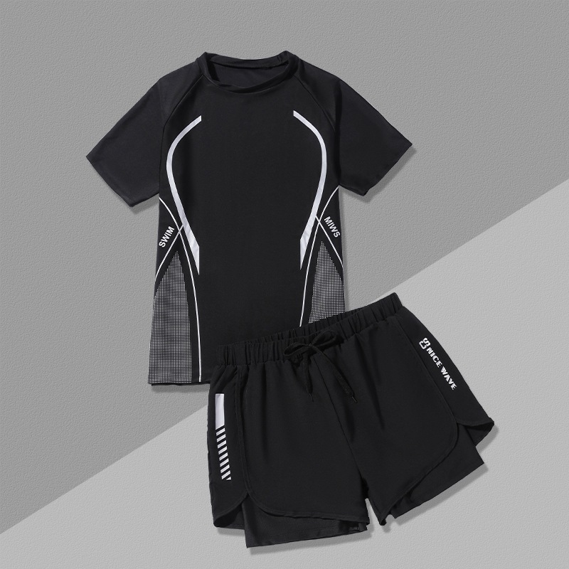 수영복 남성복 반팔 상의 더블 레이어 당황 방지 성인 수영 트렁크 비치 바지 온천 수영복