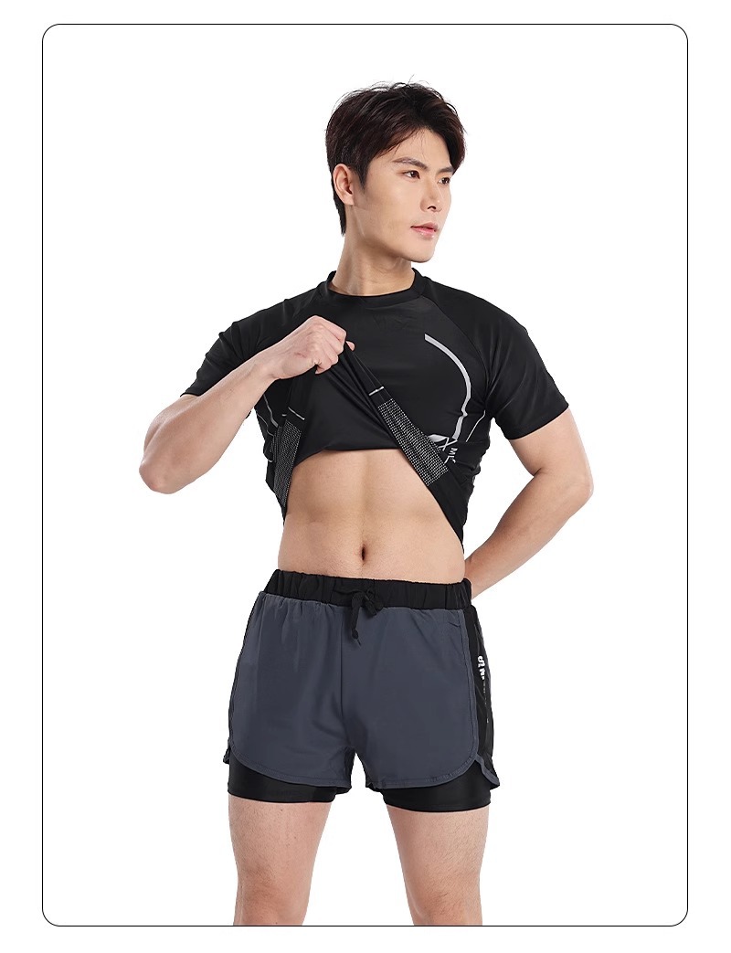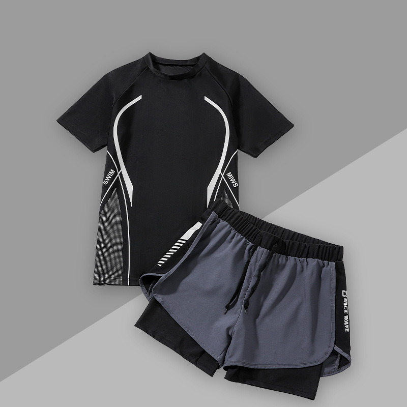 수영복 남성복 반팔 상의 더블 레이어 당황 방지 성인 수영 트렁크 비치 바지 온천 수영복스토어 가기