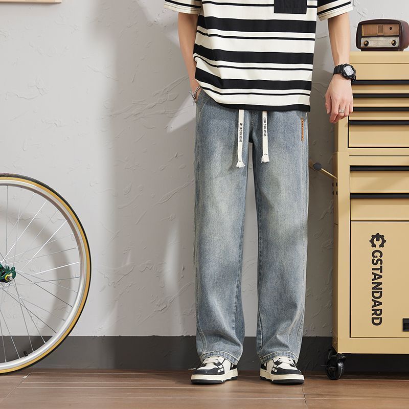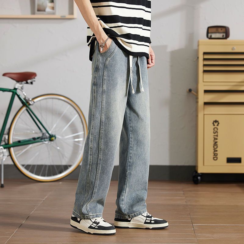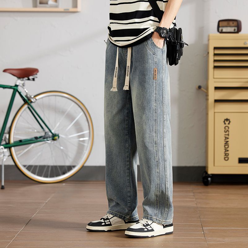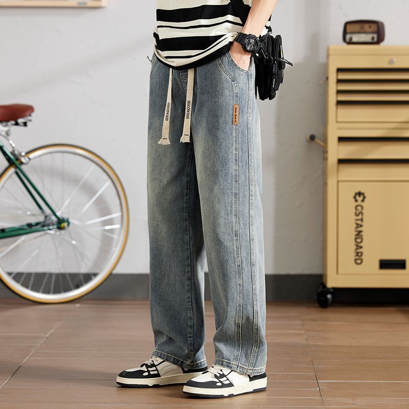 크록 청바지 남자 2025 년 봄 새로운 도착 올매치 느슨한 캐주얼 남자 트렌디 스트레치 허리 와이드 레그 바지스토어 가기