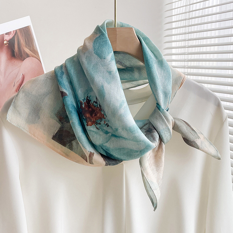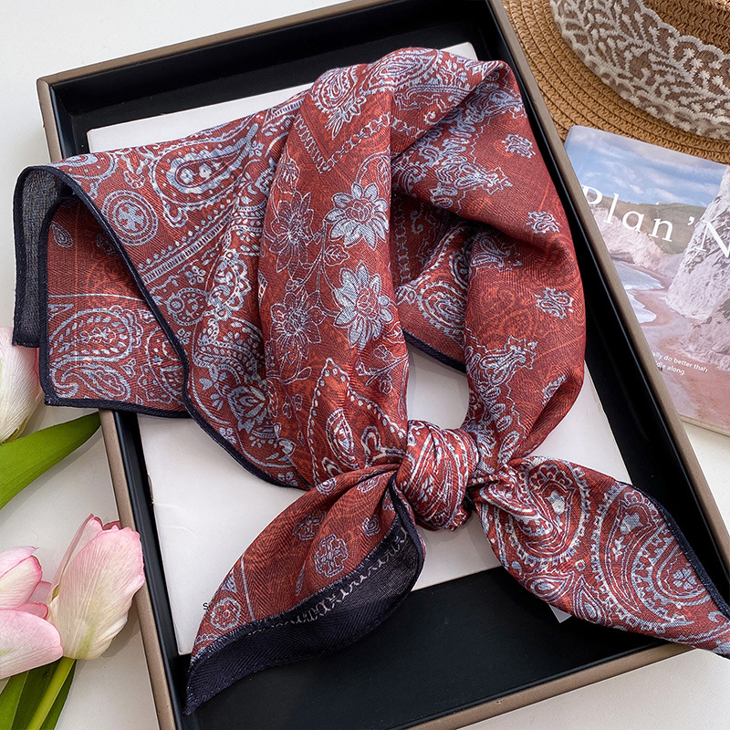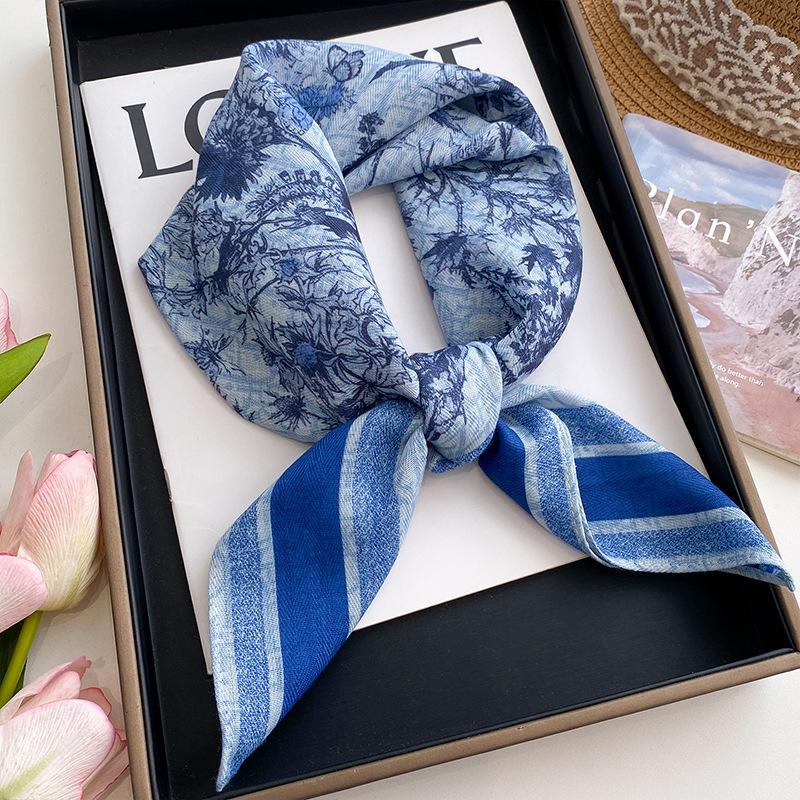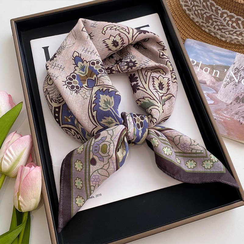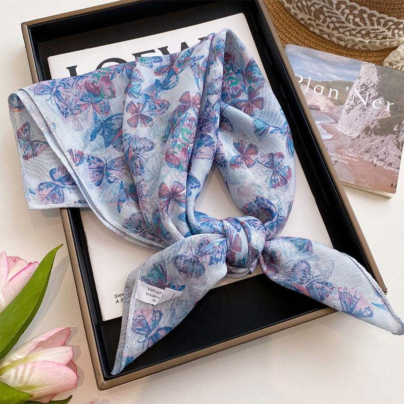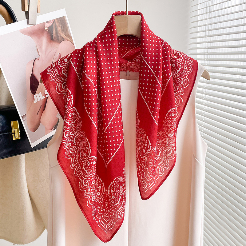 70 면화 린넨 핑크 열대 우림 광장 스카프 여성 한국식 목가적 인 목 작은 스카프 얇은 삼각형 머리 스카프 보호스토어 가기