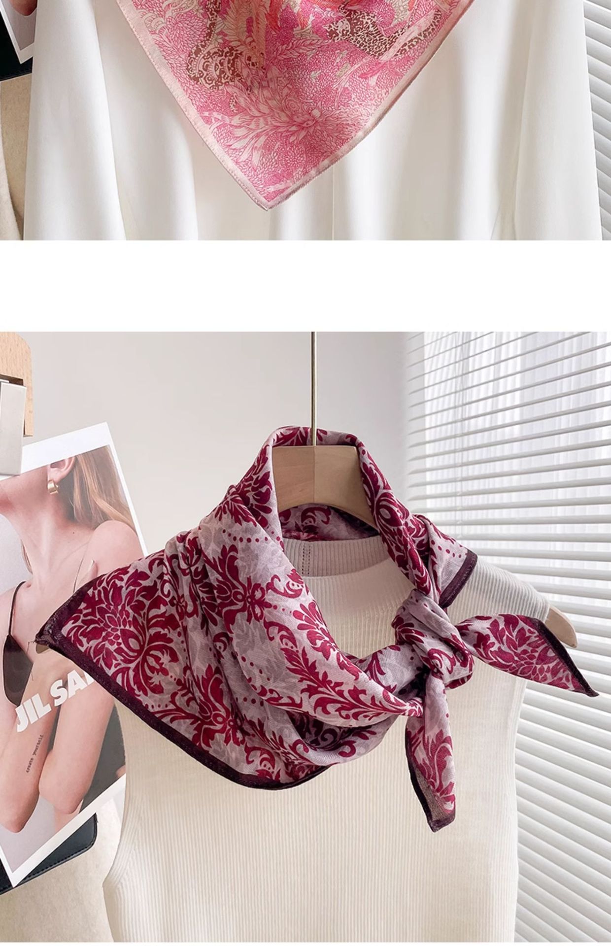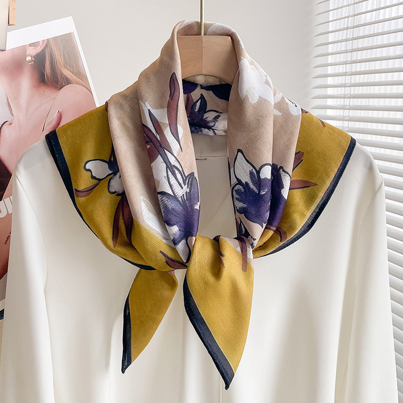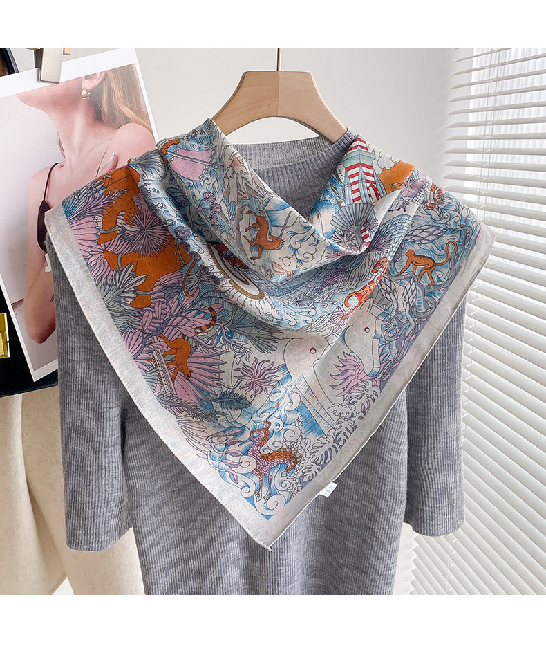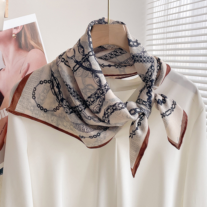 70 면화 린넨 핑크 열대 우림 광장 스카프 여성 한국식 목가적 인 목 작은 스카프 얇은 삼각형 머리 스카프 보호스토어 가기
