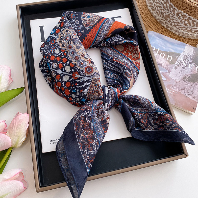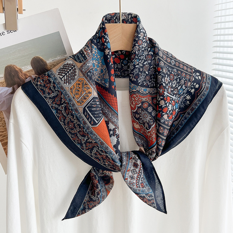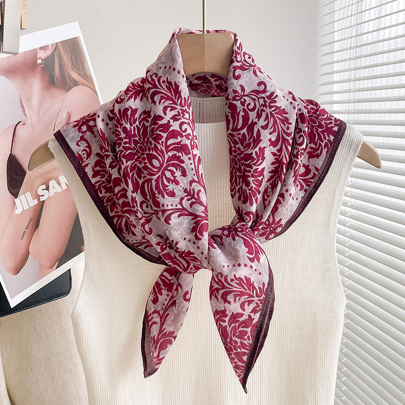 70 면화 린넨 핑크 열대 우림 광장 스카프 여성 한국식 목가적 인 목 작은 스카프 얇은 삼각형 머리 스카프 보호
