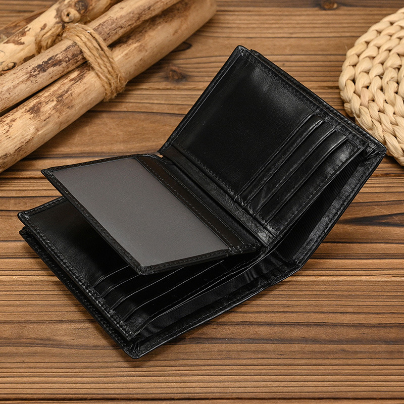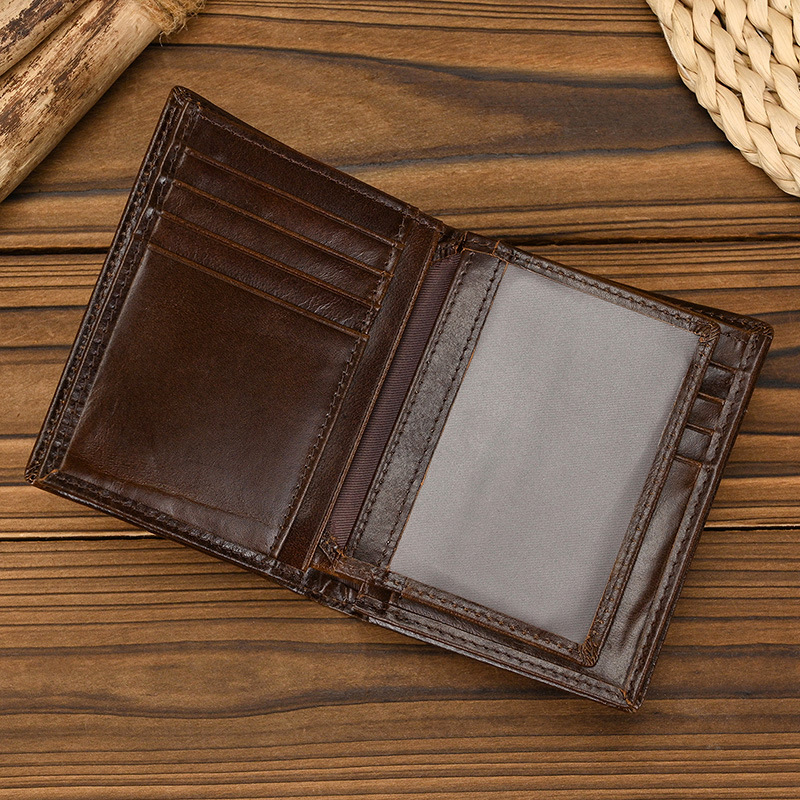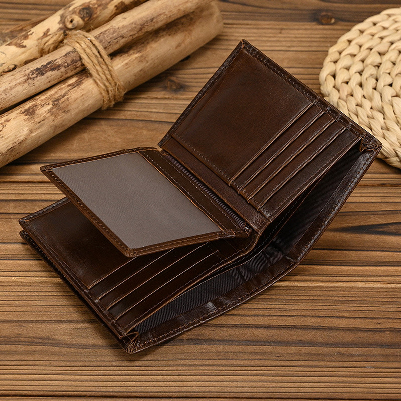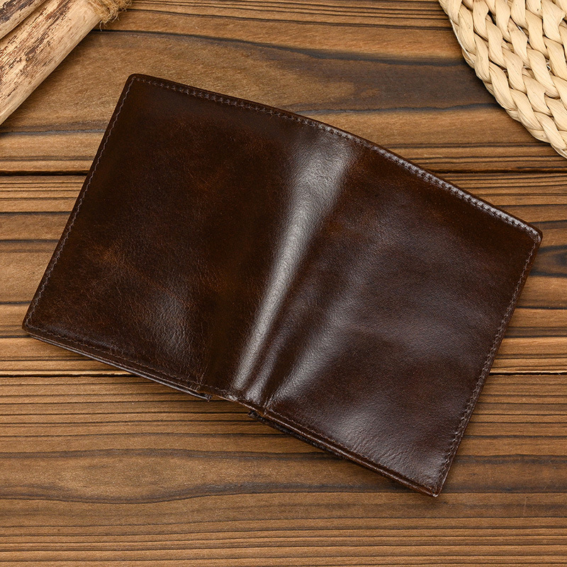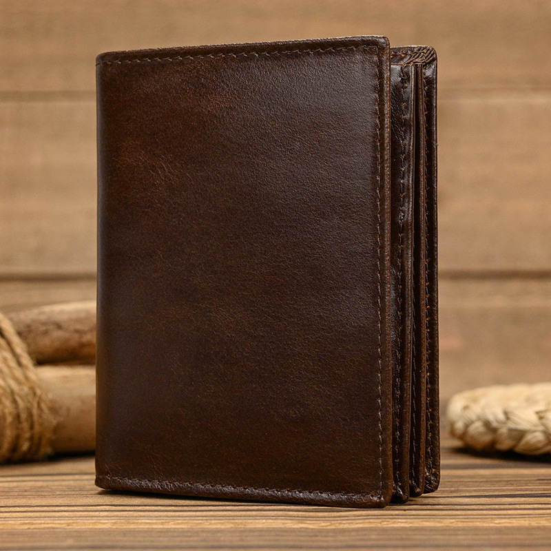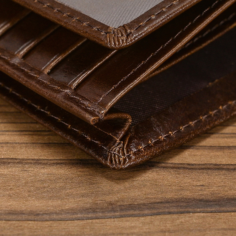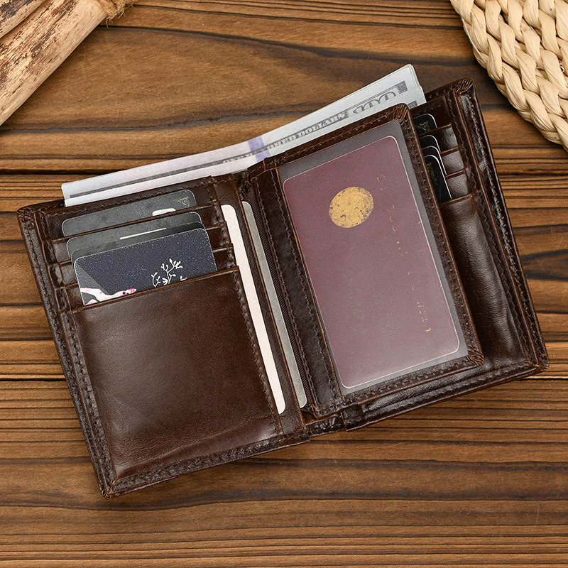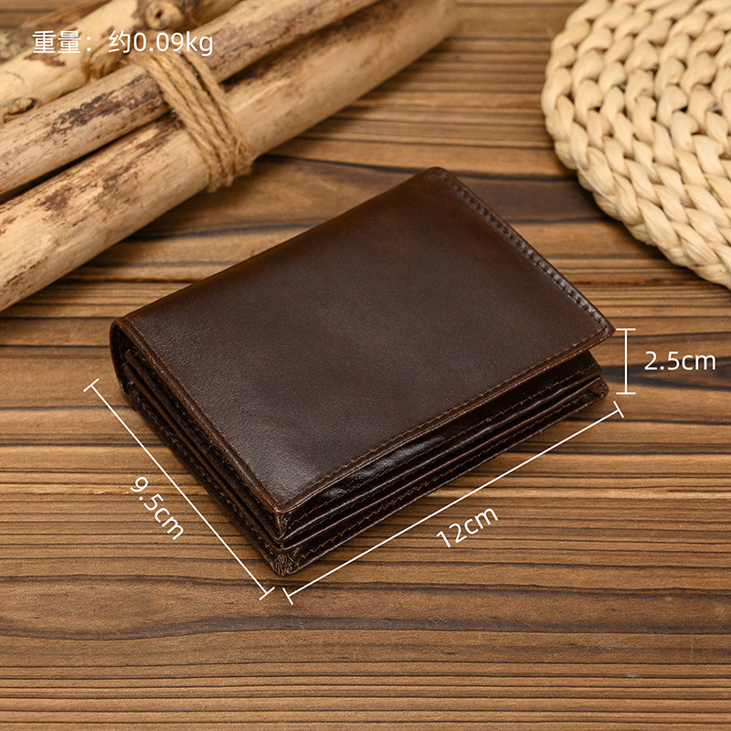 남성과 여성을위한 RFID 3 배 가죽 짧은 지갑 도난 방지 브러시 헤드 레이어 소 지갑 오일 가죽 2 배 멀티 카드 지갑