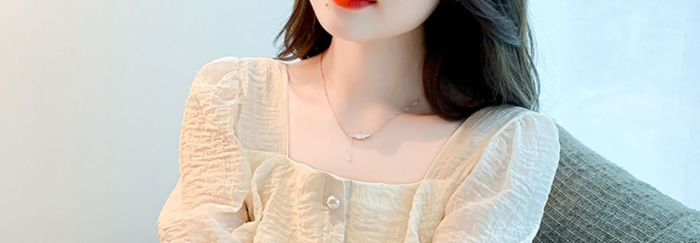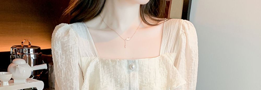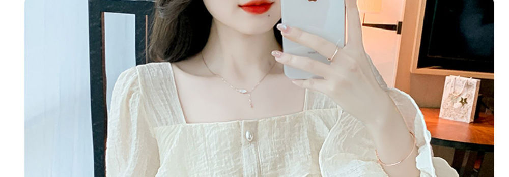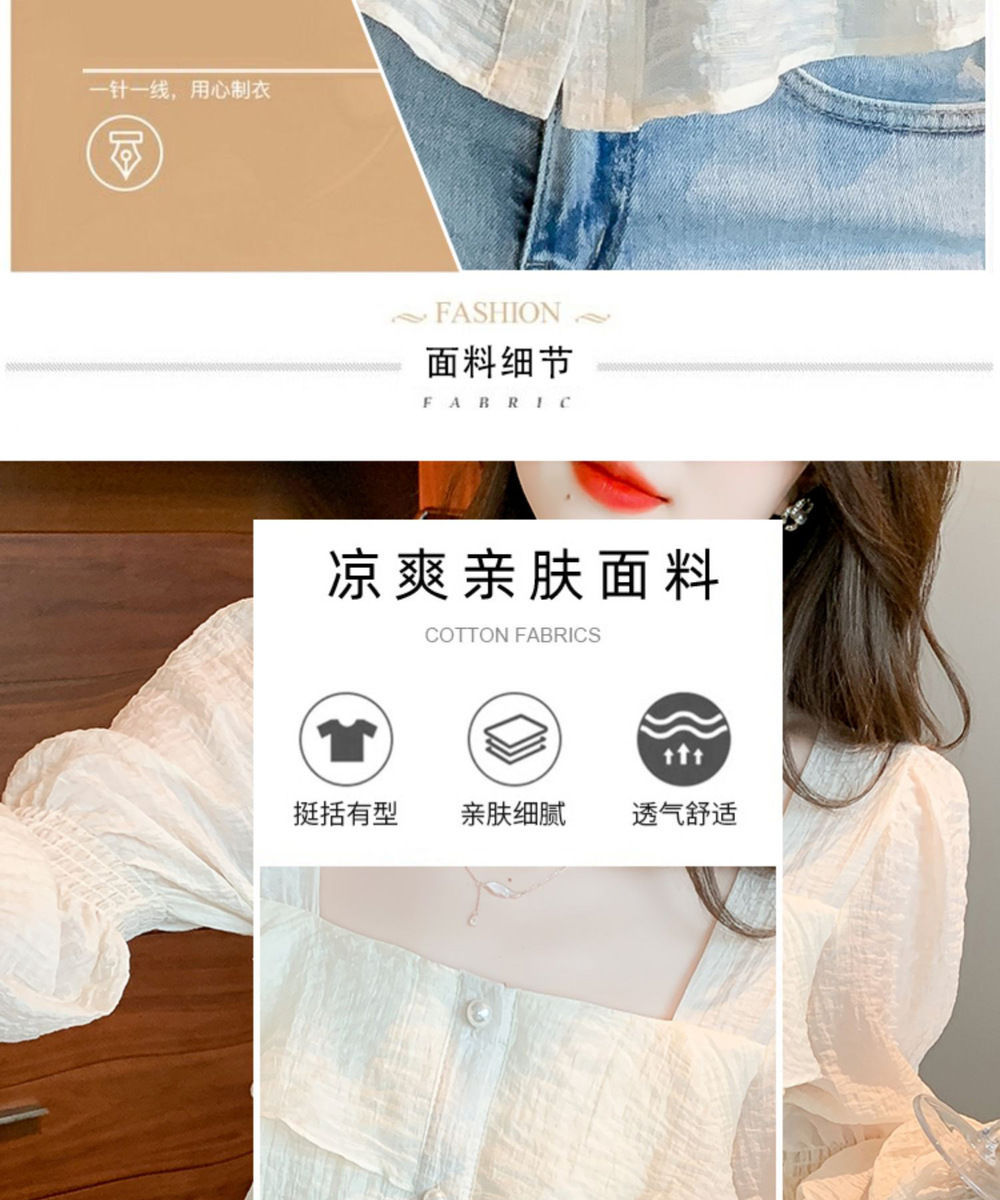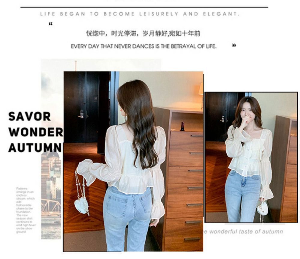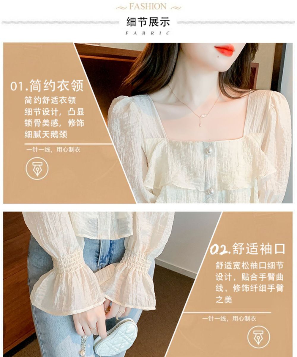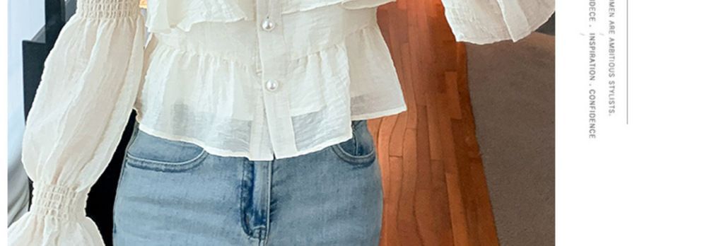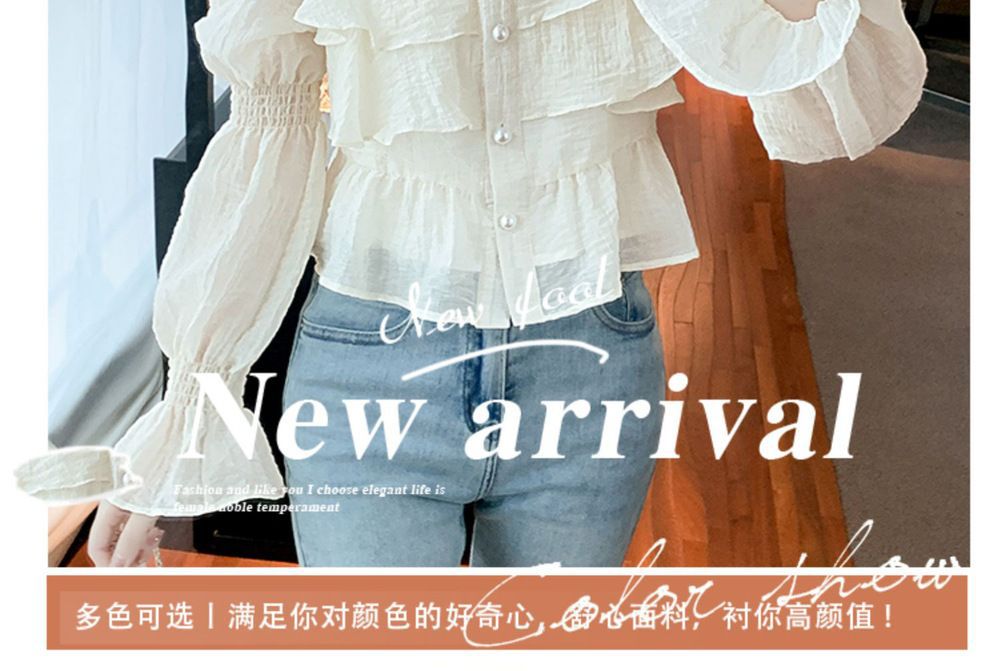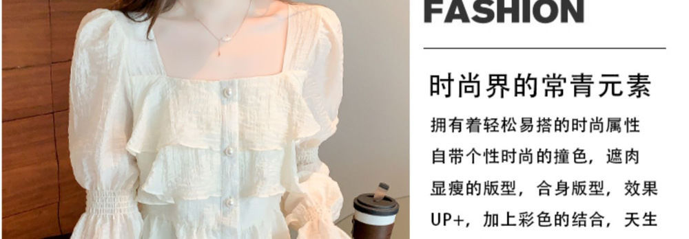 2025 봄 새로운 달콤한 프랑스 디자인 센스 짧은 러플 쉬폰 셔츠 여성용 슬리밍 우아한 랜턴 슬리브 탑스토어 가기