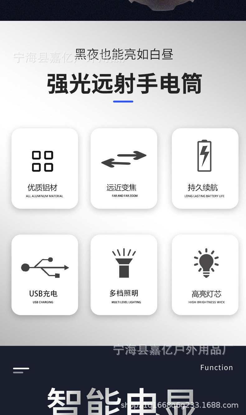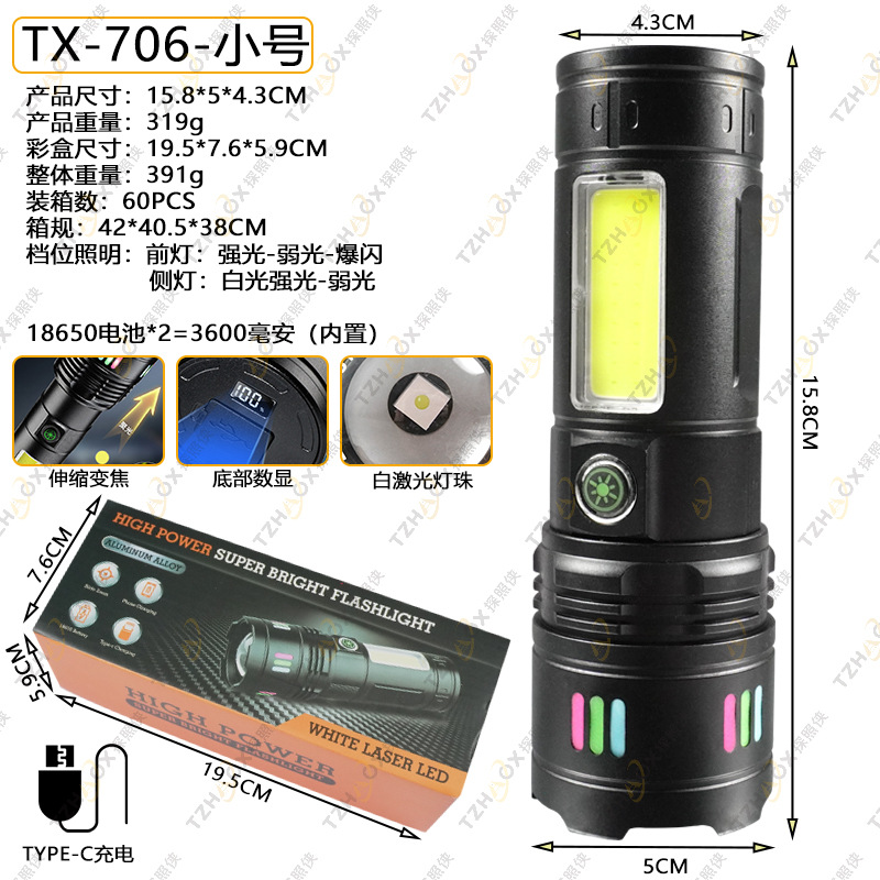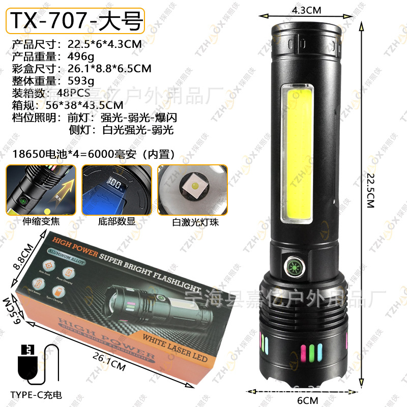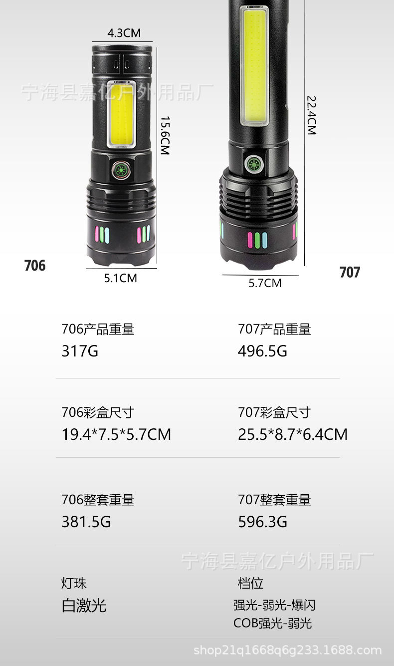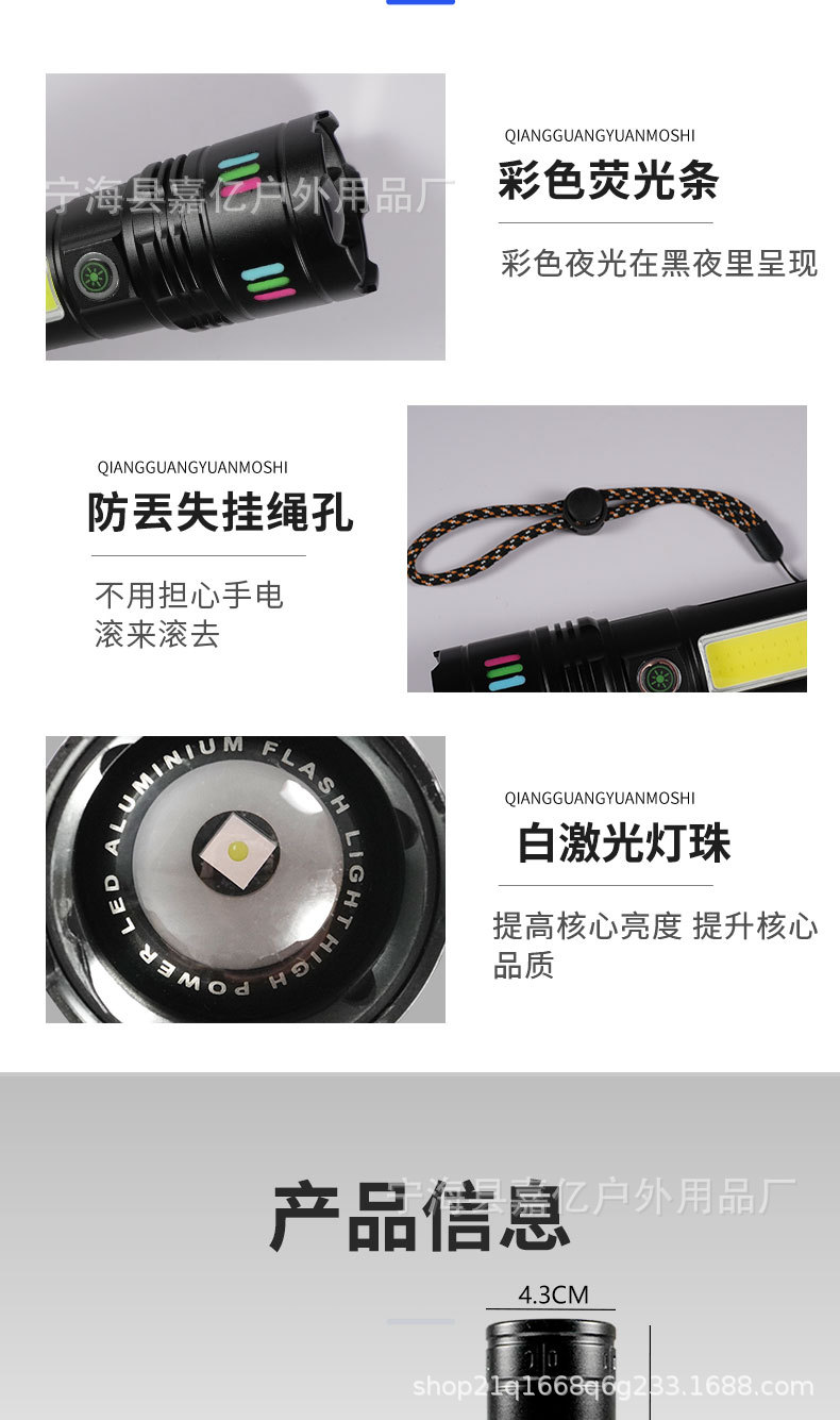 흰색 레이저 손전등 강한 빛 장거리 COB 버스트 두 배 광원 형광 캠핑 하이킹 알루미늄 합금 손전등스토어 가기