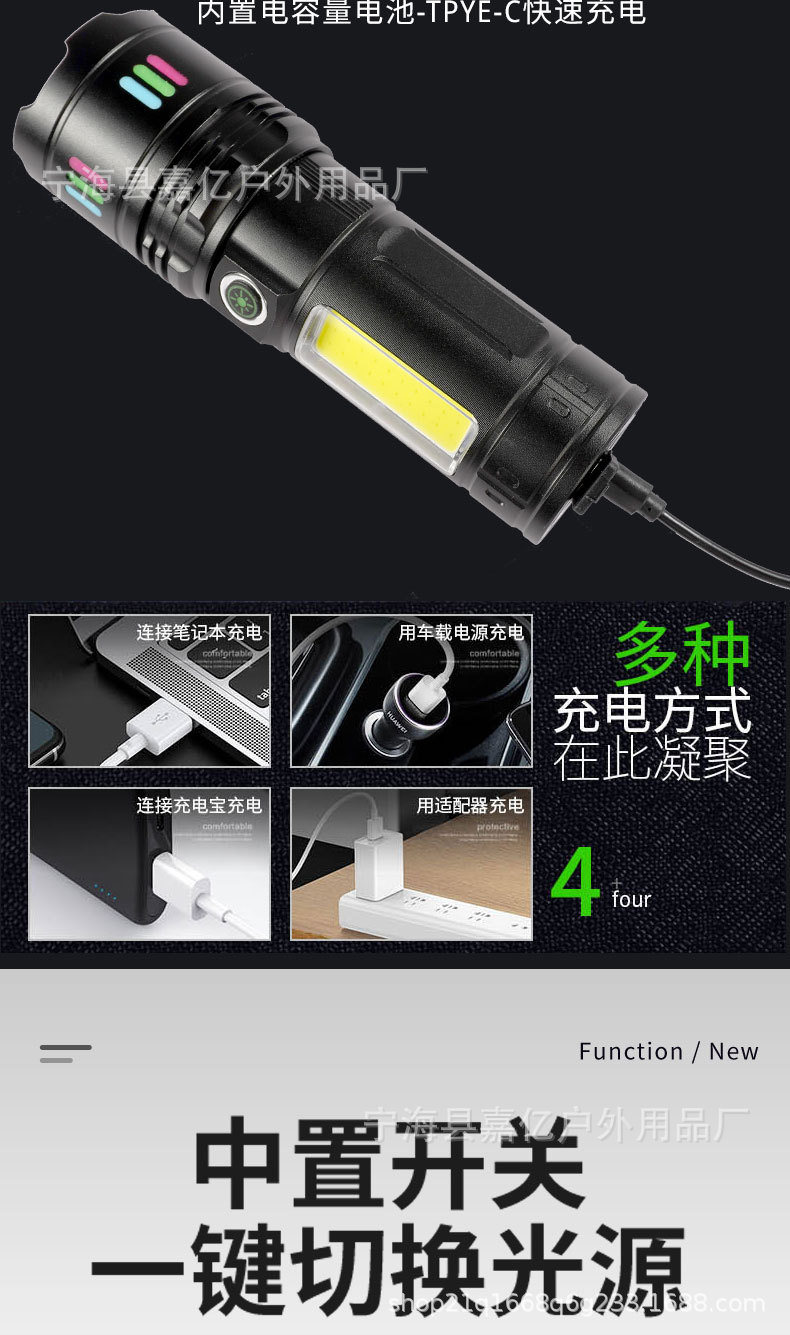 흰색 레이저 손전등 강한 빛 장거리 COB 버스트 두 배 광원 형광 캠핑 하이킹 알루미늄 합금 손전등