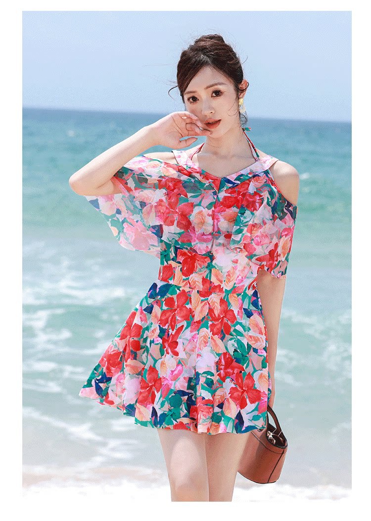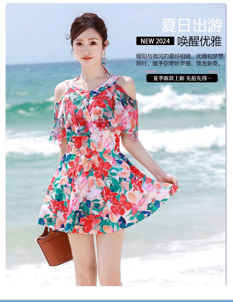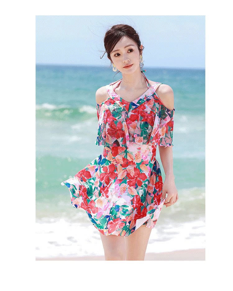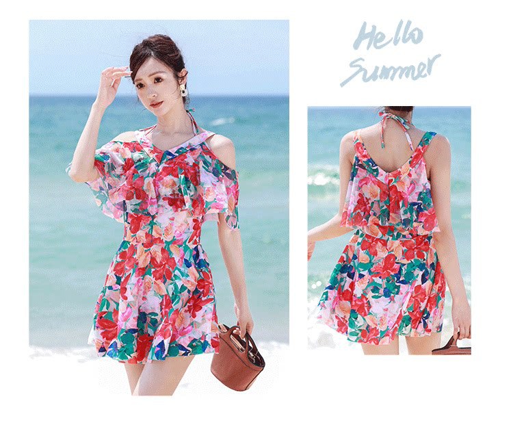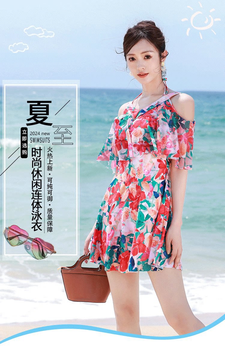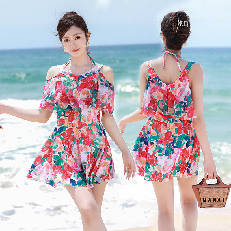 수영복 여성 온천 하이 엔드 원피스 수영복 숄더 플로럴 스커트 보수적 순수 욕망 수영복 제조 업체