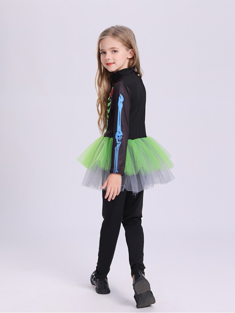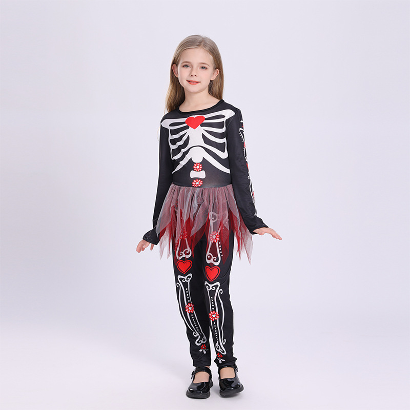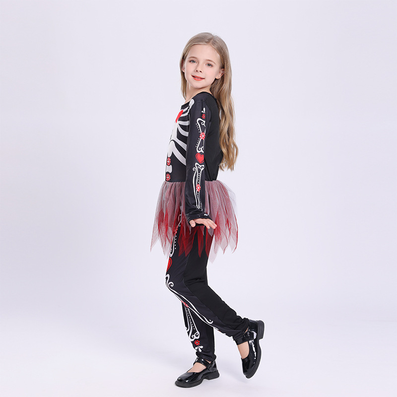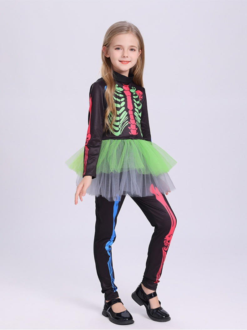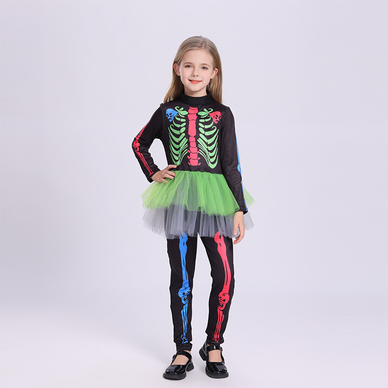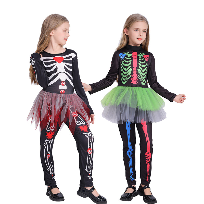 국경 간 할로윈 코스프레 해골 의상 어린이 다채로운 해골 의류 소녀 원피스 타이트 스커트 드레스