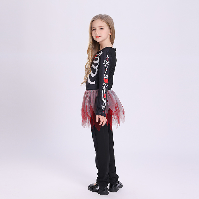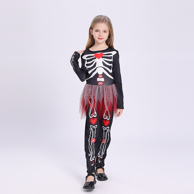 국경 간 할로윈 코스프레 해골 의상 어린이 다채로운 해골 의류 소녀 원피스 타이트 스커트 드레스스토어 가기
