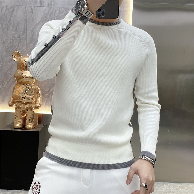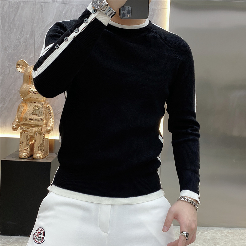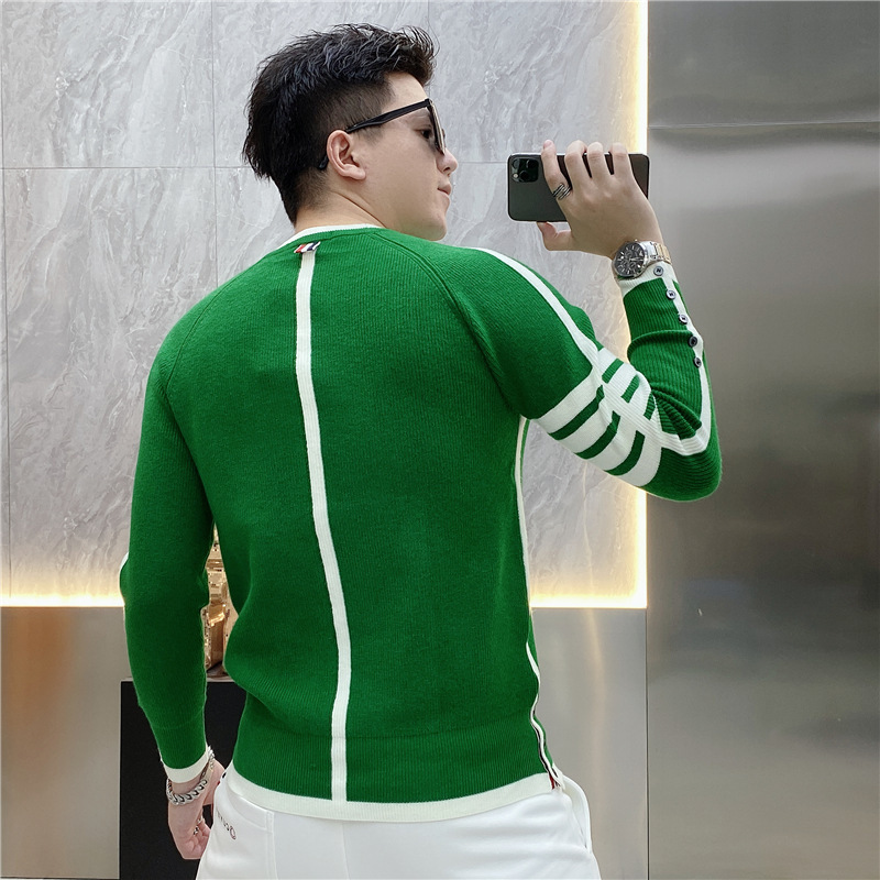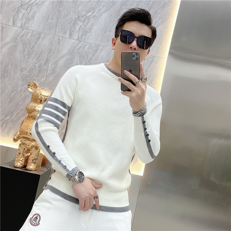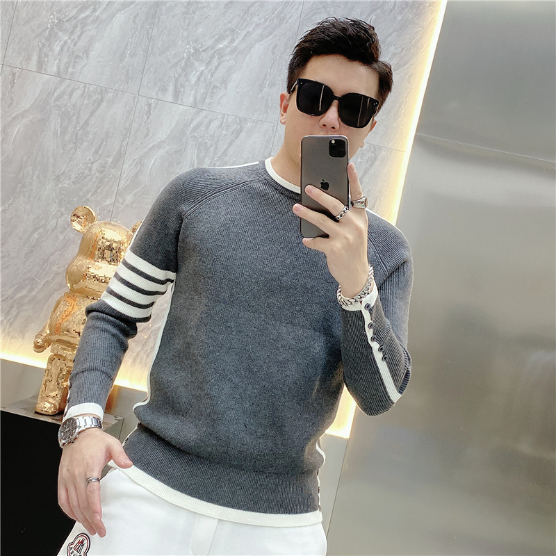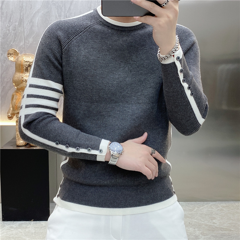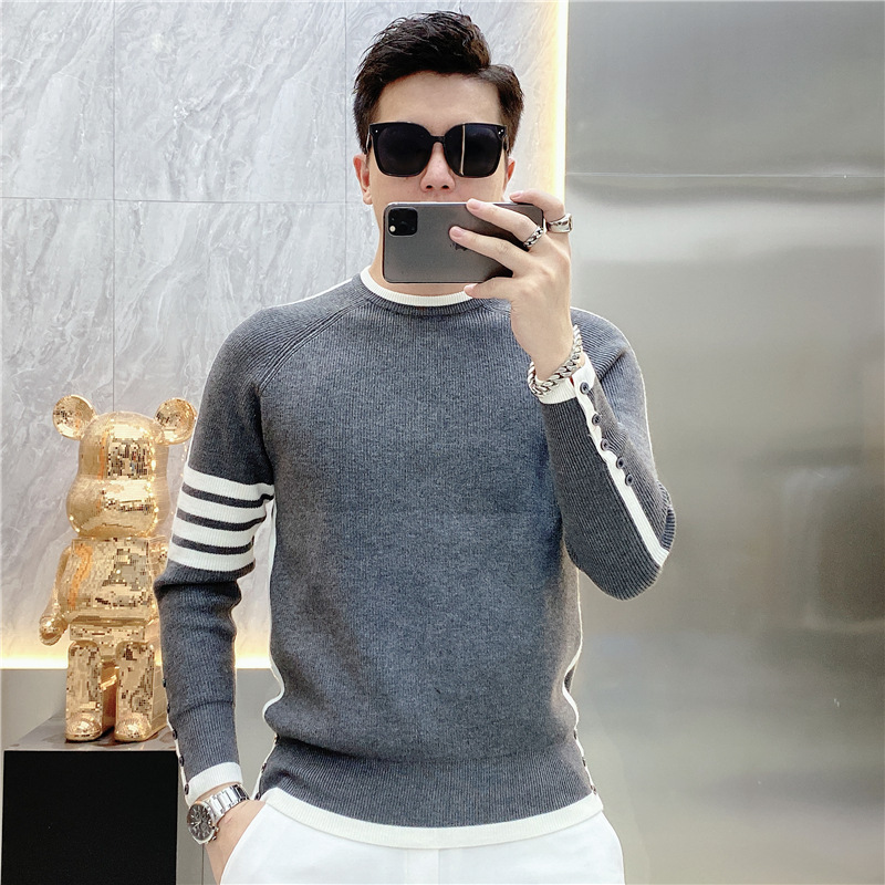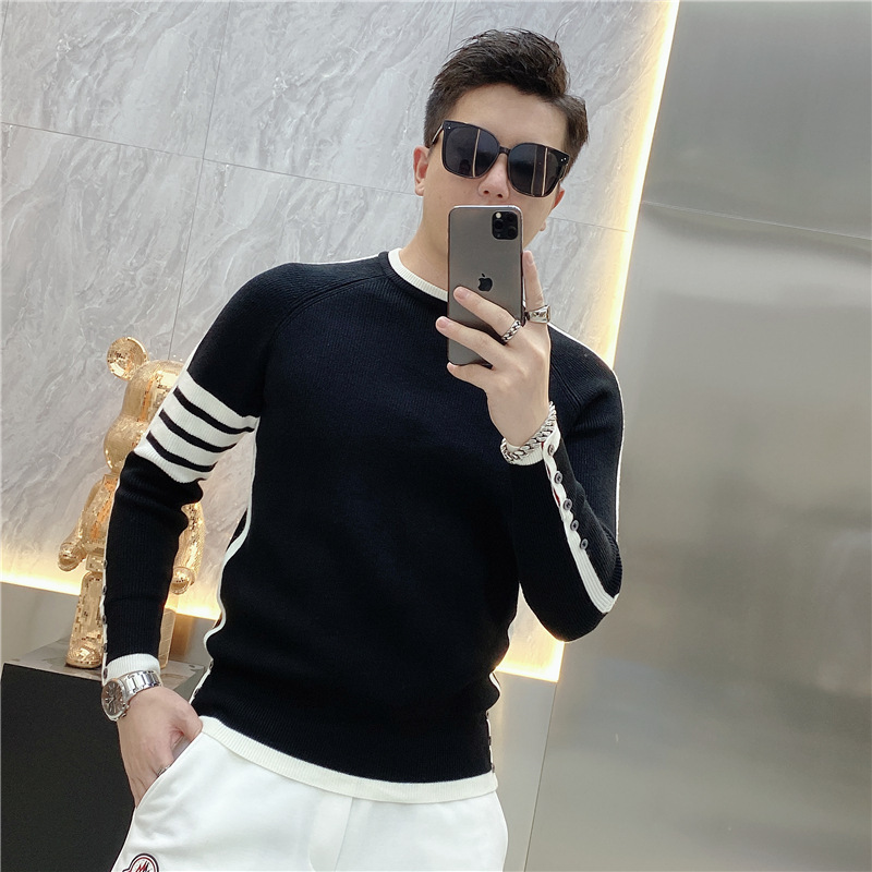 긴 소매 새로운 청소년 가을과 겨울 올 매치 스트라이프 스웨터 패션 풀오버 간단한 크루 넥 스웨터 트렌디 2023 남성스토어 가기