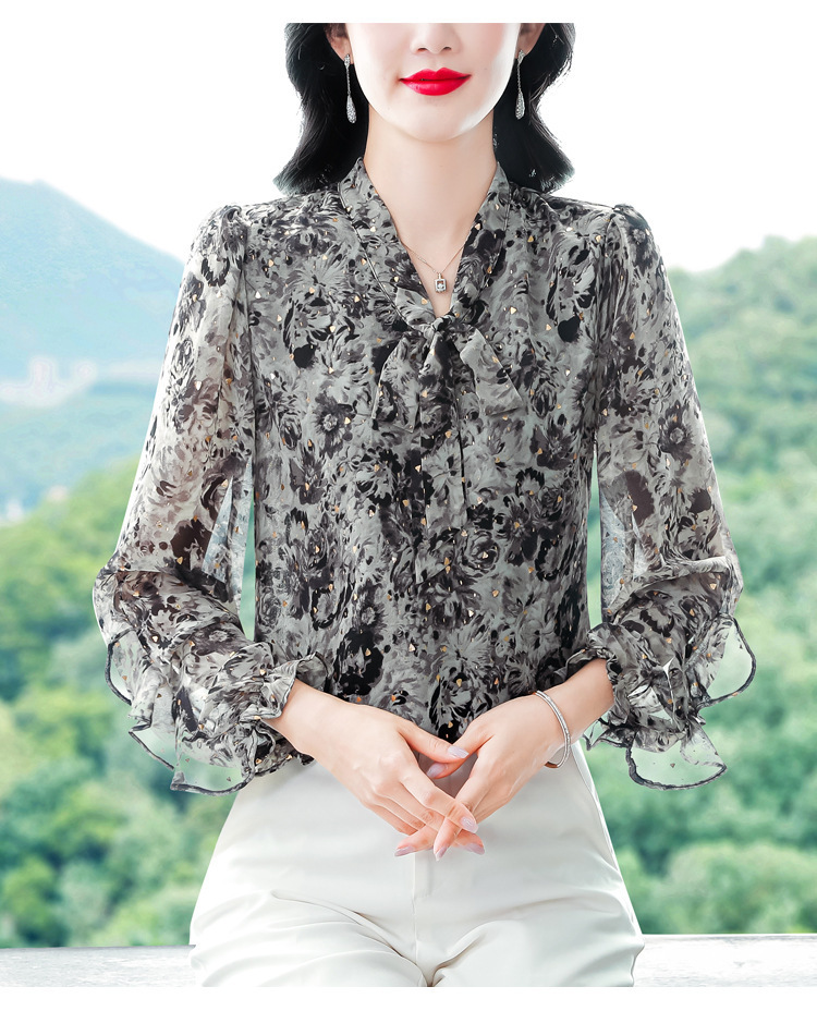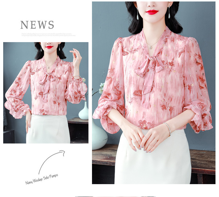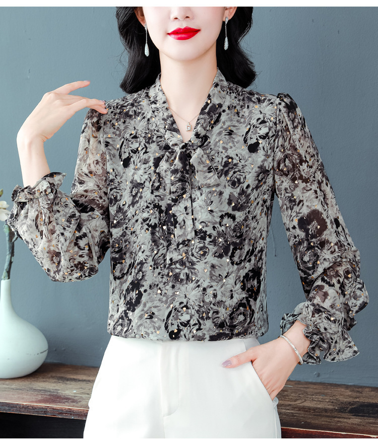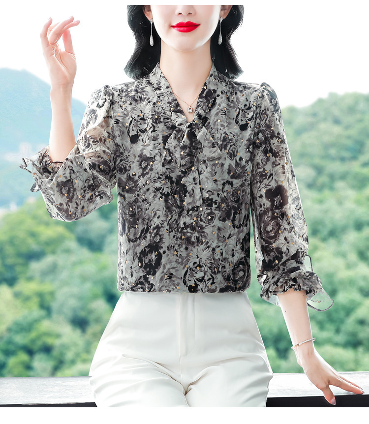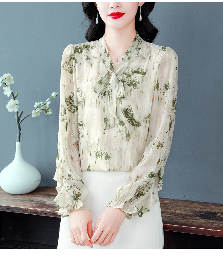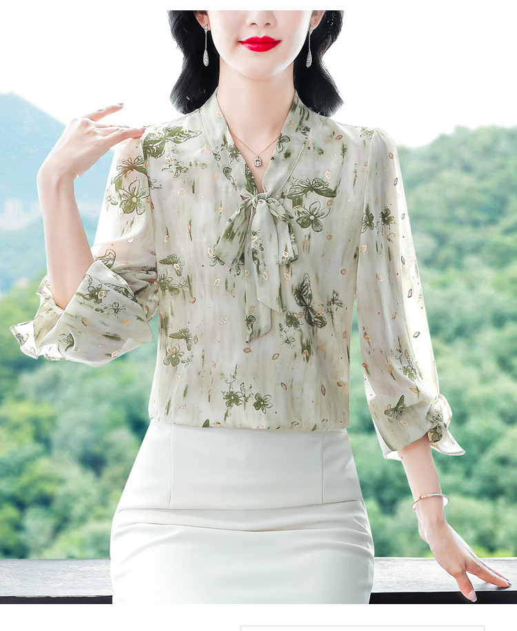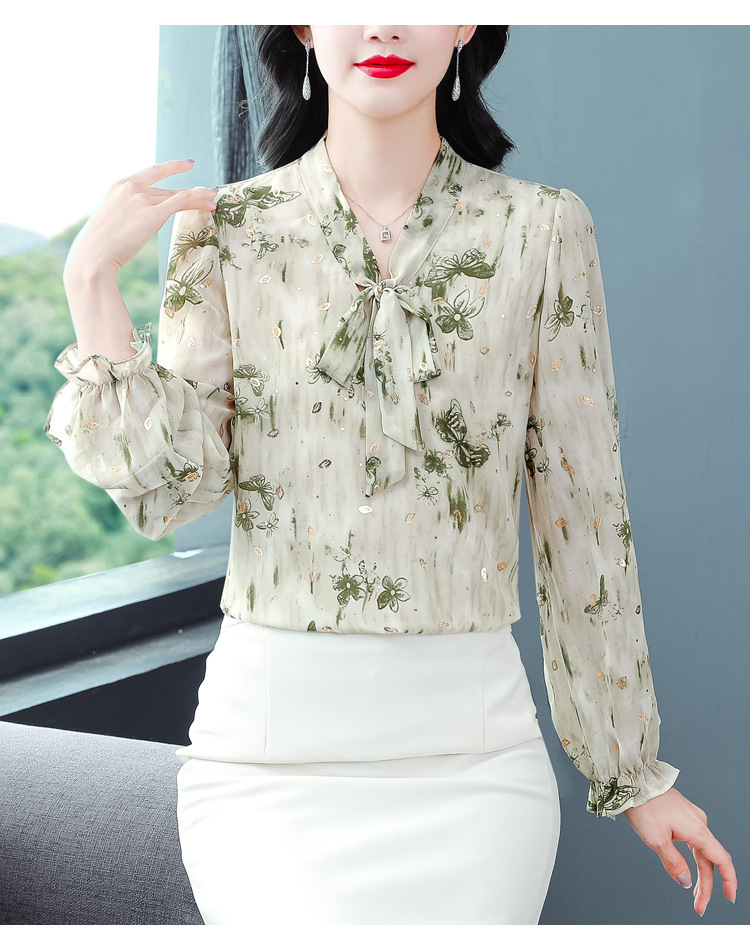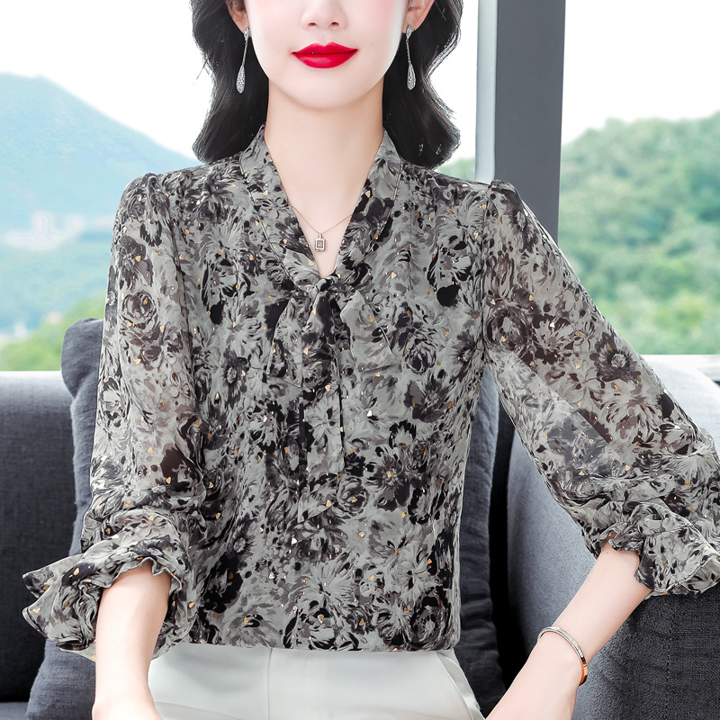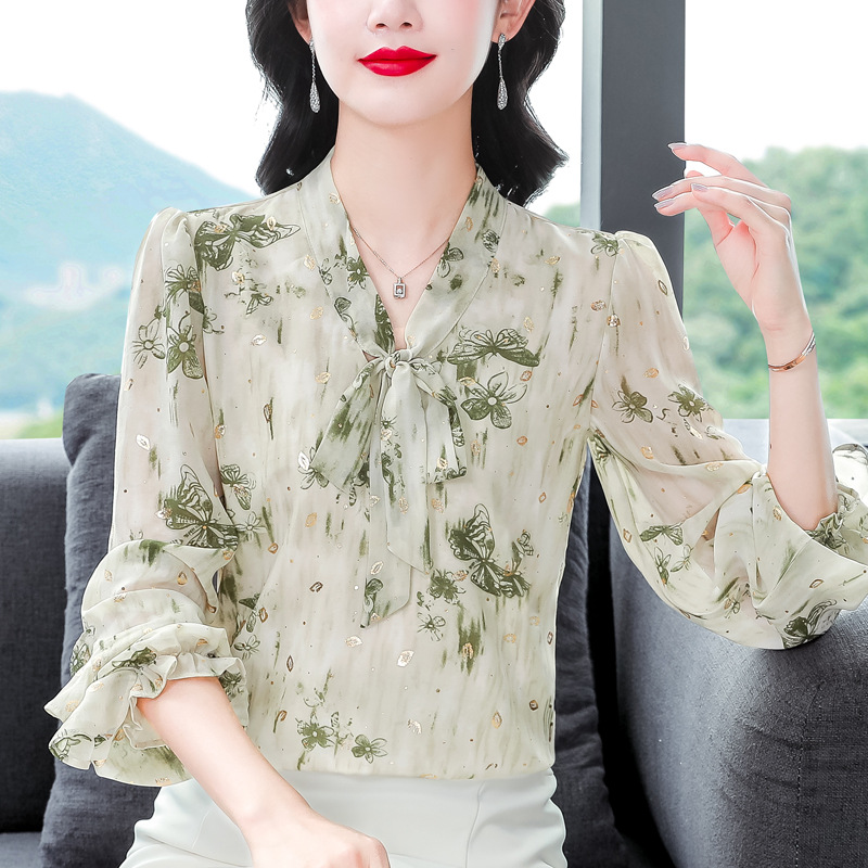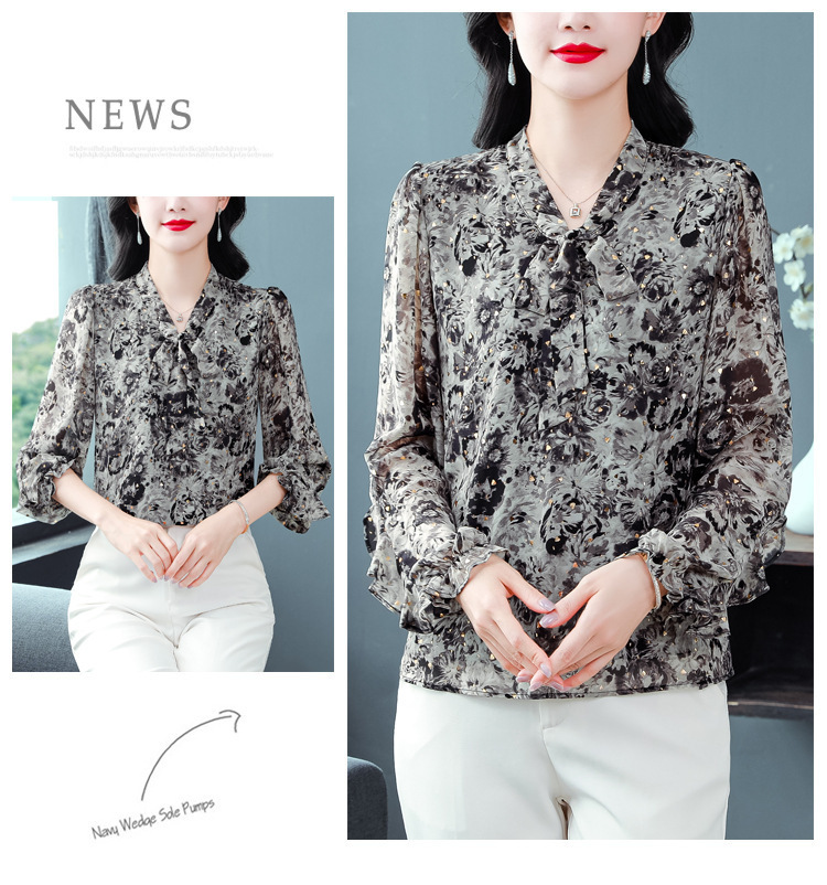 패션 웨스턴 스타일 하이 엔드 세련된 긴 소매 셔츠 2025 봄 새로운 우아한 올 매치 벨리 커버 쉬폰 탑스토어 가기