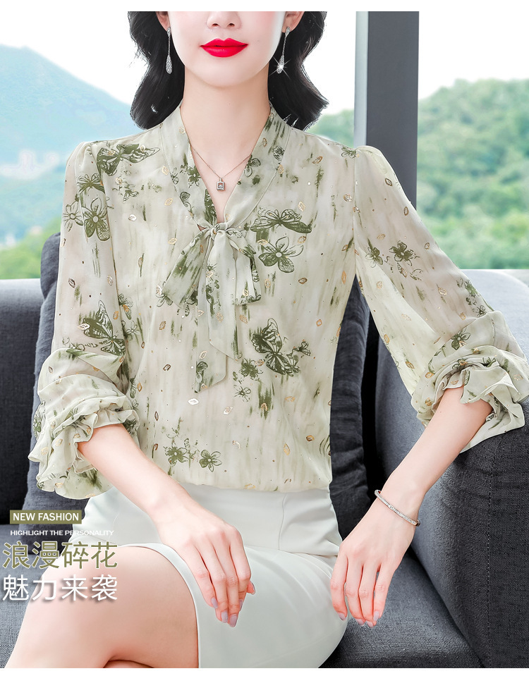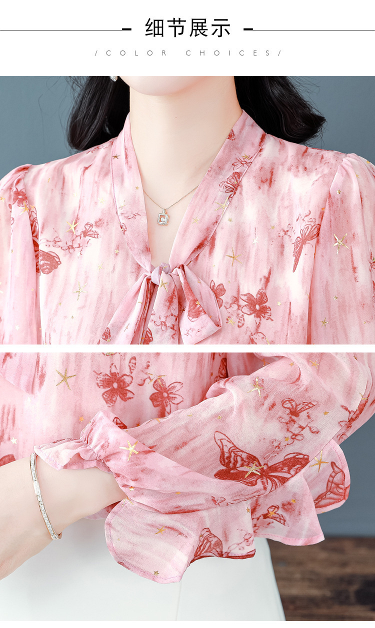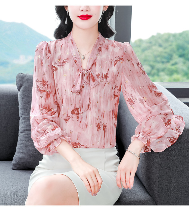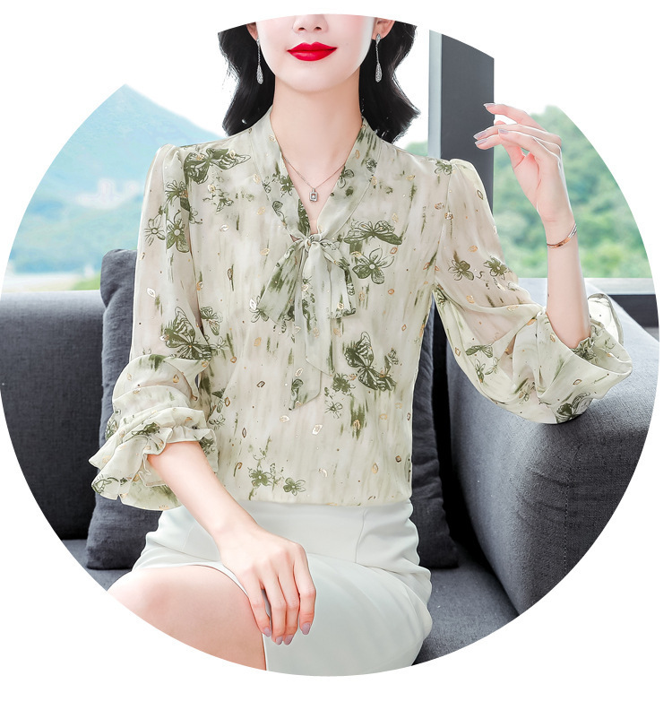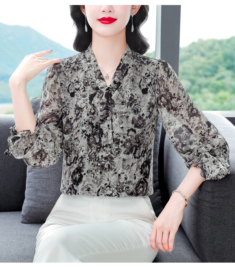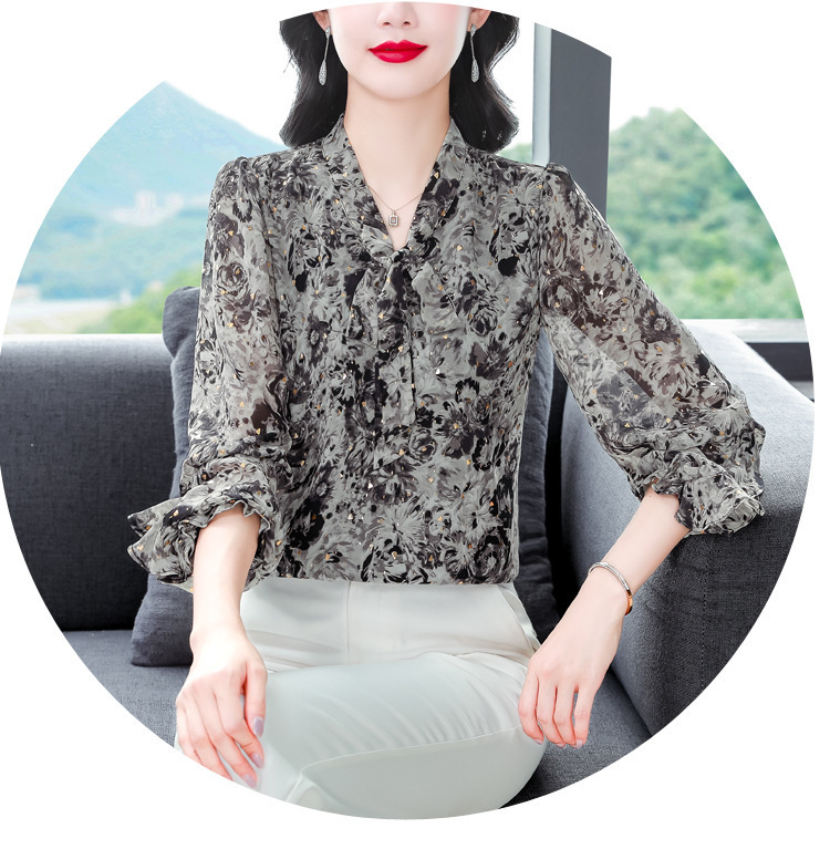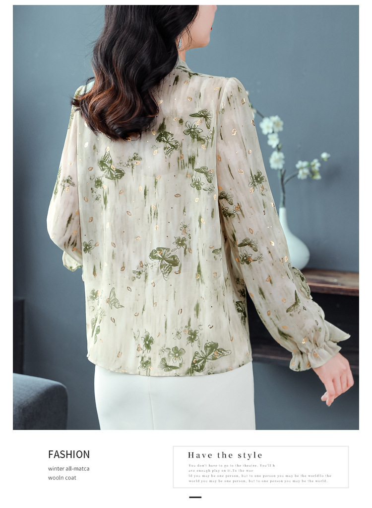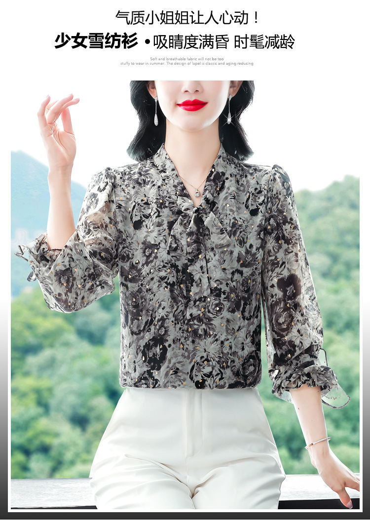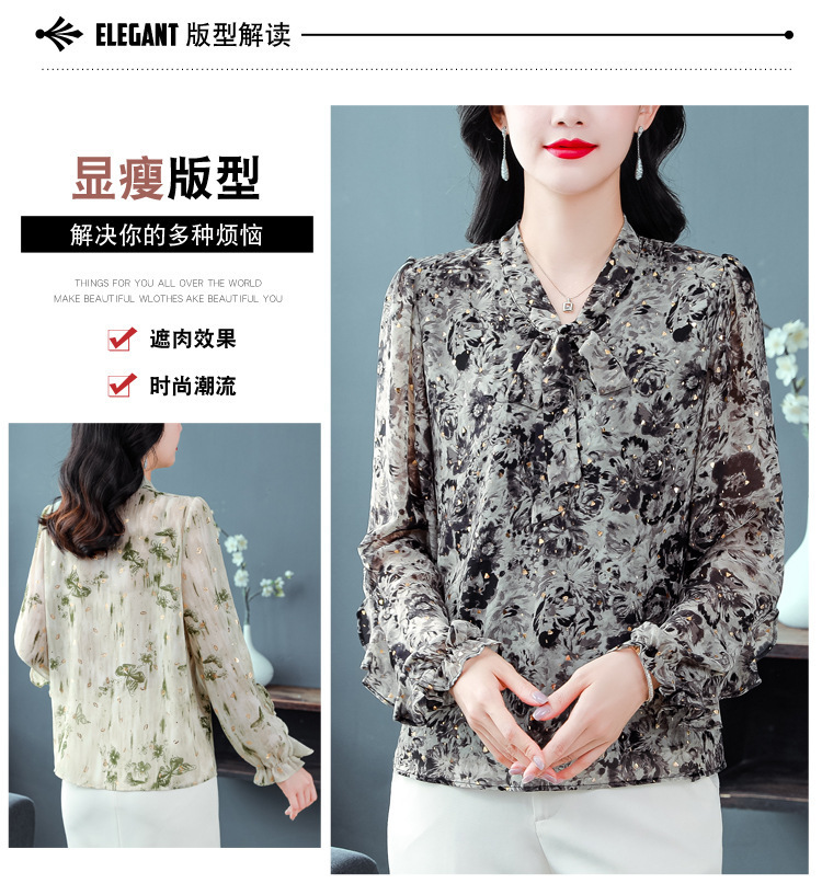 패션 웨스턴 스타일 하이 엔드 세련된 긴 소매 셔츠 2025 봄 새로운 우아한 올 매치 벨리 커버 쉬폰 탑스토어 가기