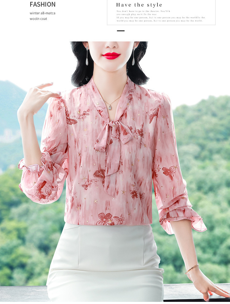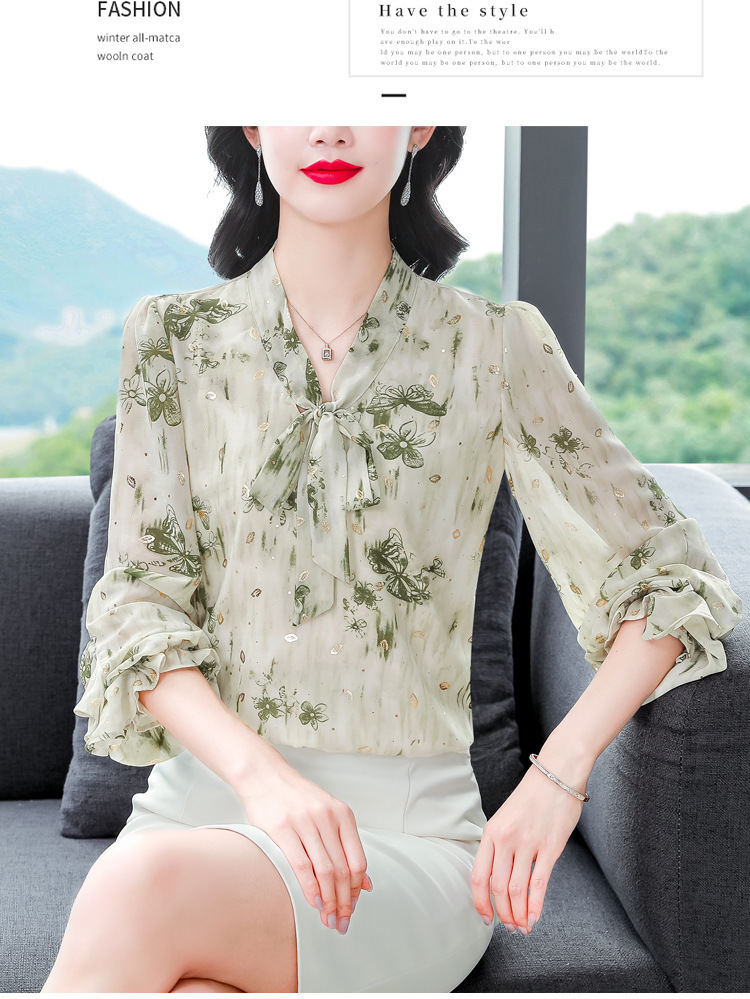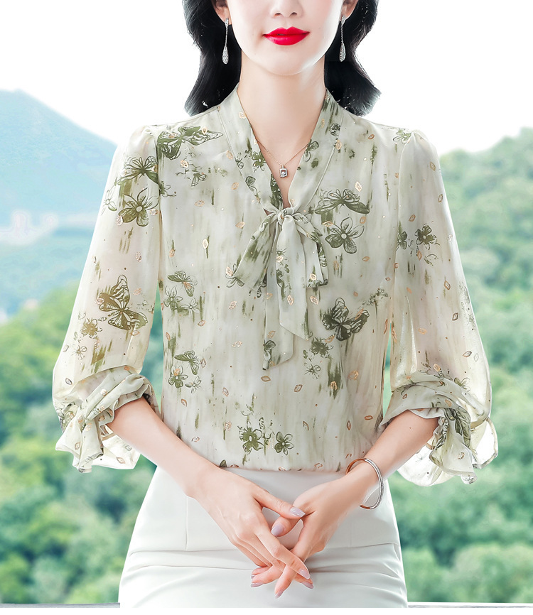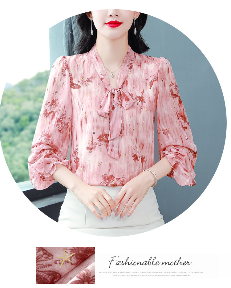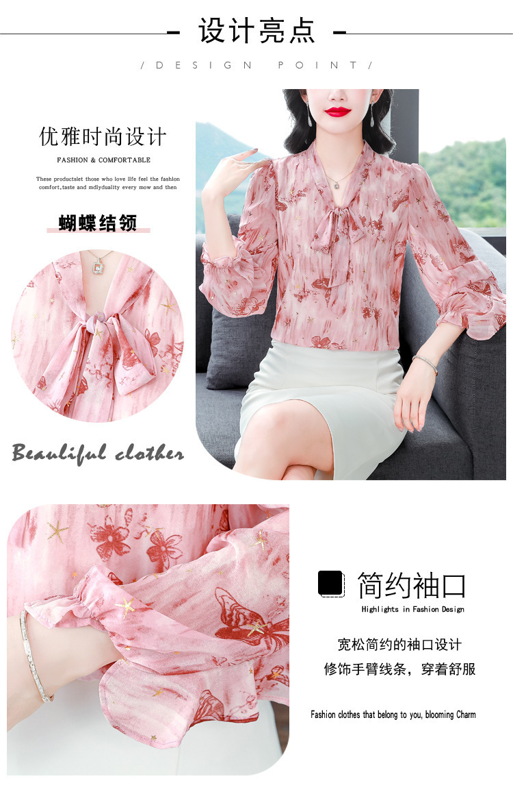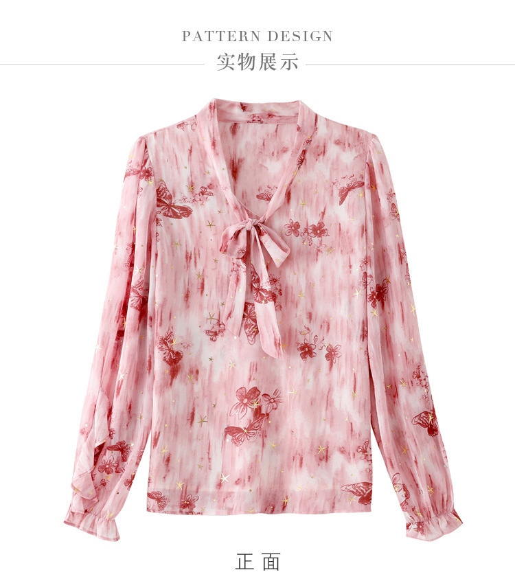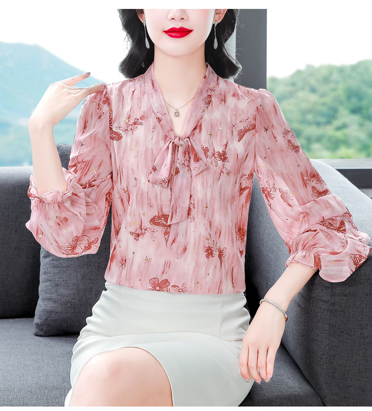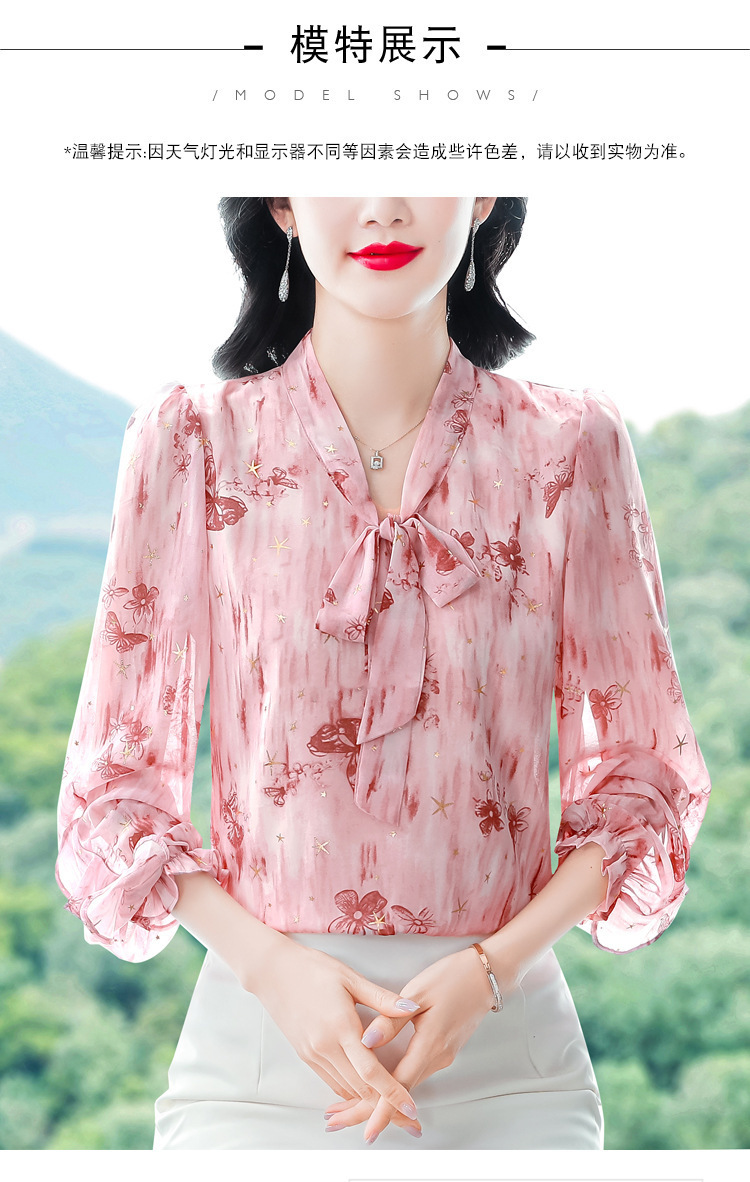패션 웨스턴 스타일 하이 엔드 세련된 긴 소매 셔츠 2025 봄 새로운 우아한 올 매치 벨리 커버 쉬폰 탑스토어 가기