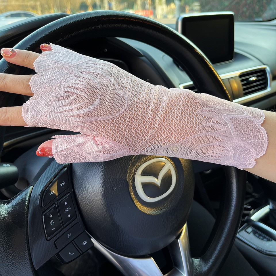아이스 실크 레이스 장갑 반 손가락 운전 태양 보호 여성의 봄과 여름 웨딩 에티켓 짧은 터치 스크린 얇은 손목 밴드스토어 가기