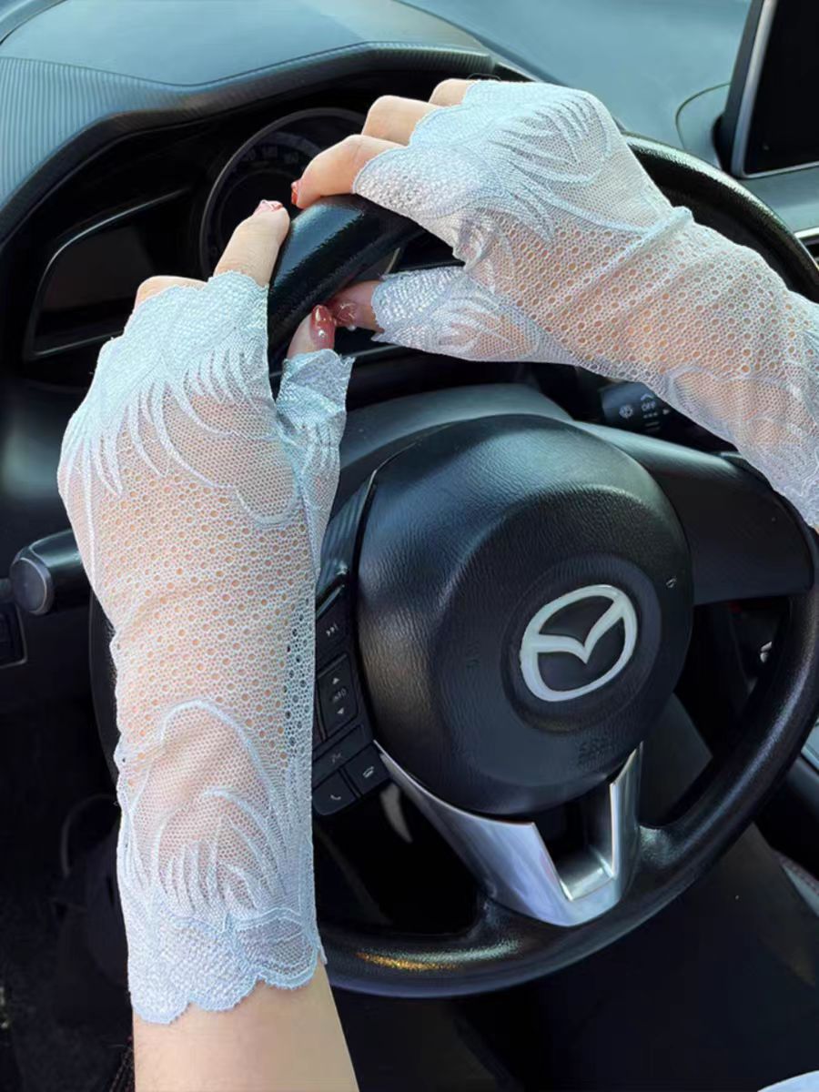 아이스 실크 레이스 장갑 반 손가락 운전 태양 보호 여성의 봄과 여름 웨딩 에티켓 짧은 터치 스크린 얇은 손목 밴드