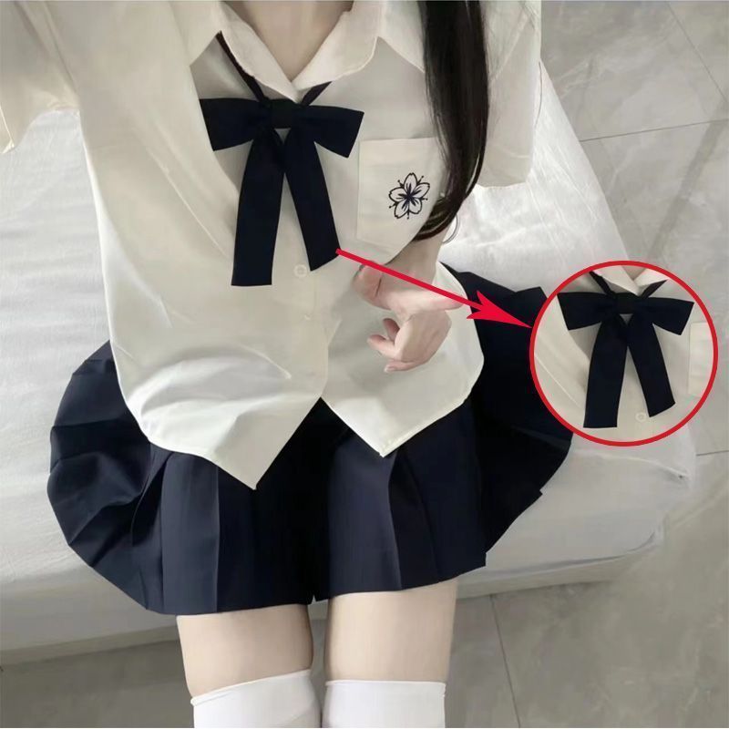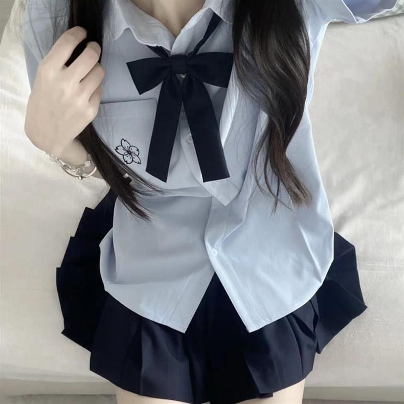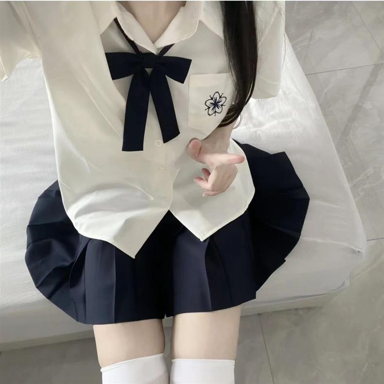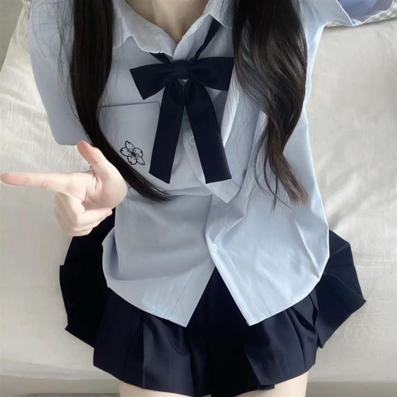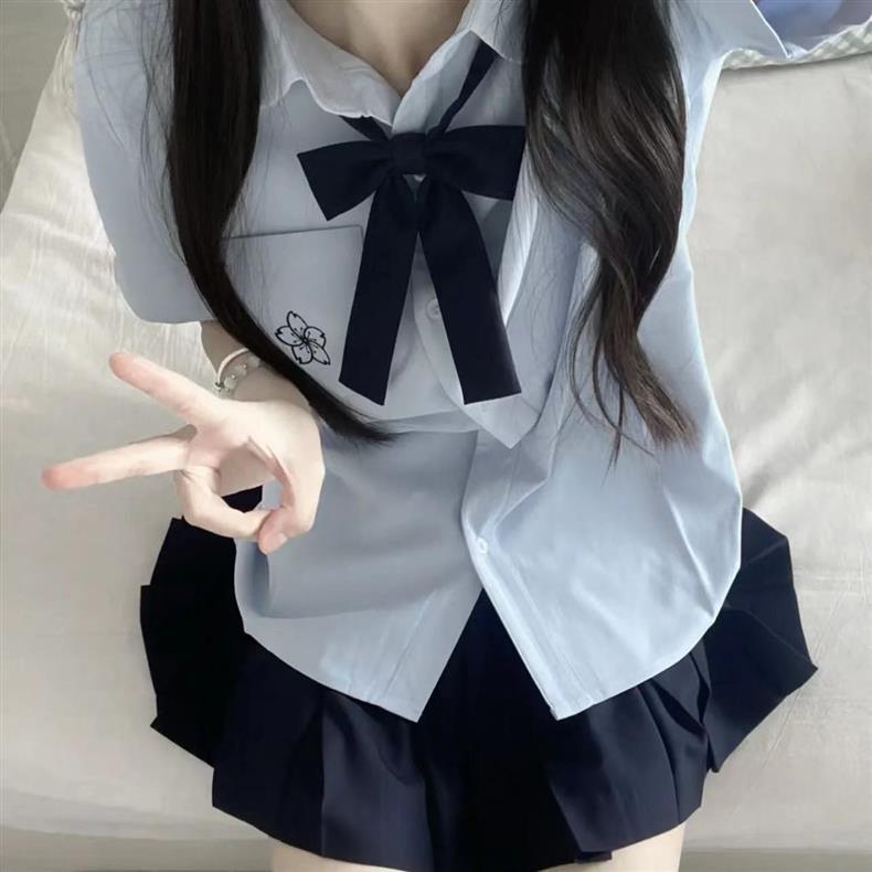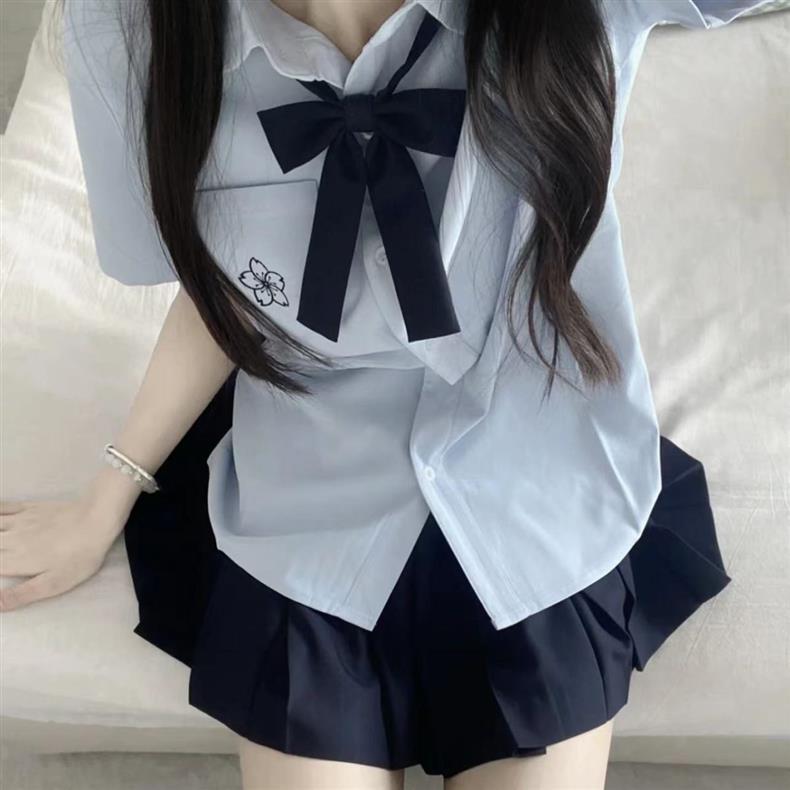 Jk 유니폼 오리지널 사쿠라기 북 반팔 셔츠 일본 화이트 블루 자수 여성 셔츠 기본 여름 스커트 세트스토어 가기