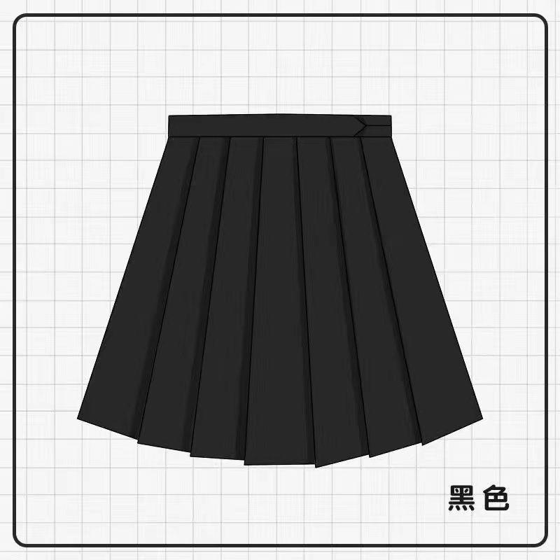 • 흰색 셔츠 + 검은색 칼라 + 검은색 주름 스커트 정장