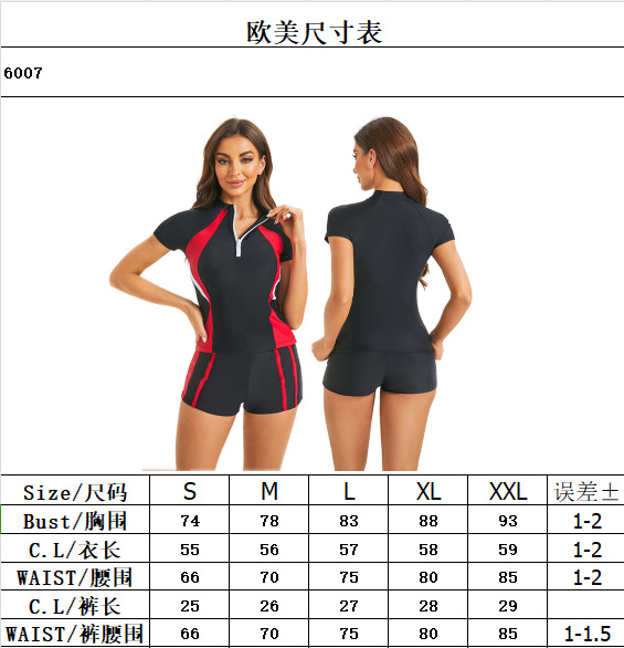 아마존 수영복 컬러 매칭 보수적 인 지퍼 스플릿 복서 수영복 유럽과 미국 여성 서핑 슈트 여성용 경쟁 스포츠스토어 가기