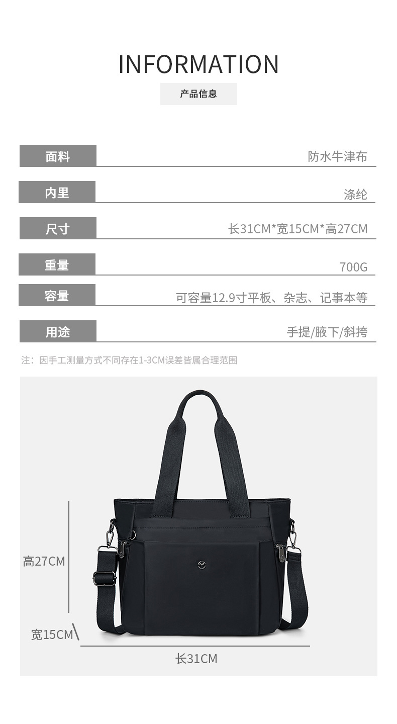 광저우 나일론 대용량 캐주얼 가방 토트백 통근용 숄더백 크로스백 나일론 가방 핸드백 여성용 경량 가방스토어 가기