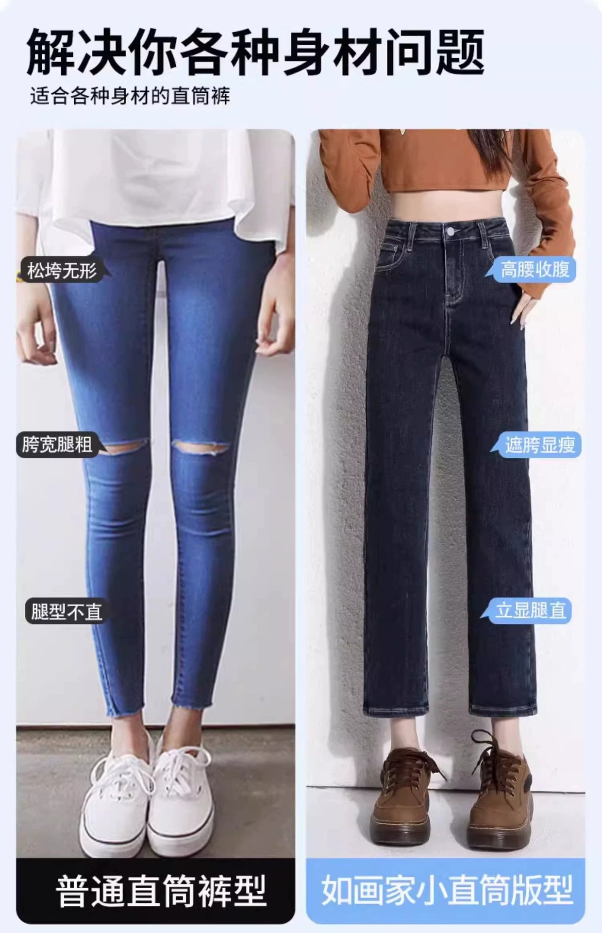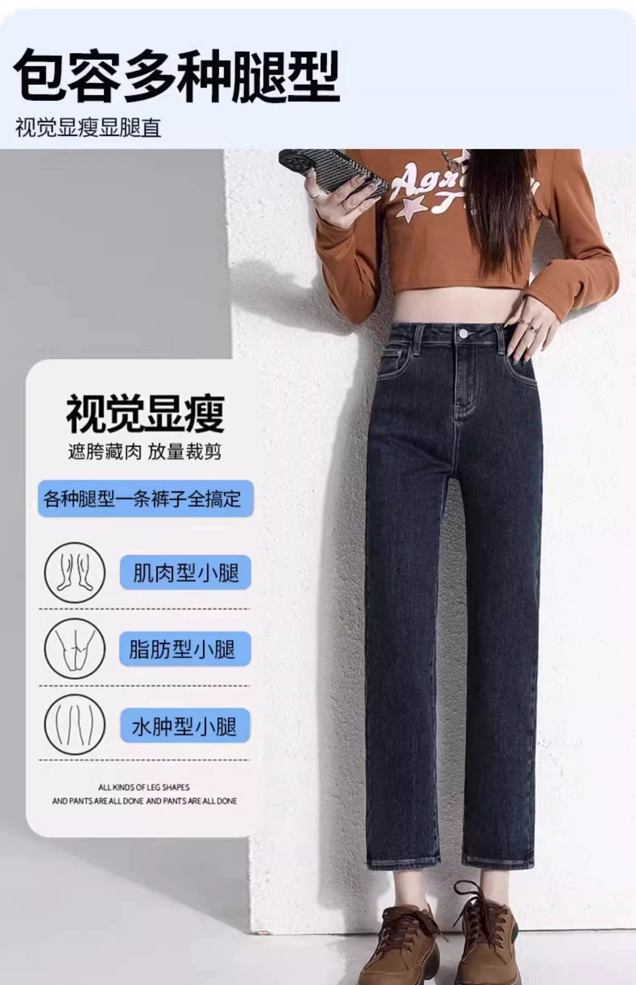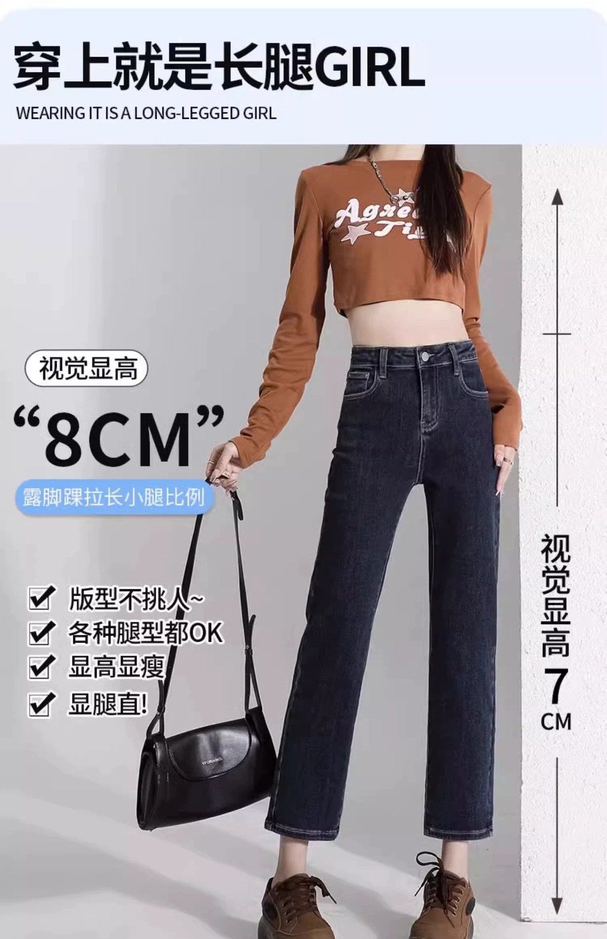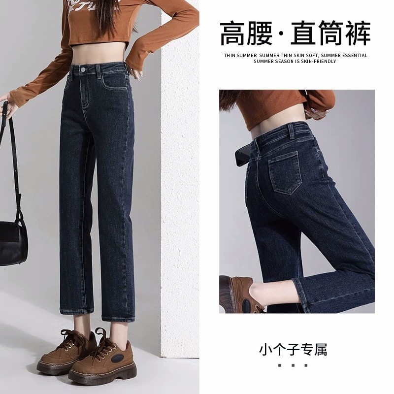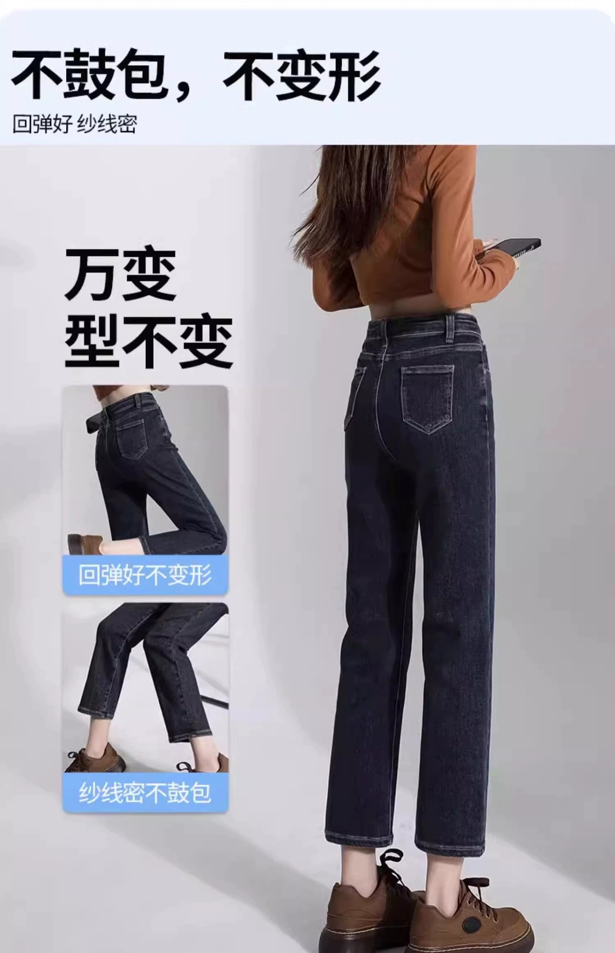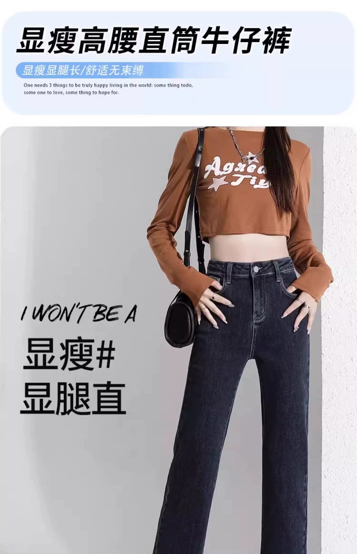작은 직선 다리 청바지 여성의 2025 새로운 봄과 가을 인기 폭발성 바지 높은 허리 슬리밍 연기 튜브 바지스토어 가기