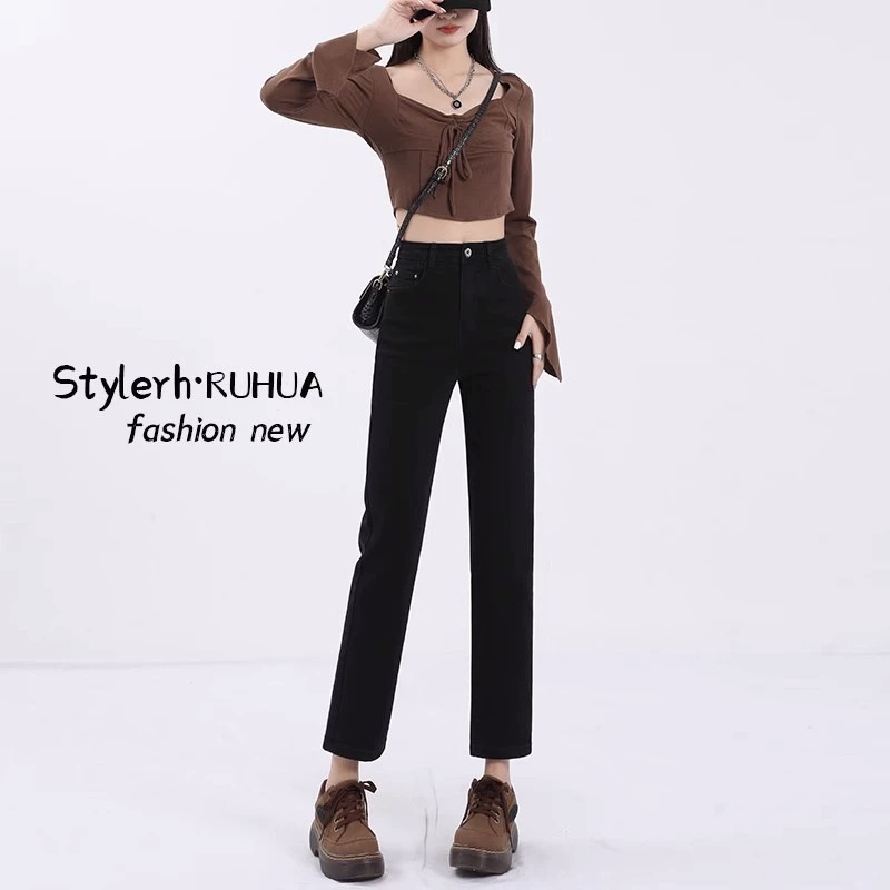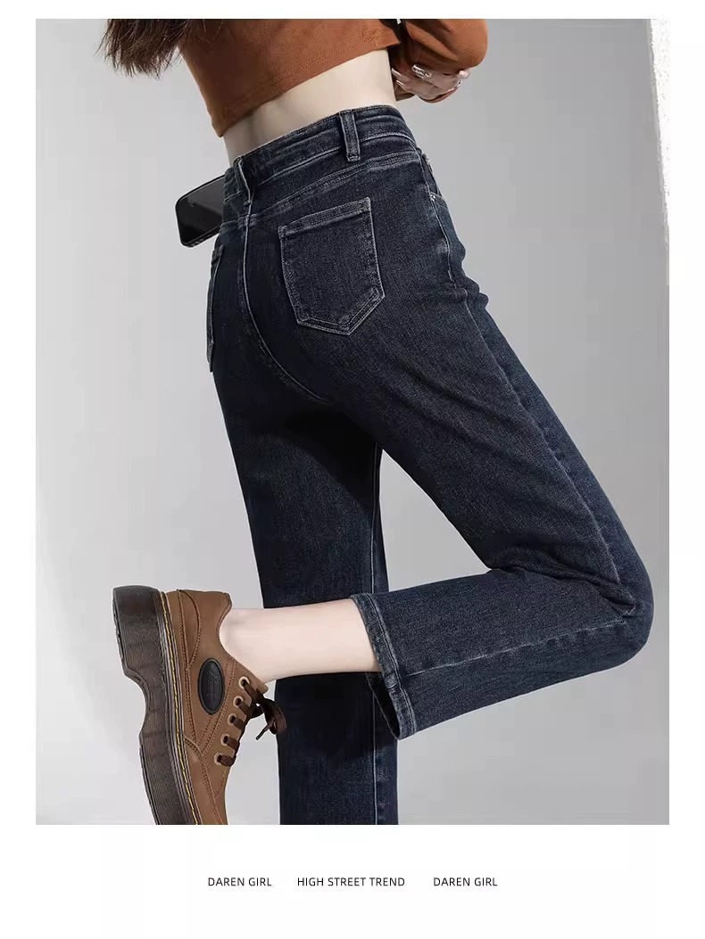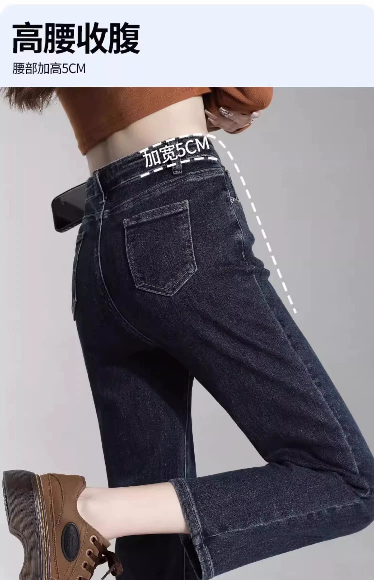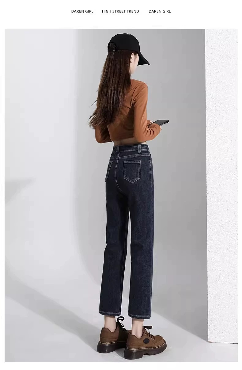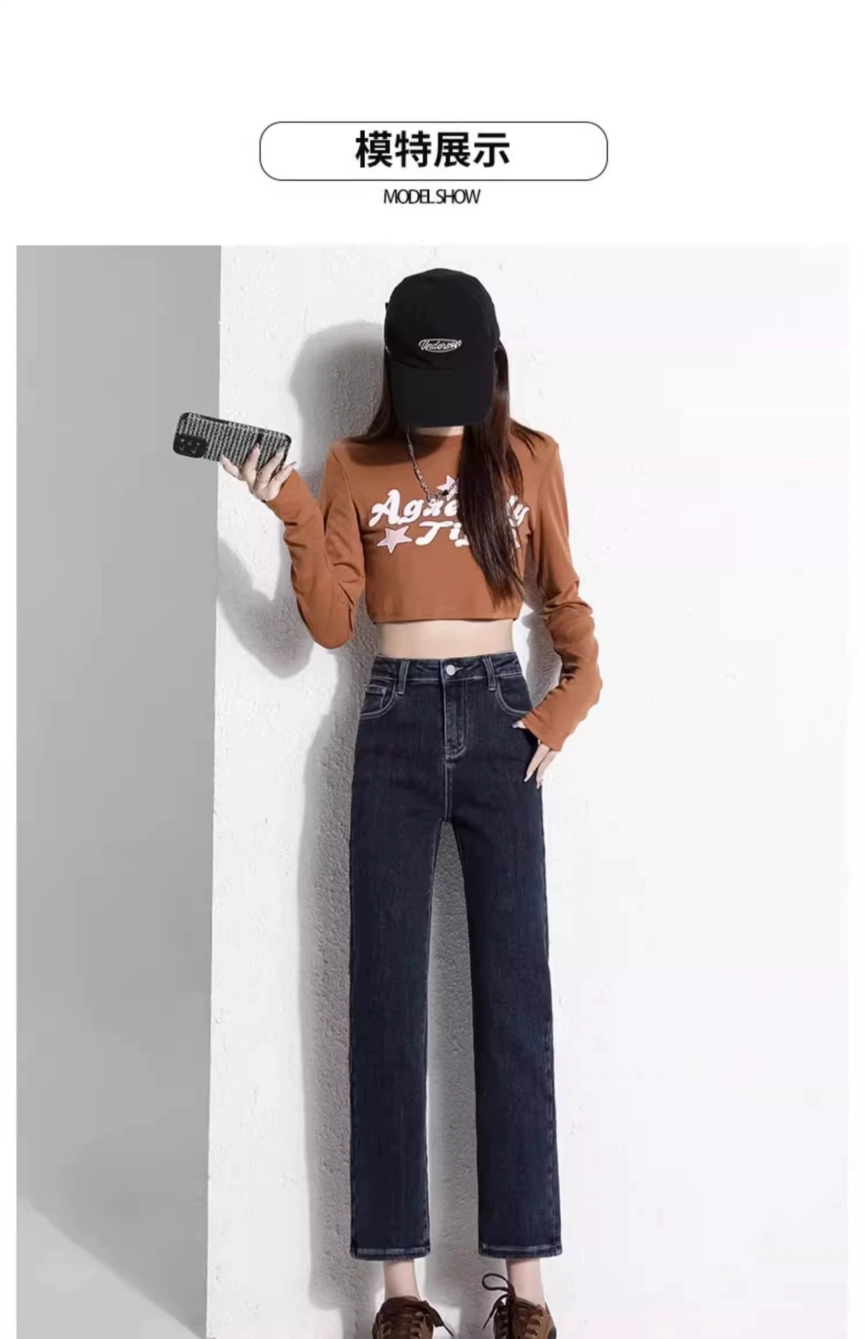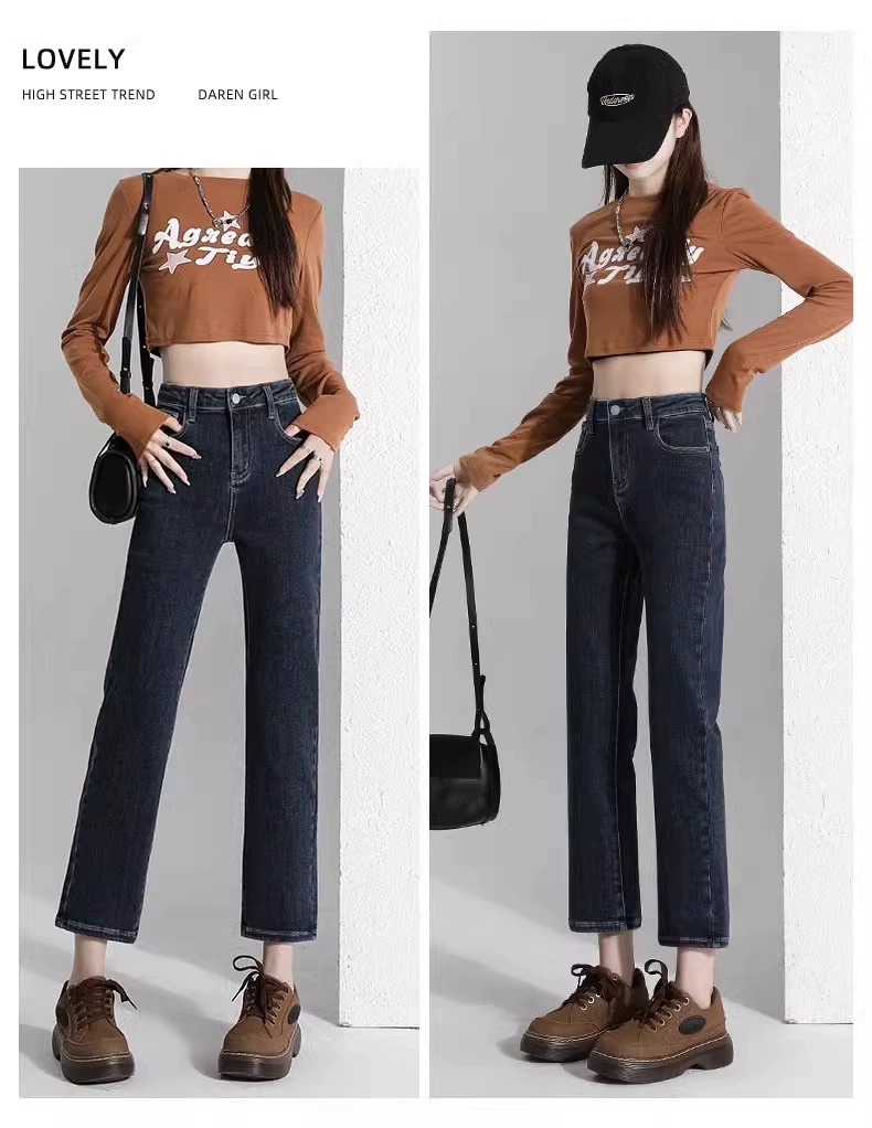 작은 직선 다리 청바지 여성의 2025 새로운 봄과 가을 인기 폭발성 바지 높은 허리 슬리밍 연기 튜브 바지스토어 가기