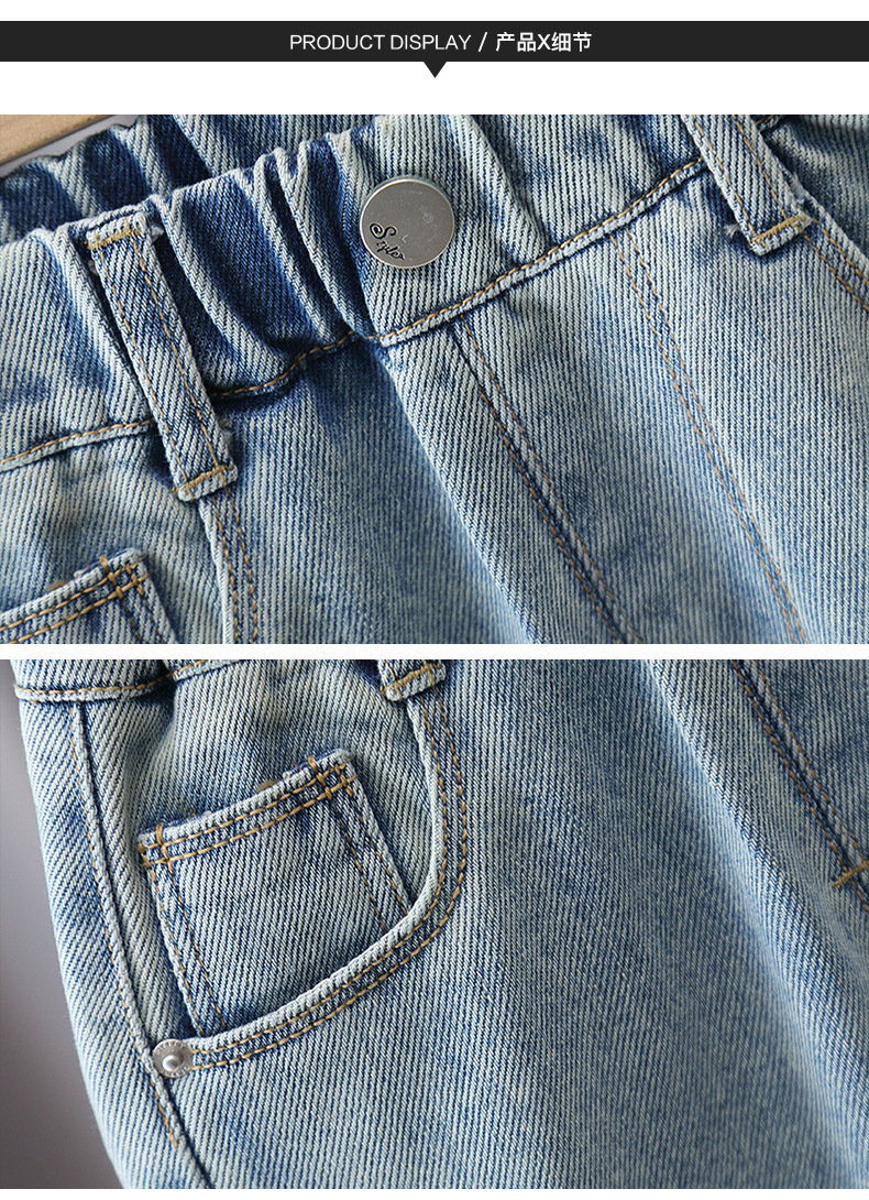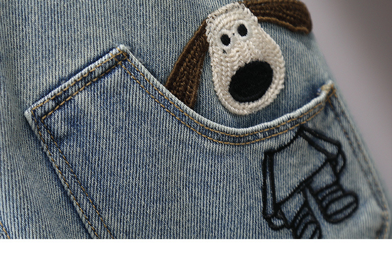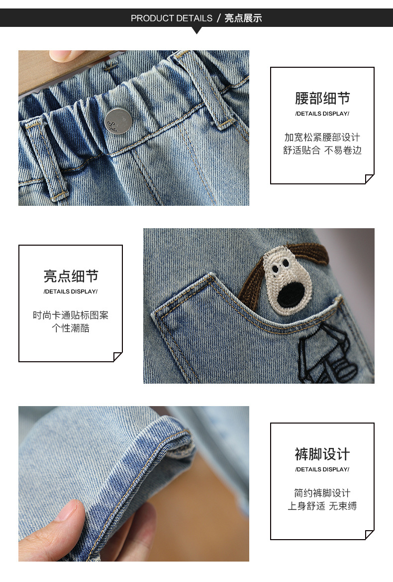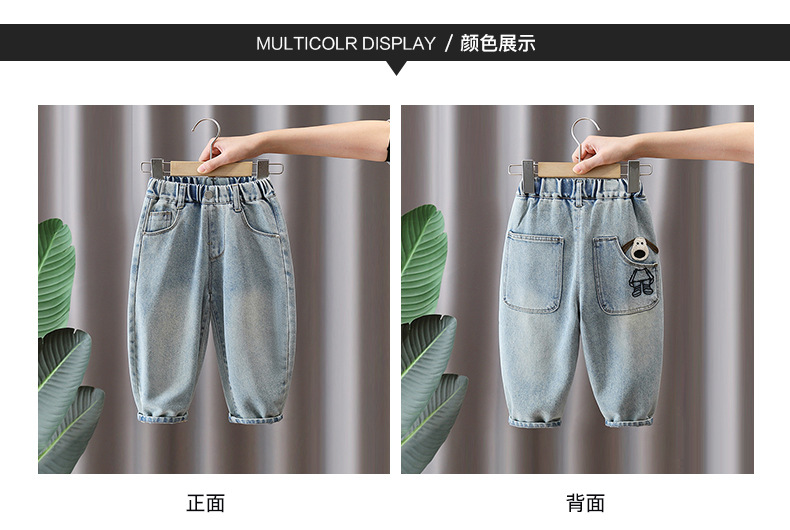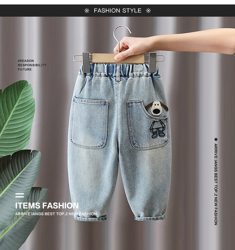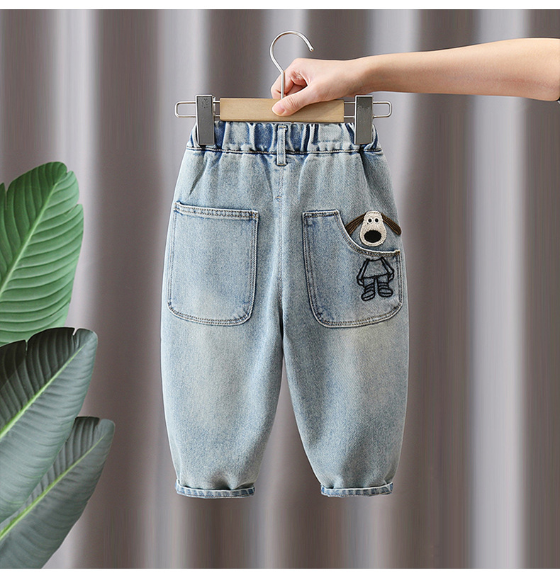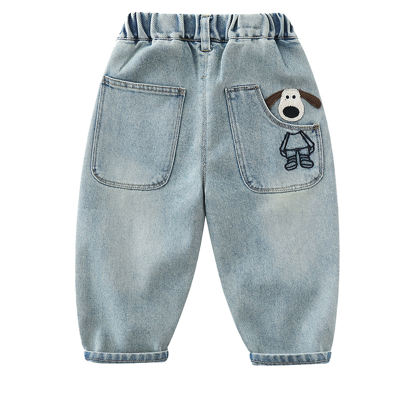 어린이 바지 2025 봄 새 소년 소녀 만화 자수 청바지 한국 캐주얼 바지 아기의 올 매치 바지스토어 가기