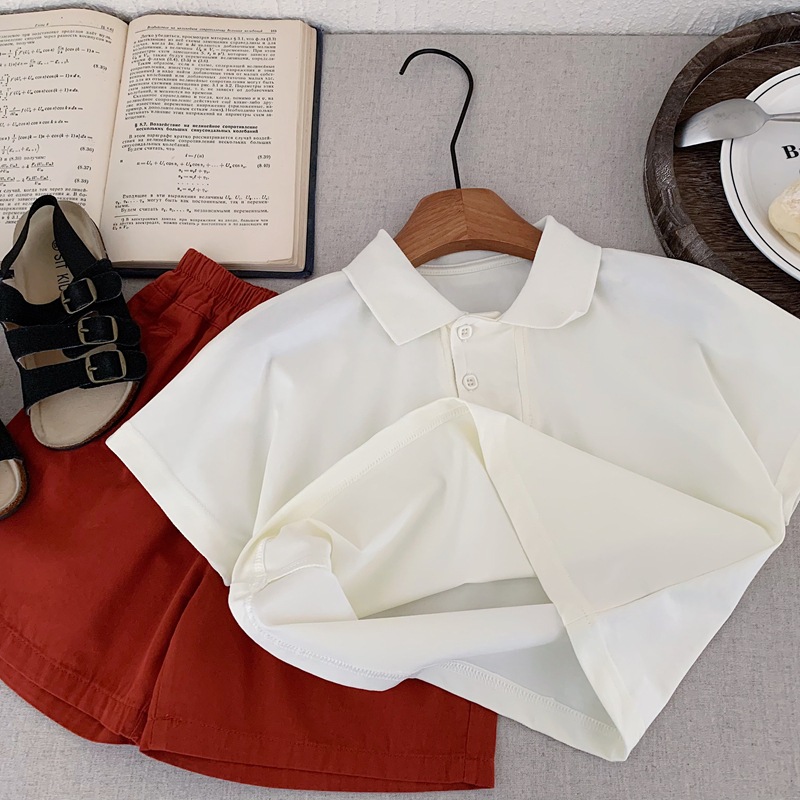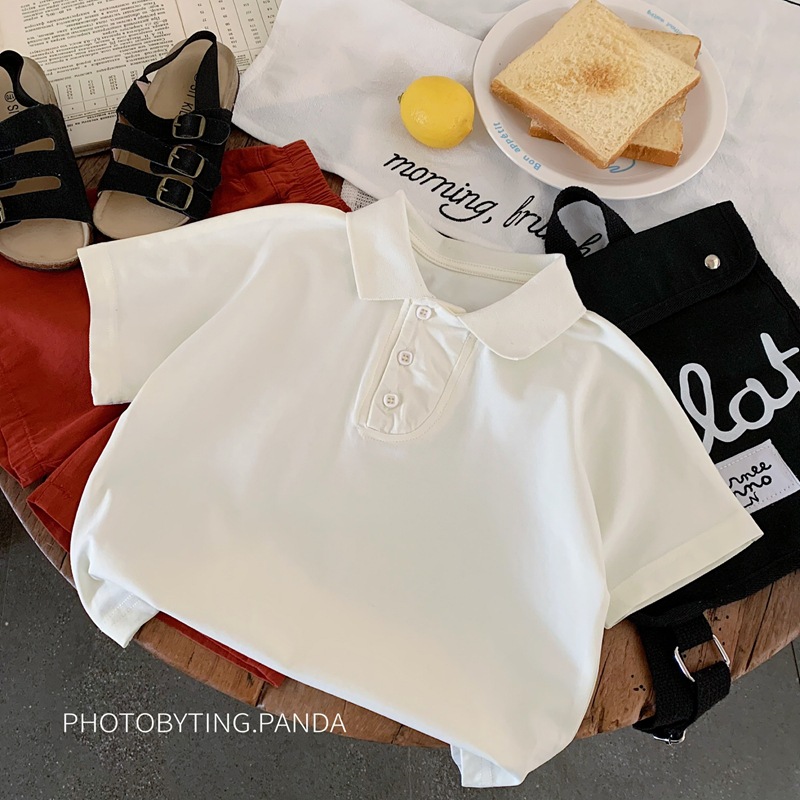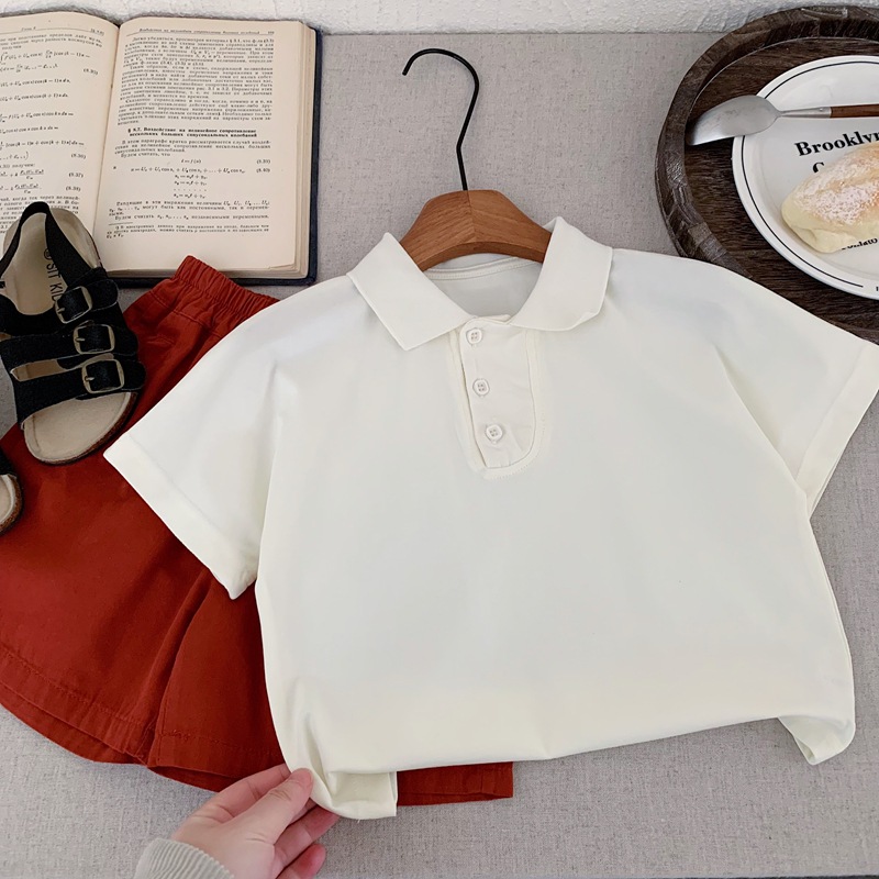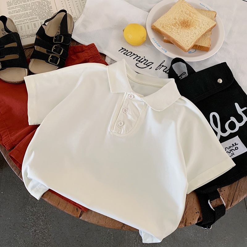 어린이 착용 남학생 여름 폴로 셔츠 반팔 2025 새로운 여름 흰색 티셔츠 중 · 소형 어린이를위한 여름 소년 트렌디 티셔츠