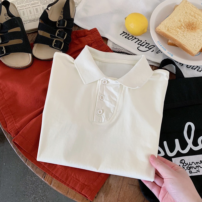 어린이 착용 남학생 여름 폴로 셔츠 반팔 2025 새로운 여름 흰색 티셔츠 중 · 소형 어린이를위한 여름 소년 트렌디 티셔츠스토어 가기